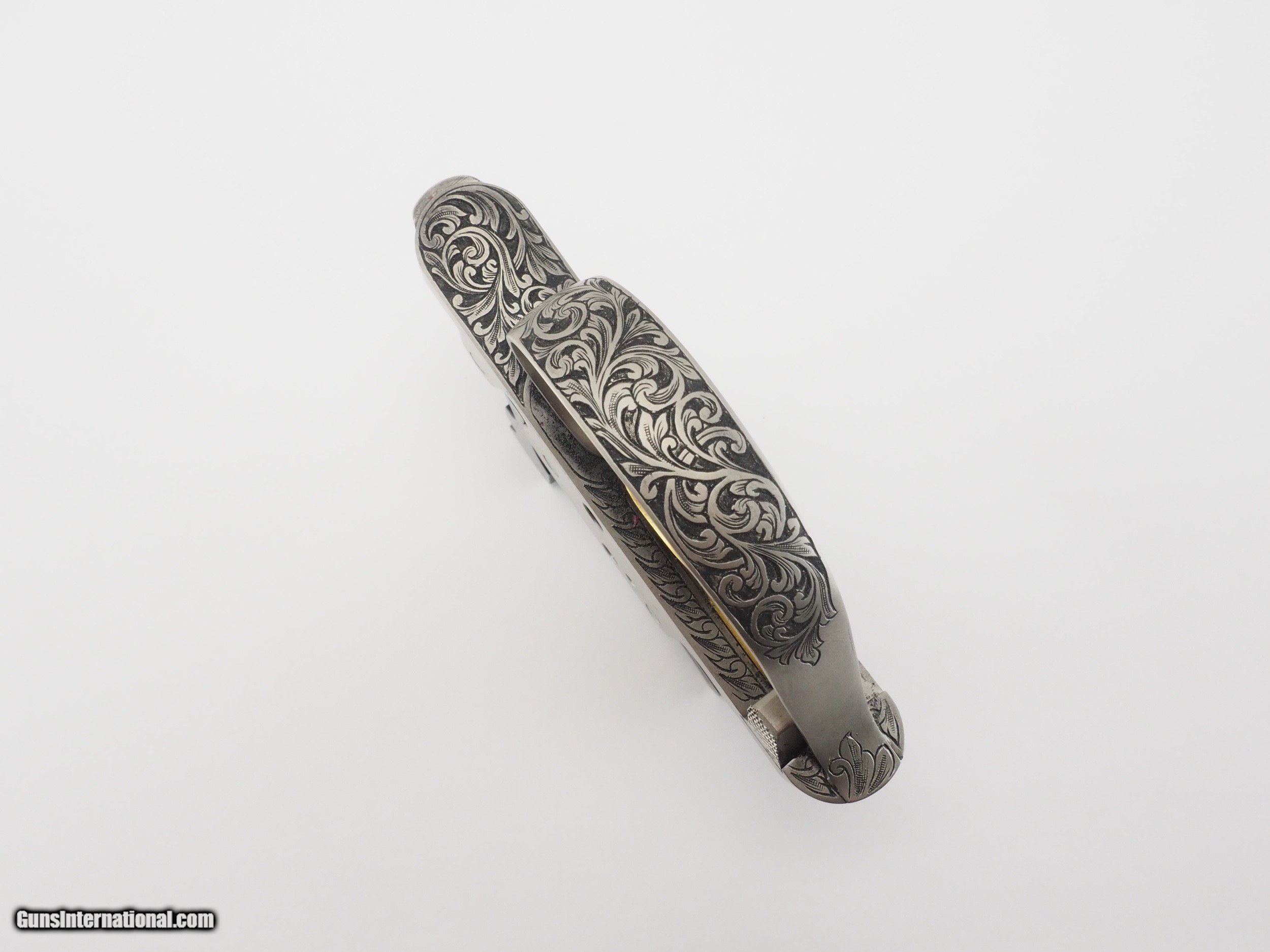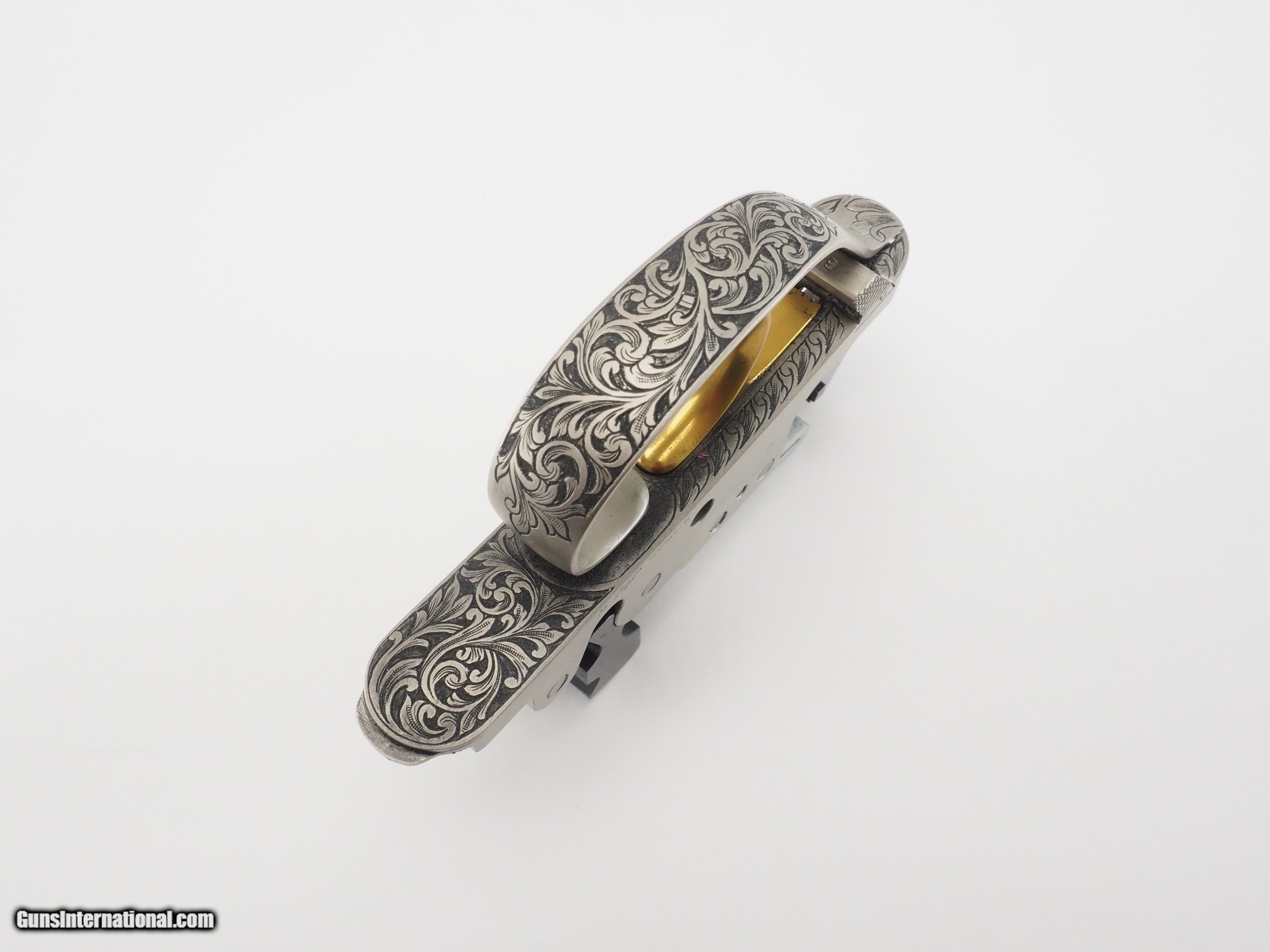 Description: See our home site for pricing and/or to place an order. Brand new Giuliani trigger unit for Perazzi MX. This is an externally selectable trigger unit with flat hammer springs, gold trigger blade, old silver (French gray) finish, and beautiful hand-engraved SC3 Pattern #101 scroll pattern. These trigger units are every bit the quality (or better!) of Perazzi factory units, at a fraction of the price. Note: Color of case may vary. Fitting of trigger to receiver, by a competent gunsmith, may be required due to Perazzi's manufacturing variances over decades of production. SOLD |