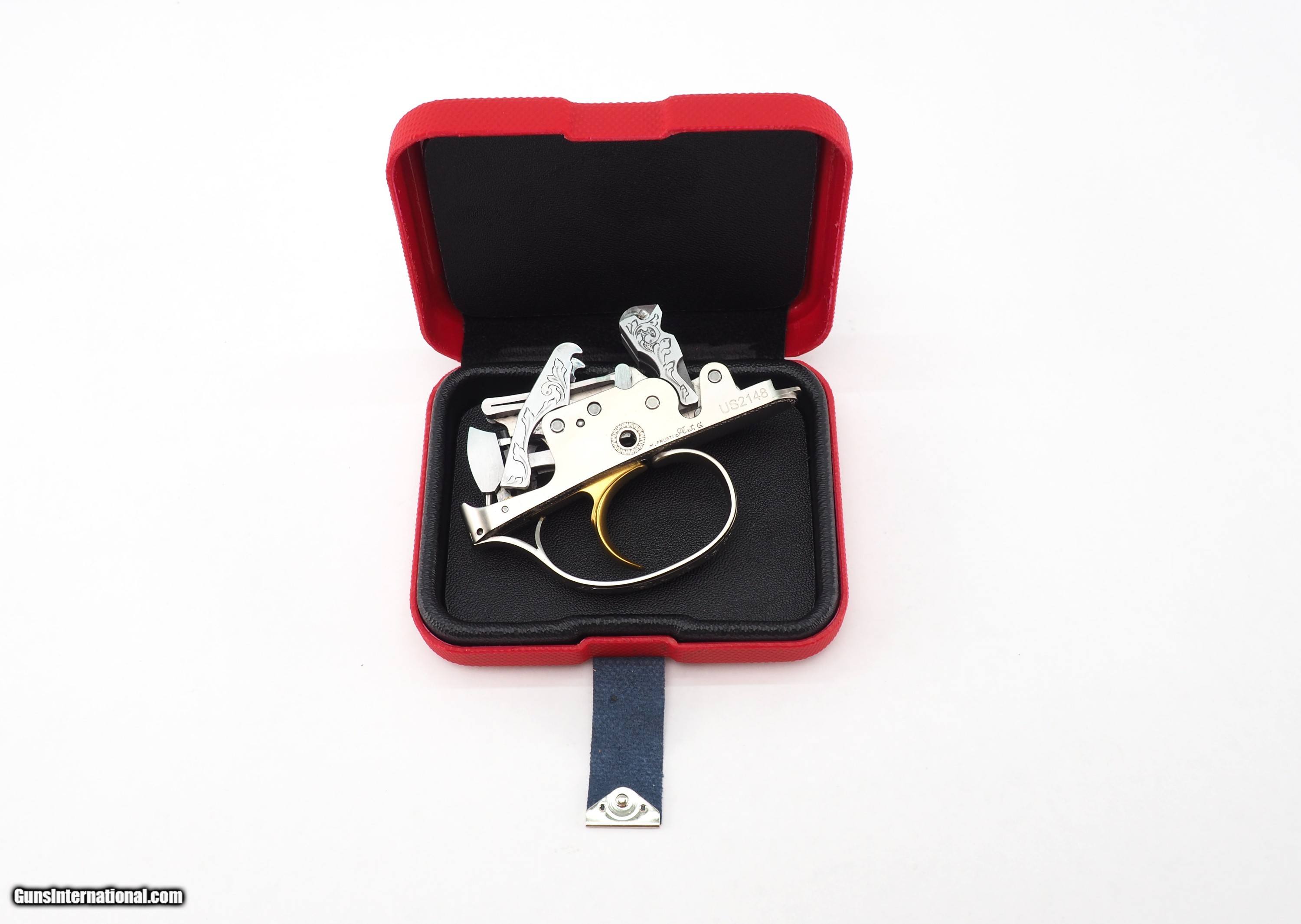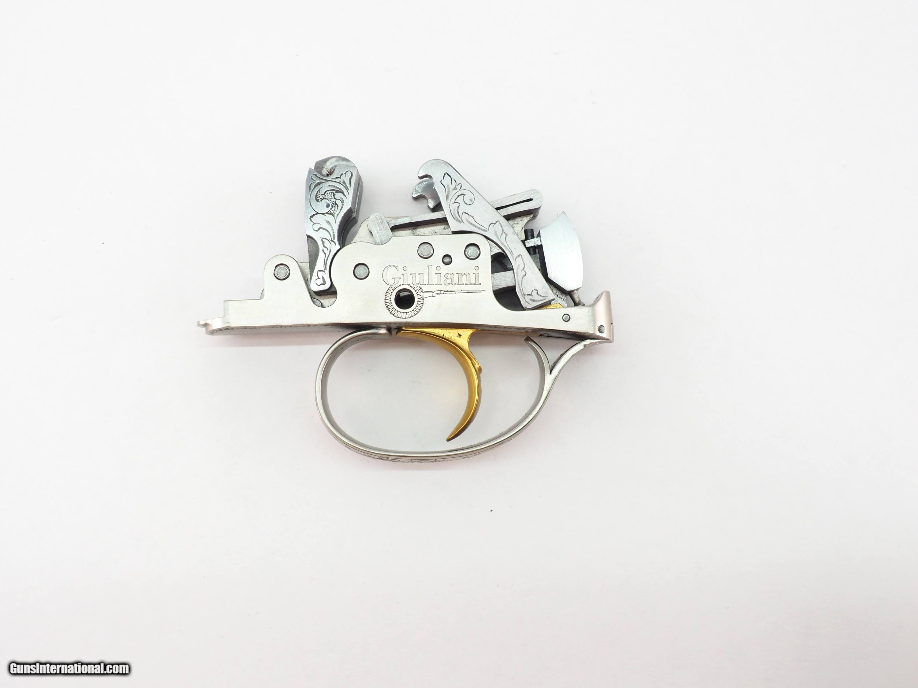 Description: ***FREE shipping w/ insurance via UPS ground to the Lower 48!*** Giuliani double-release trigger with standard-position trigger blade. 100% made in Italy to OEM-quality standards or better. For Perazzi MX guns. Note: due to manufacturing variances of MX guns made over decades, some fitting may be required for proper interface of trigger unit to gun. Color of trigger blade and case may vary from photograph. SOLD |
