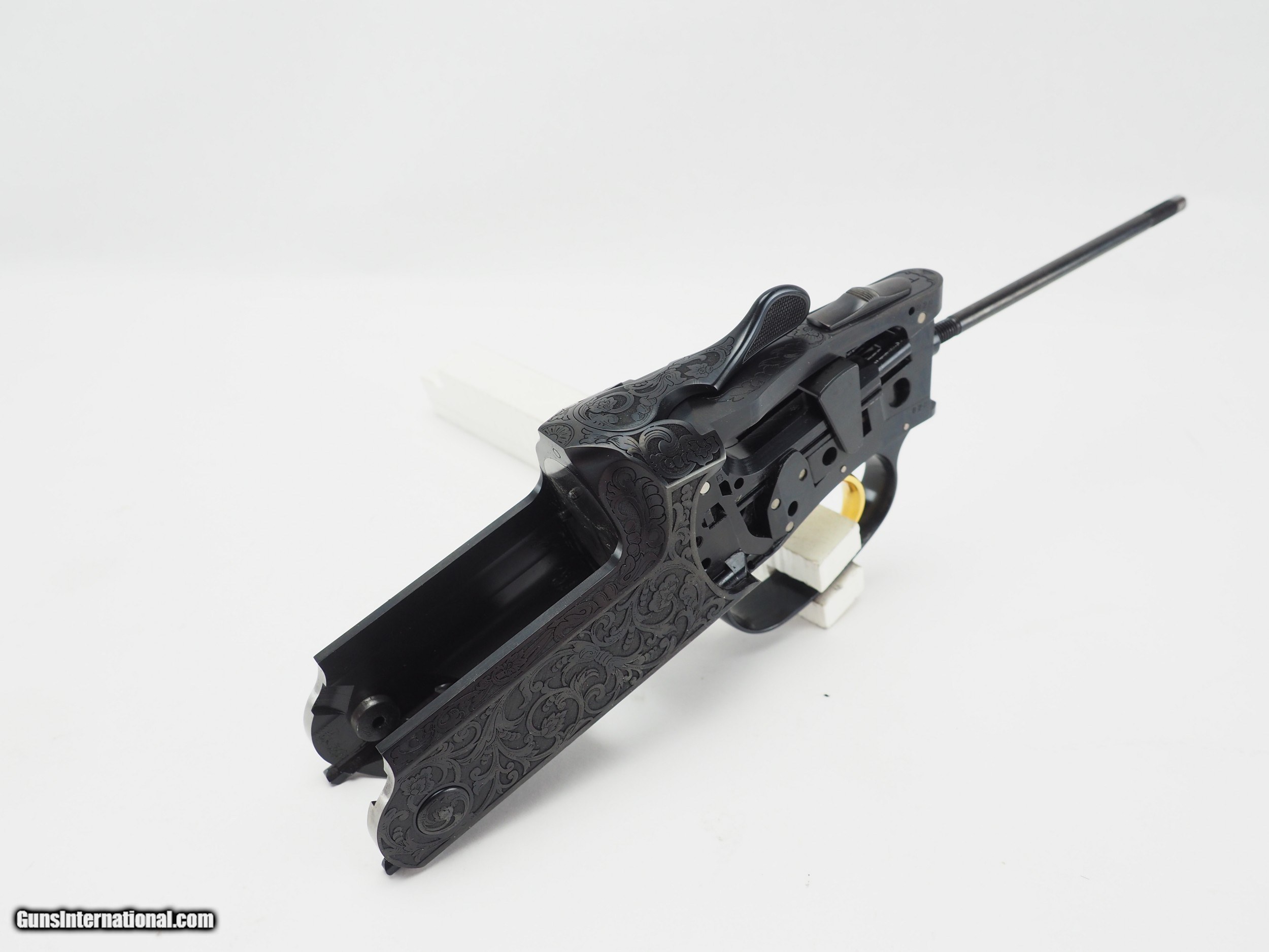 Description: Are you tired of being told "no" when you want a shotgun setup your way? "Why can't I get this stock with that barrel," you ask. "Because it's not made that way," they reply. At Target Shotguns Inc, we are happy to build you whatever configuration of Blaser F3 fits your needs and desires. Simply choose the style of receiver, configuration/grade of stock, rib height, and barrel length/gauge. Because Blaser components require zero fitting, you are 100% assured that all components will properly mate together as if they left Germany together as a gun. Use Blaser's modularity to your advantage, and with no special order fees! If you're not sure which setup you need—because really, it's a lot to digest!—simply give us a phone call at 828-693-3833 and Bob or Steven will happily walk you through to the best F3 setup for your particular needs. Featured here is the Bonsi 2 Black receiver, with matching forearm iron. This is the only black Bonsi 2 receiver Blaser has made! The receiver is available for purchase by itself, as a whole gun, or as a partial gun. Receivers purchased a-la-carte come with the standard Blaser luxury case. SOLD Shotgun Gauge: 12 Gauge |