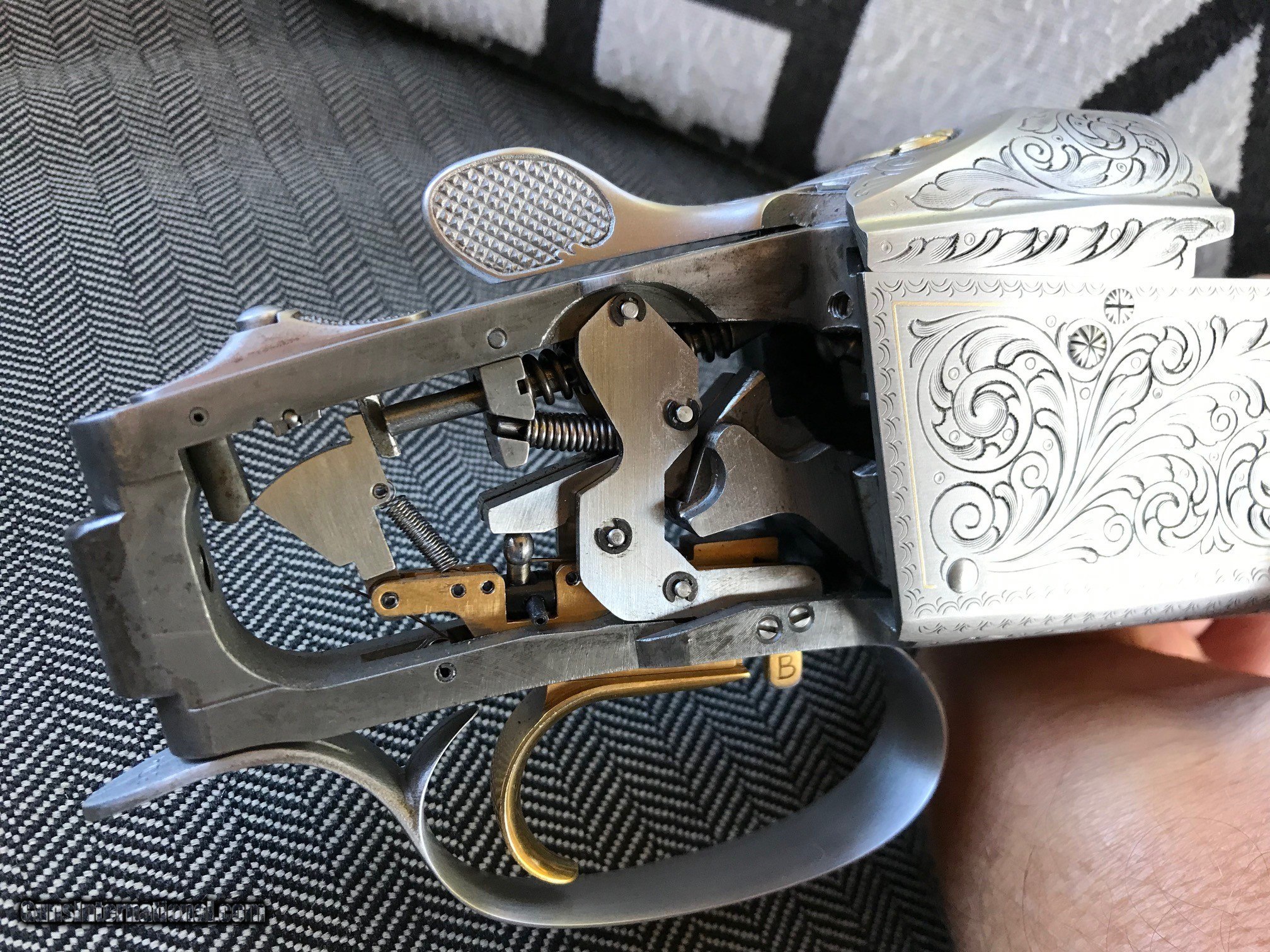 Description: Super nice, super clean K80 Gold Super Scroll receiver and forend iron. Serial number 26804 (1999). This is the 'Coin' finish. Annual was done in September and has been unfired since. New list on a Gold Super Scroll receiver and iron is over $17K. I would entertain a trade +cash for an unaltered DT10L. Call with any questions you might have. SOLD |