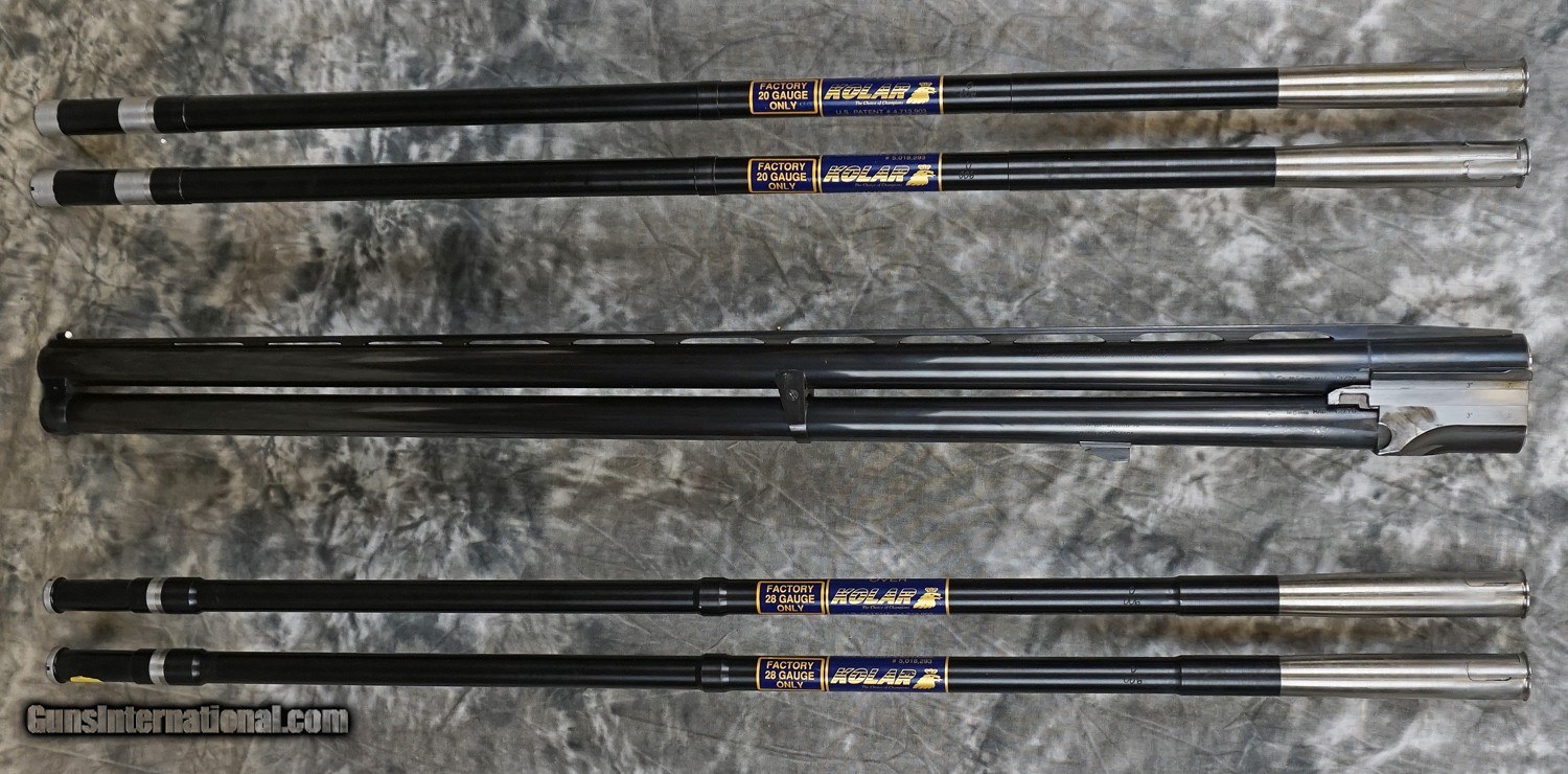 Description: Pre-Owned Krieghoff K-80 Skeet Barrels, 12GA 28" with fixed (SKT/SKT) chokes and parallel rib. Full set of Kolar AAA sub-gauge tubes (20/28/.410). Minor scuffs on monobloc, very minor bluing wear on barrels. Includes tools and additional chokes for sub-gauge tubes. **IMPORTANT TERMS ABOUT BARREL PURCHASE: BUYER MUST HAVE BARRELS FIT BY QUALIFIED GUNSMITH, BARRELS NOT FITTING ON PURCHASER’S ACTION IS NOT CAUSE FOR RETURN OF THESE BARRELS AND REFUNDS WILL NOT BE OFFERED ON BARRELS THAT DO NOT “DROP-IN” OR FIT, PURCHASER IS RESPONSIBLE FOR HAVING BARRELS PROPERLY FIT TO THEIR ACTIONS TO THE FACTORY’S STANDARDS AT THE PURCHASER’S EXPENSE. SOLD Shotgun Gauge: 12 Gauge, 20 Gauge, 28 Gauge, .410 Gauge |