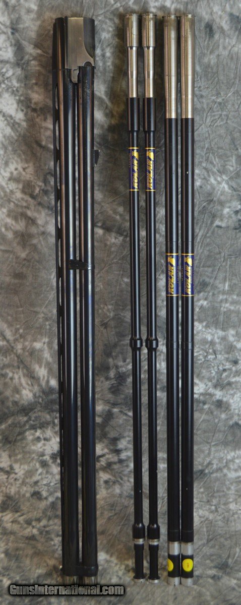 Description: Pre-Owned Krieghoff K80 Barrels 12GA, 30" with factory Titanium chokes, full set of fitted Kolar AAA sub-gauge tubes (20/28/.410), this is a standard 12GA barrel and includes 5 chokes, sub-gauge tubes and tools. Sub-gauge tubes only include Skeet chokes. Minor bluing wear on barrels, some scuffs forward of monobloc. Must be fit by qualified gunsmith. SOLD |