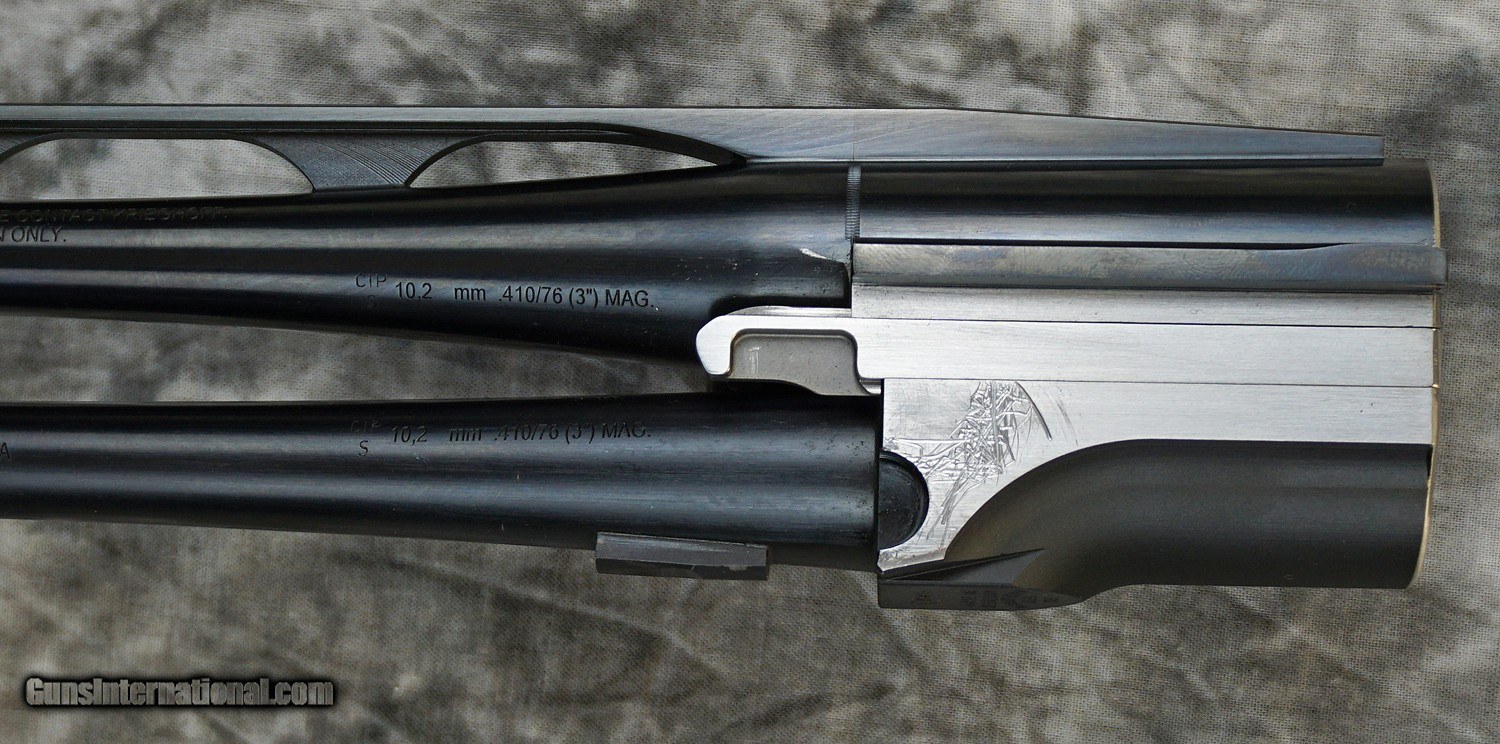 Description: Pre-Owned Krieghoff K-80 (For 12GA Action) Sporting Barrels .410 Bore 32" with tapered flat sporting rib, steel extended choke tubes. Scuffing and minor galling on monobloc, very minor bluing wear. Overall excellent condition. Consignment, ineligible for trade-ins. **IMPORTANT TERMS ABOUT BARREL PURCHASE: BUYER MUST HAVE BARRELS FIT BY QUALIFIED GUNSMITH, BARRELS NOT FITTING ON PURCHASER’S ACTION IS NOT CAUSE FOR RETURN OF THESE BARRELS AND REFUNDS WILL NOT BE OFFERED ON BARRELS THAT DO NOT “DROP-IN” OR FIT, PURCHASER IS RESPONSIBLE FOR HAVING BARRELS PROPERLY FIT TO THEIR ACTIONS TO THE FACTORY’S STANDARDS AT THE PURCHASER’S EXPENSE. SOLD Shotgun Gauge: .410 Gauge |