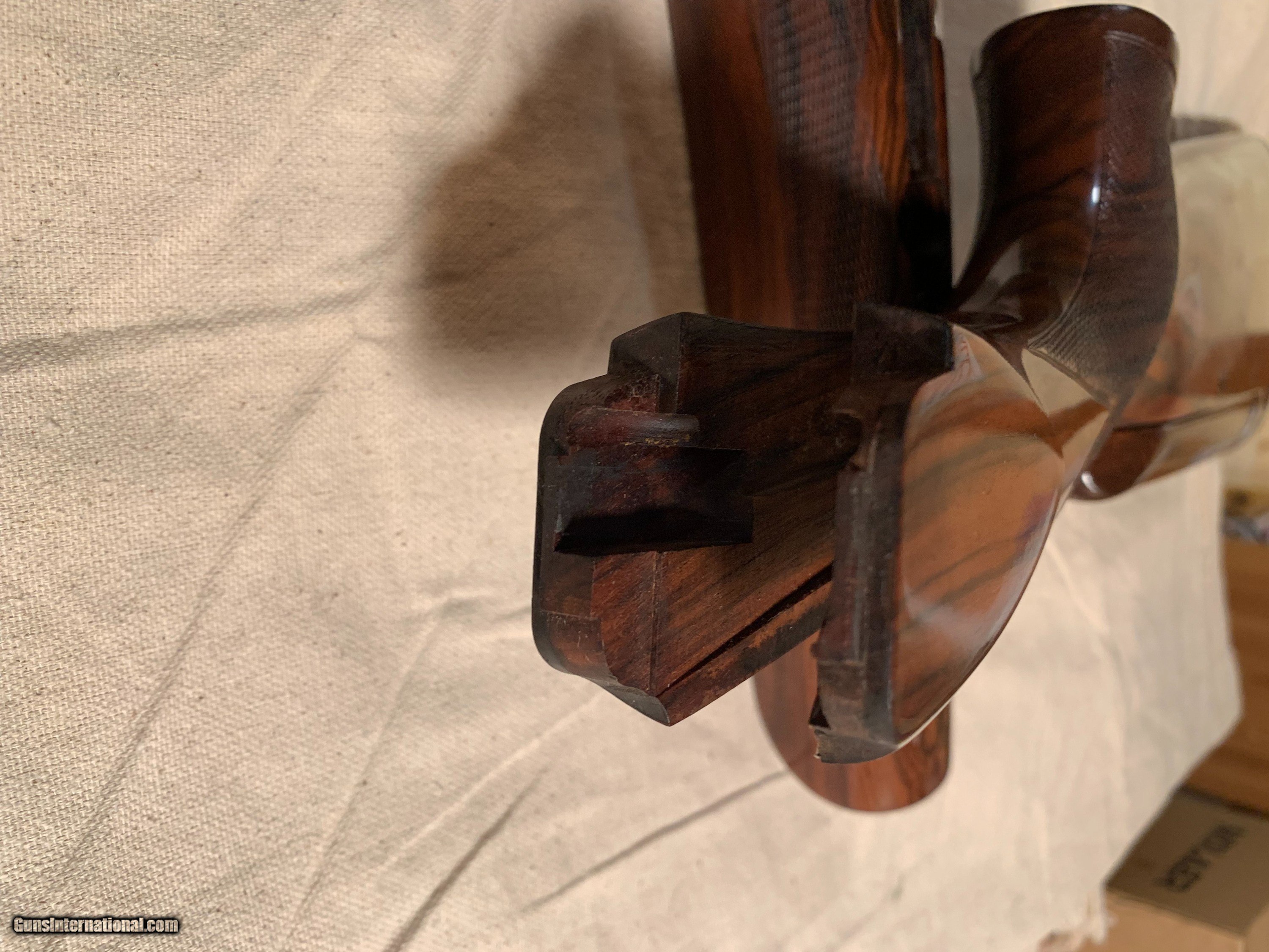 Description: Perazzi MX8 SC2(maybe 3) Adjustable comb stock with matching forend LOP 14.5 from flat rib DAC 1.5 DAH 2.5 cast off for right handed shooter Minor scratches that are very hard to see. Really close to perfect. Just look at the photos Price is firm Flat shipping to CONUS $25 SOLD Shotgun Gauge: 12 Gauge |