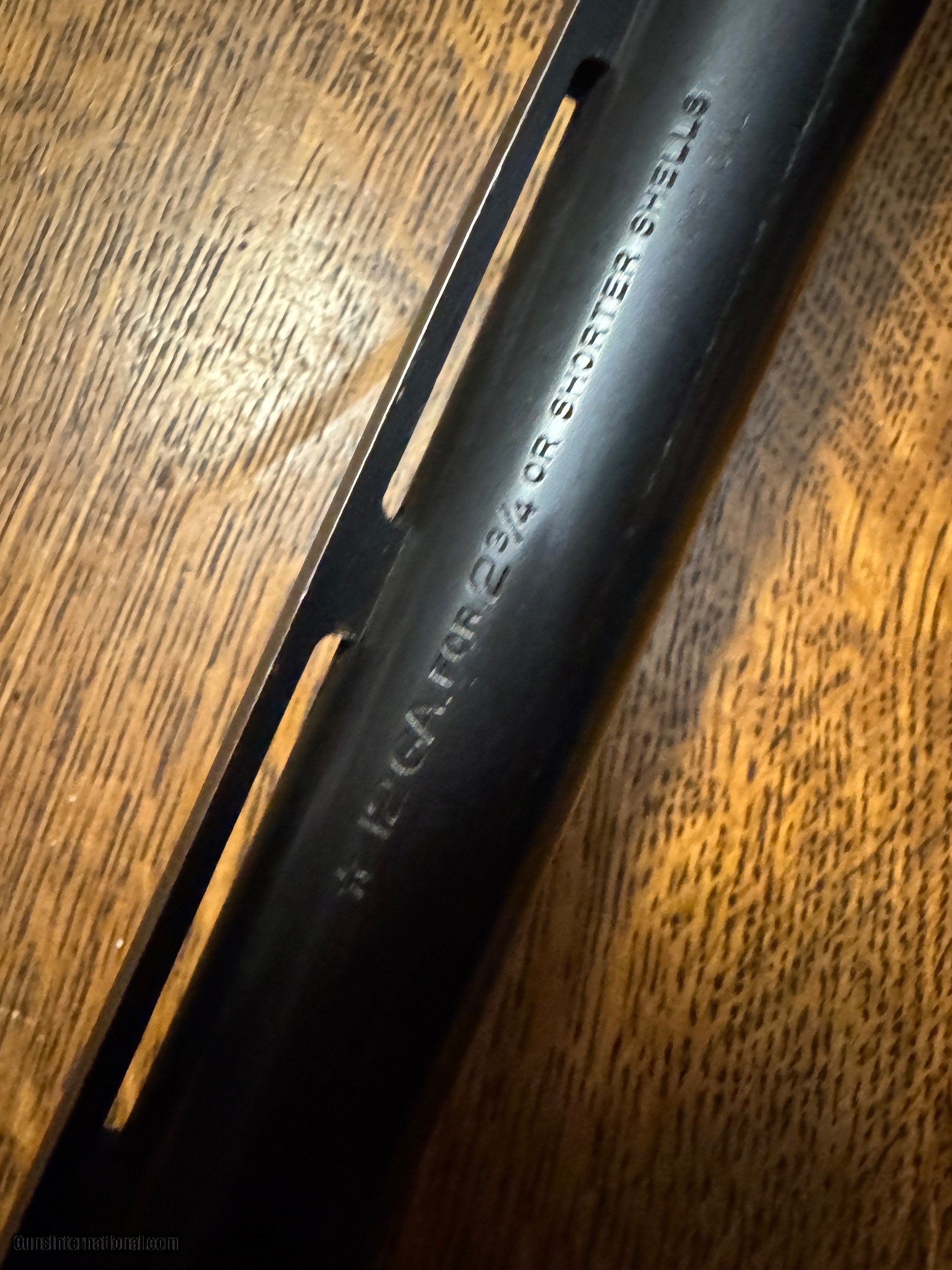 Description: I have a Remington Model 58 12 Ga vent rib improved cylinder choke barrel for sale. This barrel is in great shape. It is pretty clean inside and out. It does have a couple marks, but it looks great overall. See pictures for condition. This barrel is marked full, but it measures modified with my drop in bore gauge. It is 26 inches long. It has a ventilated rib and has a bead sight. It is chambered for 2 3/4" shells. Asking $500 obo plus shipping. Please call or text me at 2605179491 with questions or offers. Shotgun Gauge: 12 Gauge Price: $500.00 Shipping: $25.00 Buy Now Contact Seller |