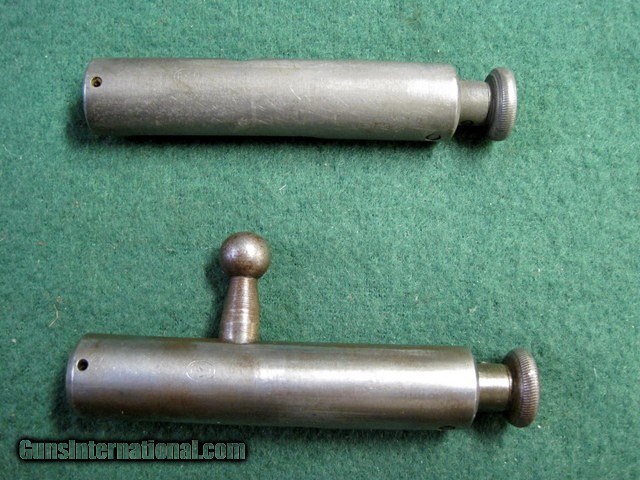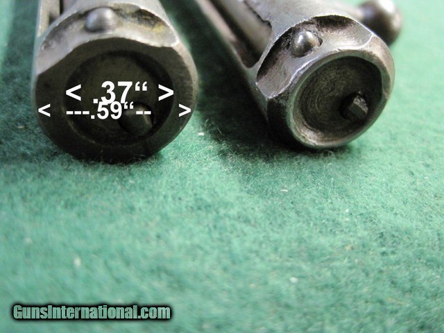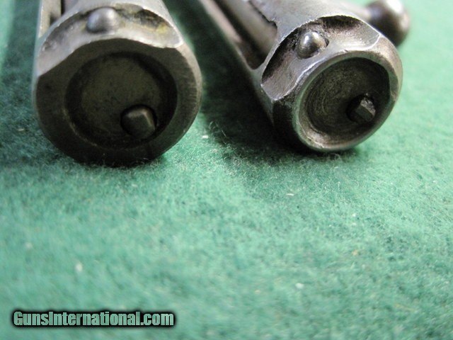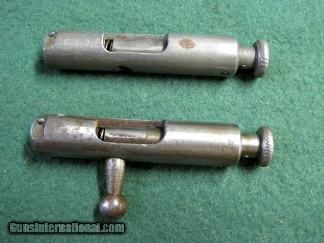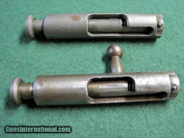 Description: Two Winchester Model 36 9mm Bolts. I believe these are for Winchester Model 36 9mm. The operative word here is believe. I do not have a Mod 36 so I cannot guarantee they are for a Mod 36. If these do not fit your Mod 36 you may return them within 3 days of receipt for a full refund. Came from an estste & were in a box marked Win Mod 36. Measurements are on the pictures. If you need additional information please ask. One is missing a handle. Otherwise, they are alike. They are complete with springs & firing pins. Ships only to lower 48 states. Shipping is Free. No add on fees for credit cards . SOLD |