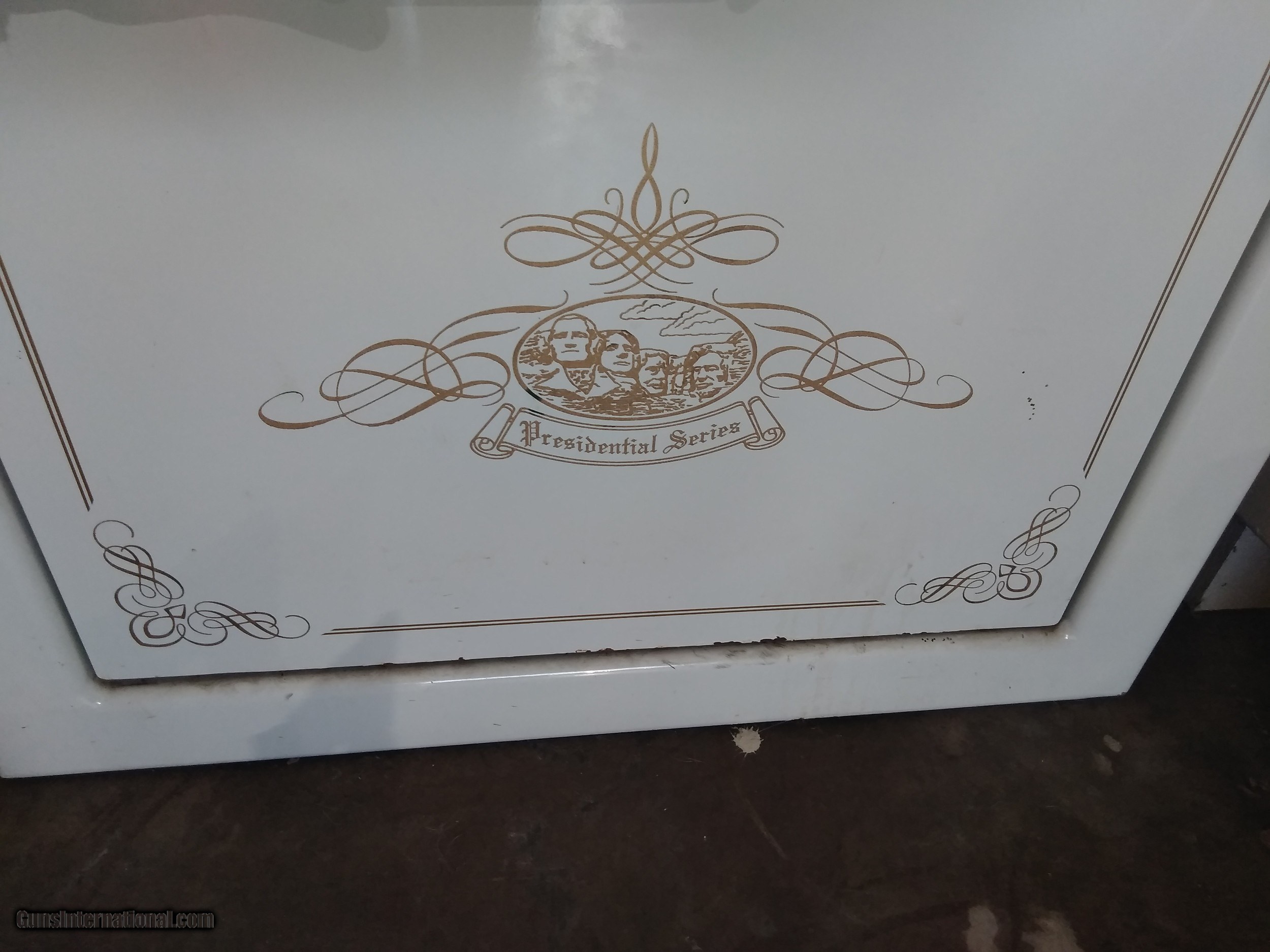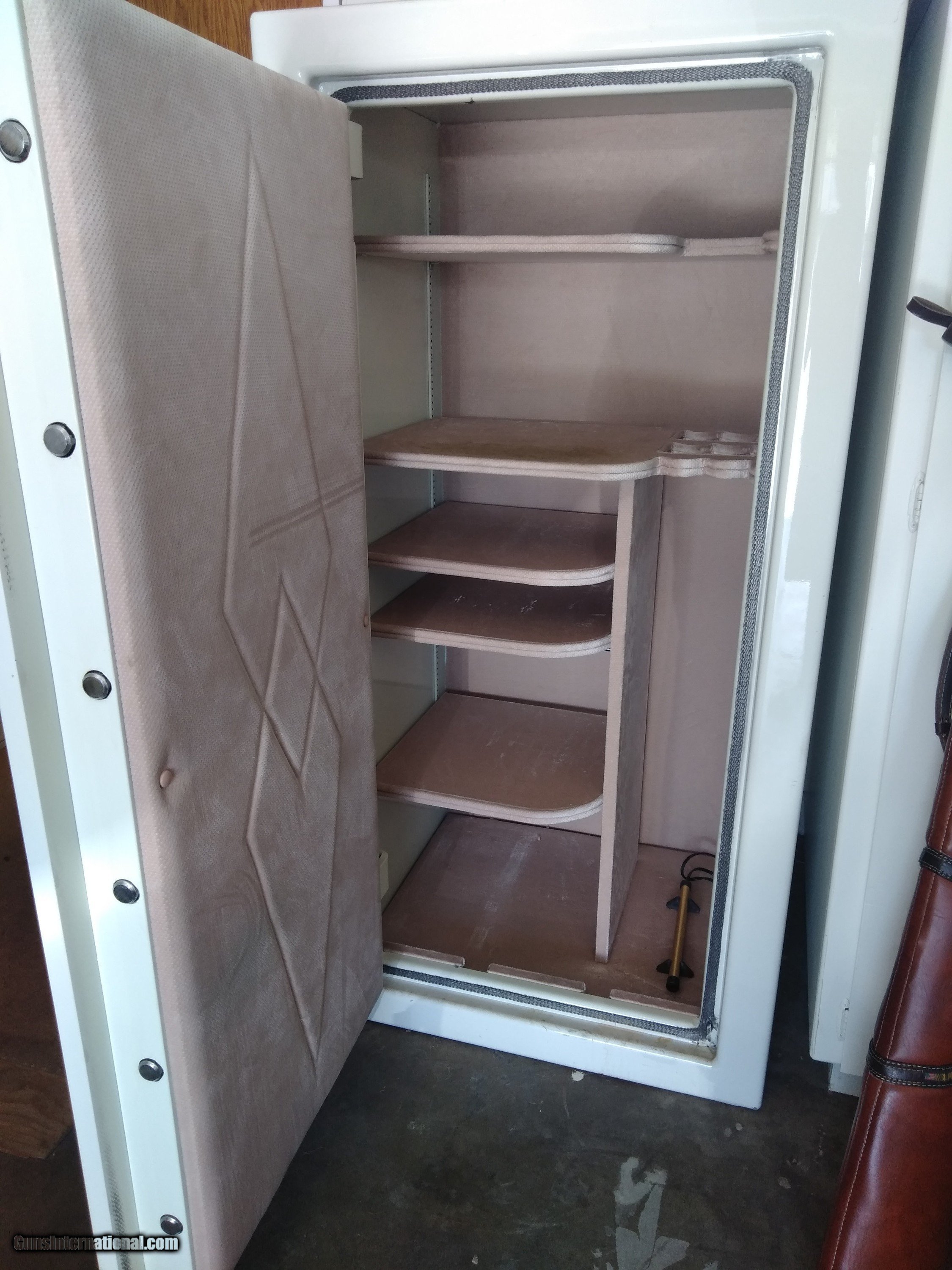 Description: 25 yrs old. Bought new in '94, 61 1/2" x 31 1/2", 1110 lbs, 16 1" bolts. Has a 1200 Degree F rating for 1 half hr. Safe heater, padded shelves, one shelf has a few gun oil stains other than that very clean inside and out. Locking mechanism works like new. Local pick up only. SoCal 91701 Cash only. Bring enough help and a safe or fridge dolly. 909-809-9911 w/ Qs or offers. SOLD |
