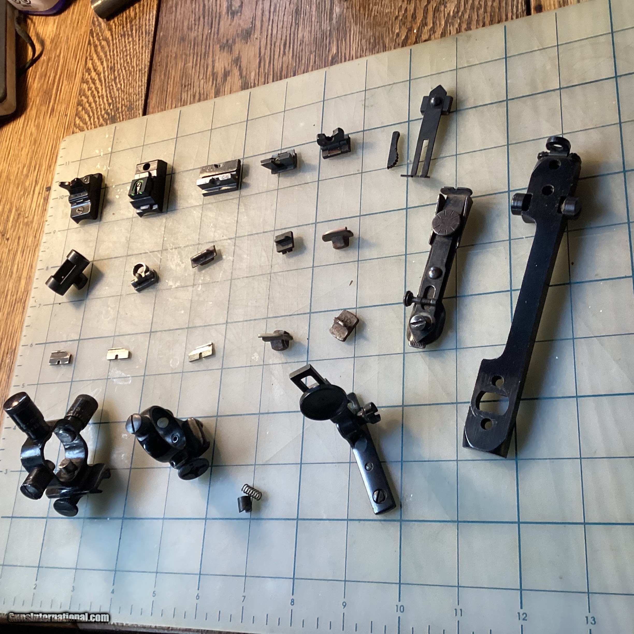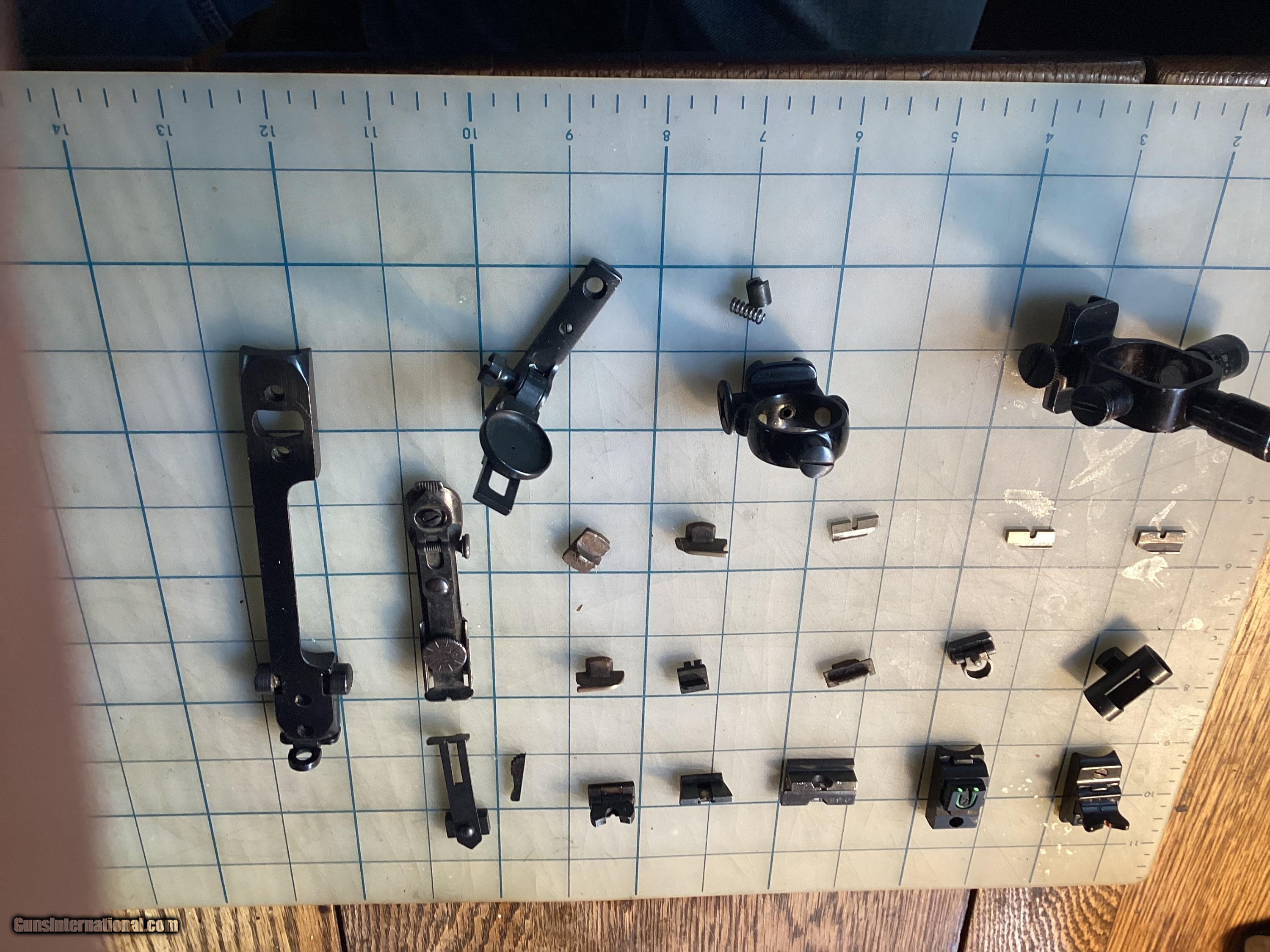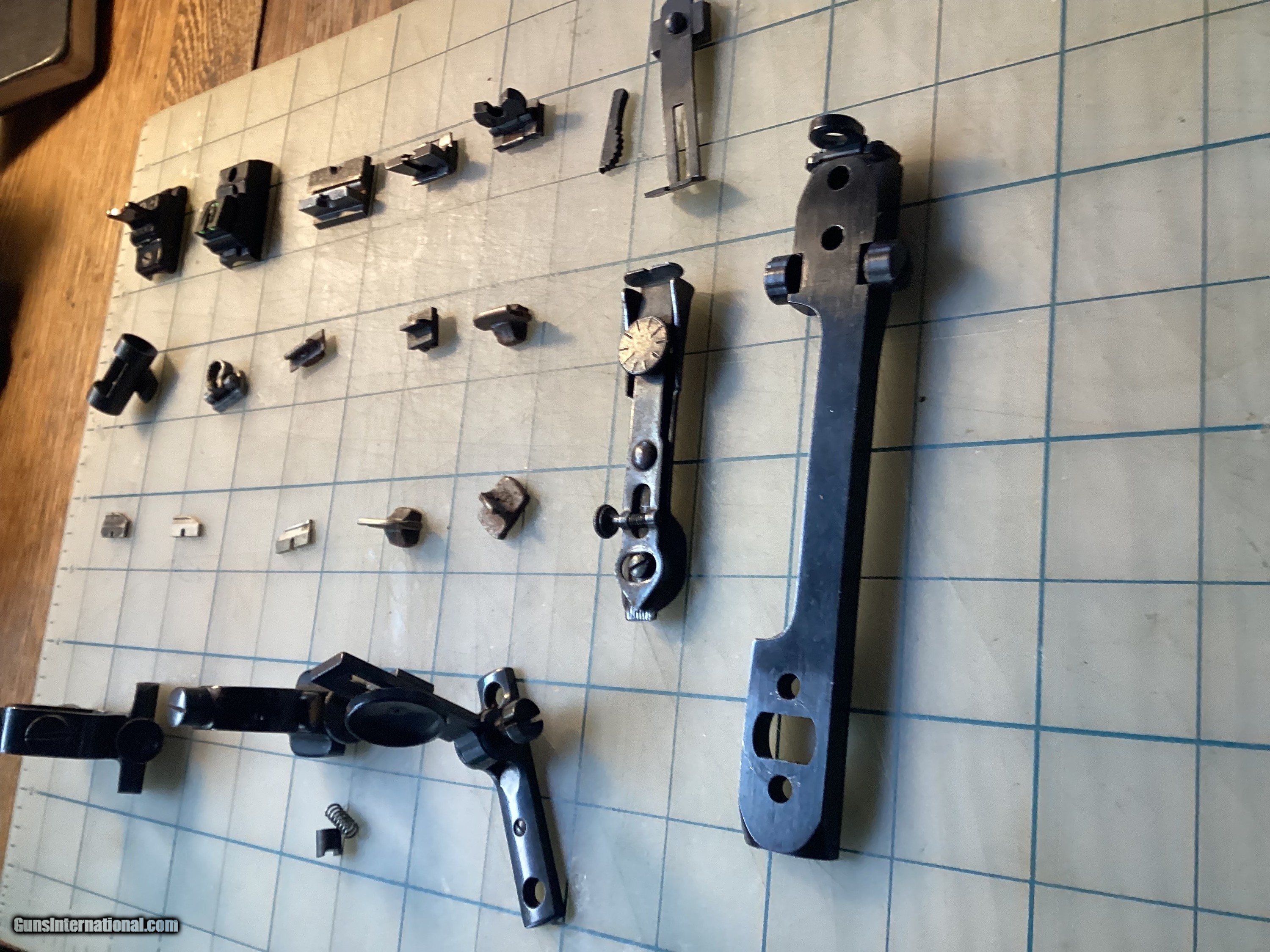 21 VTG metallic gun sights,unertl styel mounts mini,sharps peep site, Winchester, marbles front site etc.