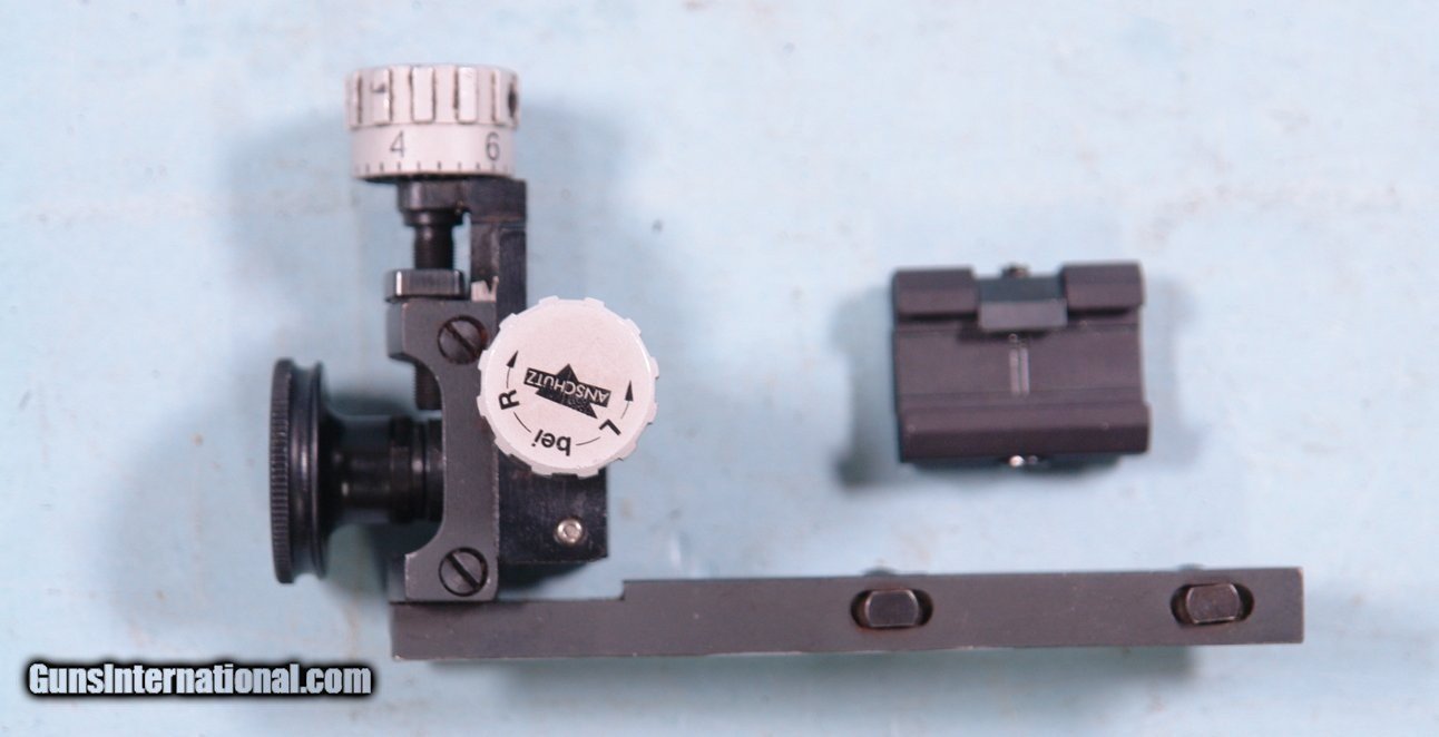 Description: ANSCHUTZ PALMA MATCH ADJUSTABLE TARGET RIFLE REAR SIGHT. Great condition rear sight with Anschutz marked on caps. Knobs turn very well and are in good working order. Peep sight is just fine and easily interchangeable. Also included is a sight base that reads "Anschutz Germany" in good condition. SOLD Rifle Caliber: .22 Long Rifle |