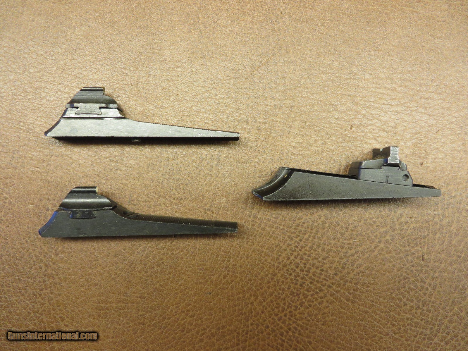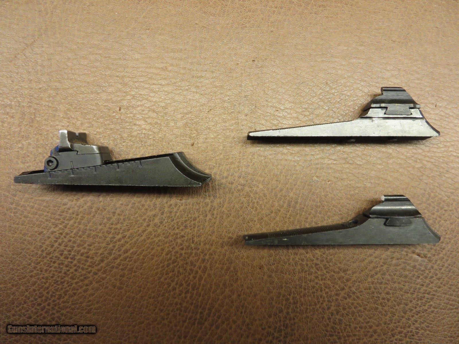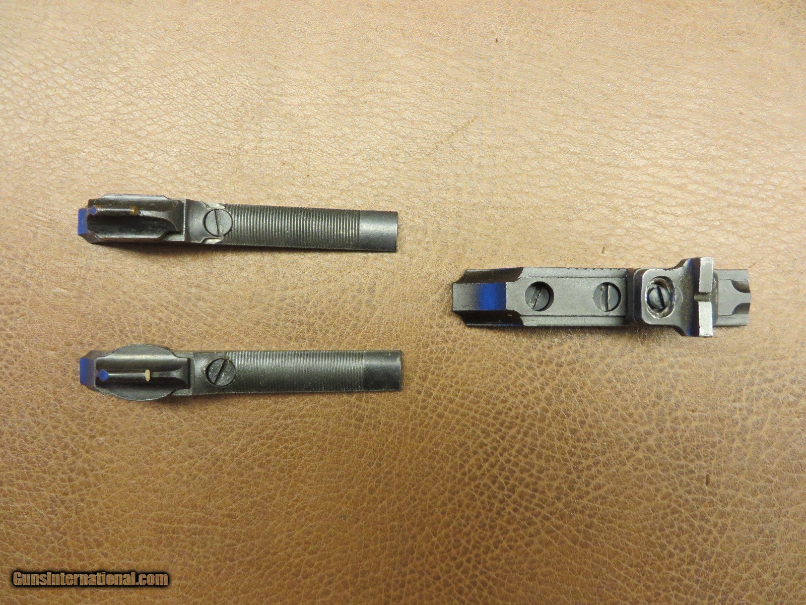 Description: Complete front and rear adjustable sight set with attaching screws. Front sight is available with or without the notch for a hood. SOLD |