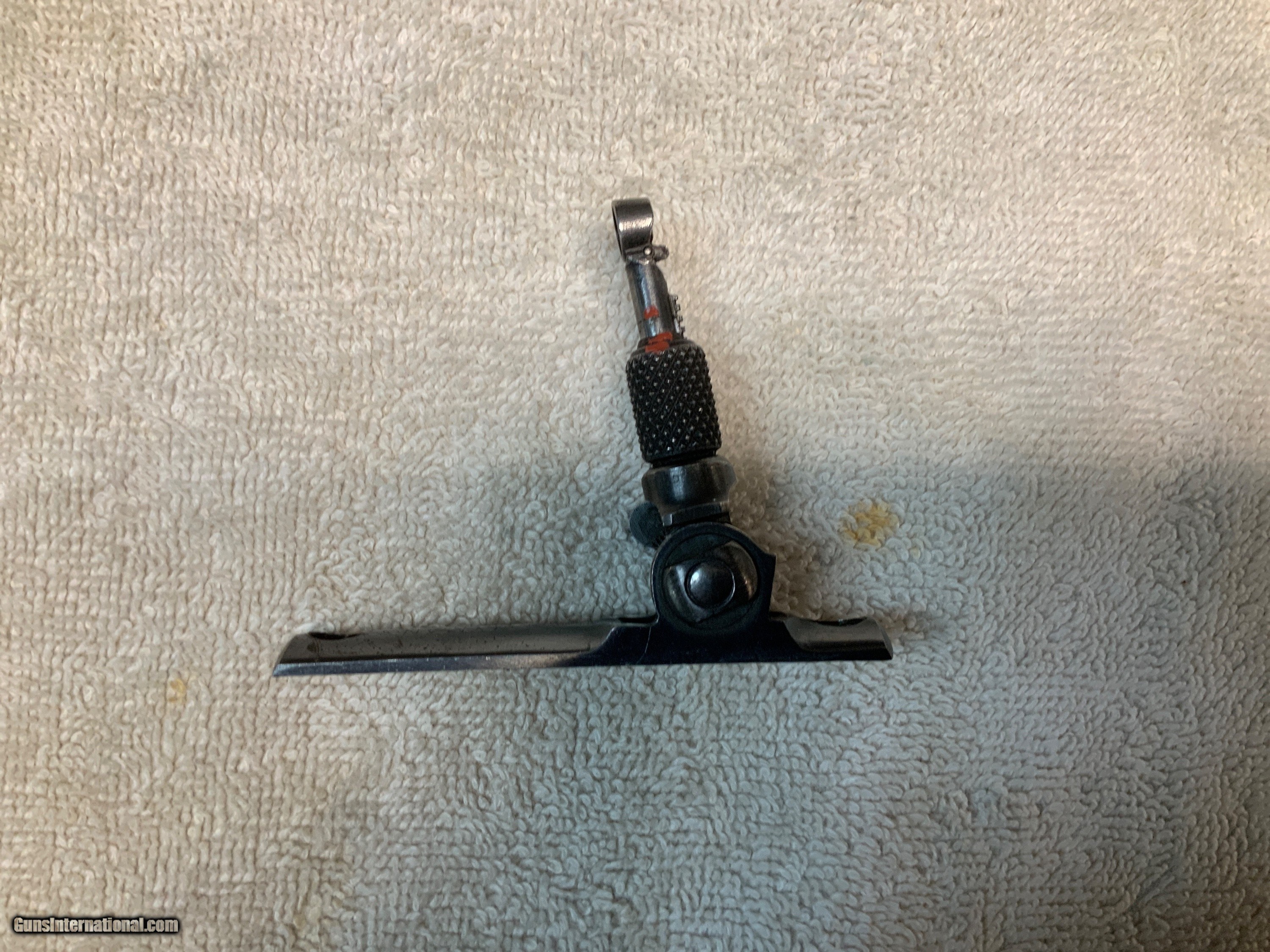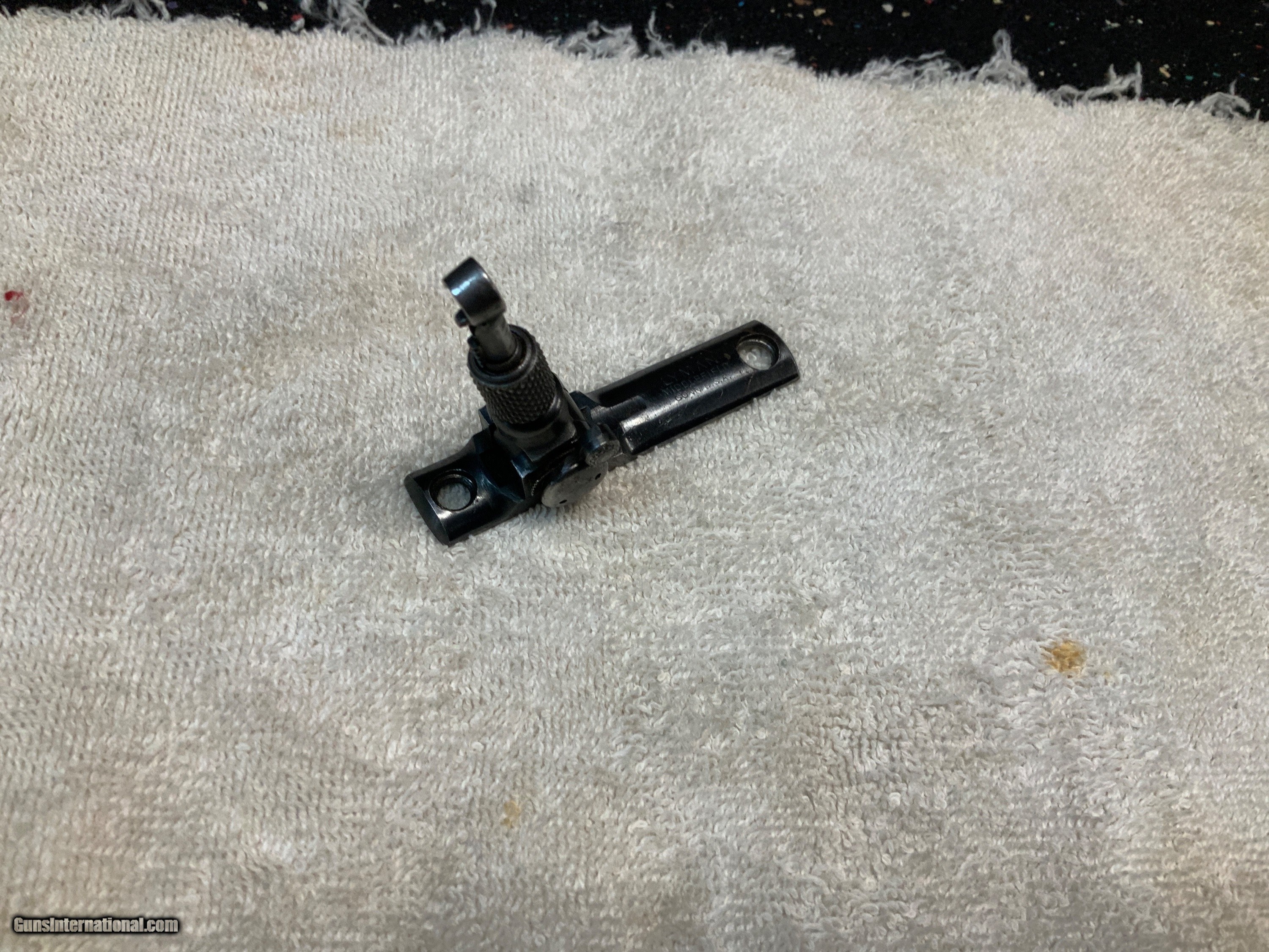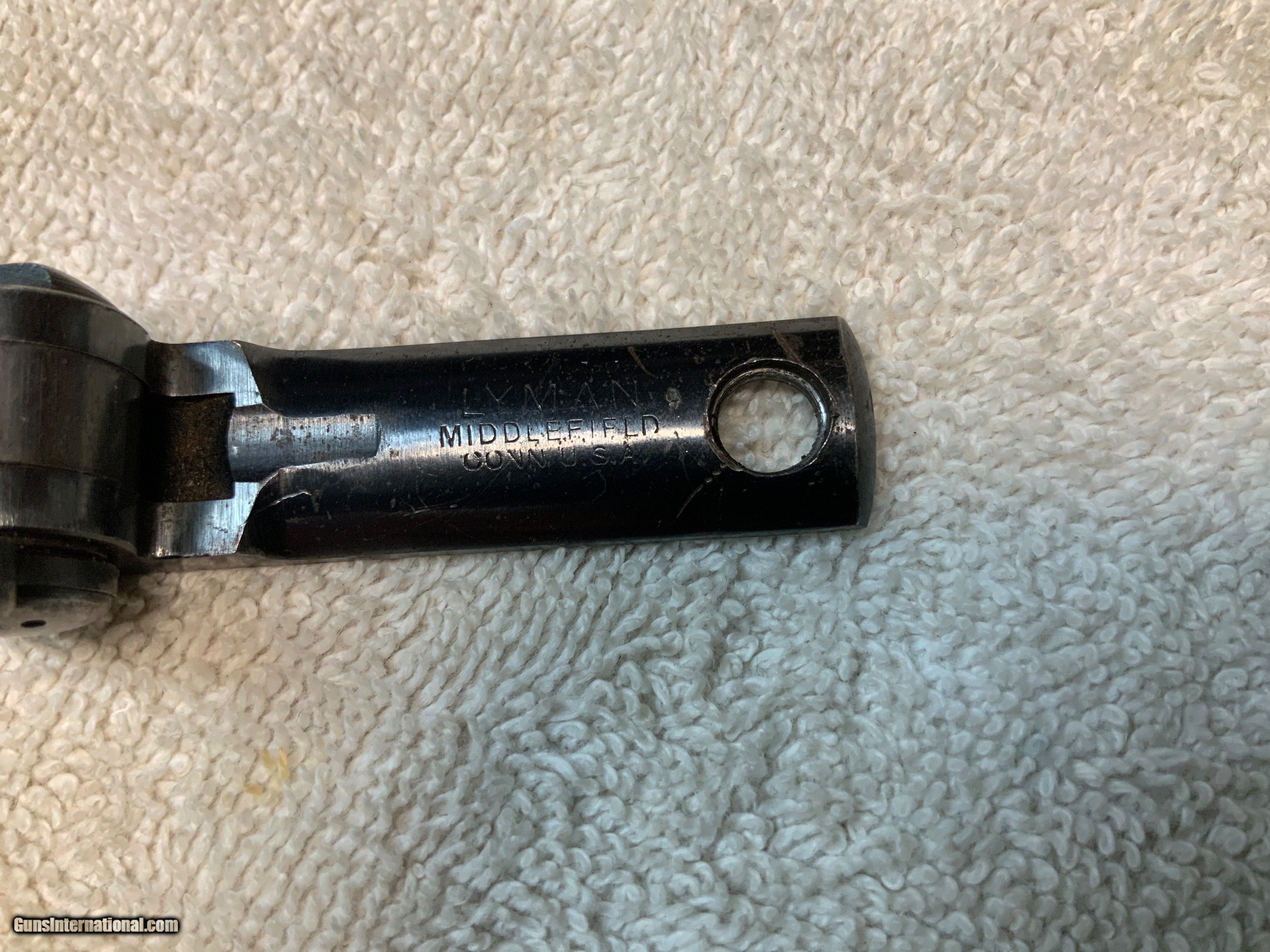 Description: Vintage Lyman tang sight stamped "DA" on the bottom. Research tells me it fits the Winchester model 94. Screw holes measure approximately 2 1/8 inches center to center. Great condition with peep insert. Shipping included in the price. SOLD |