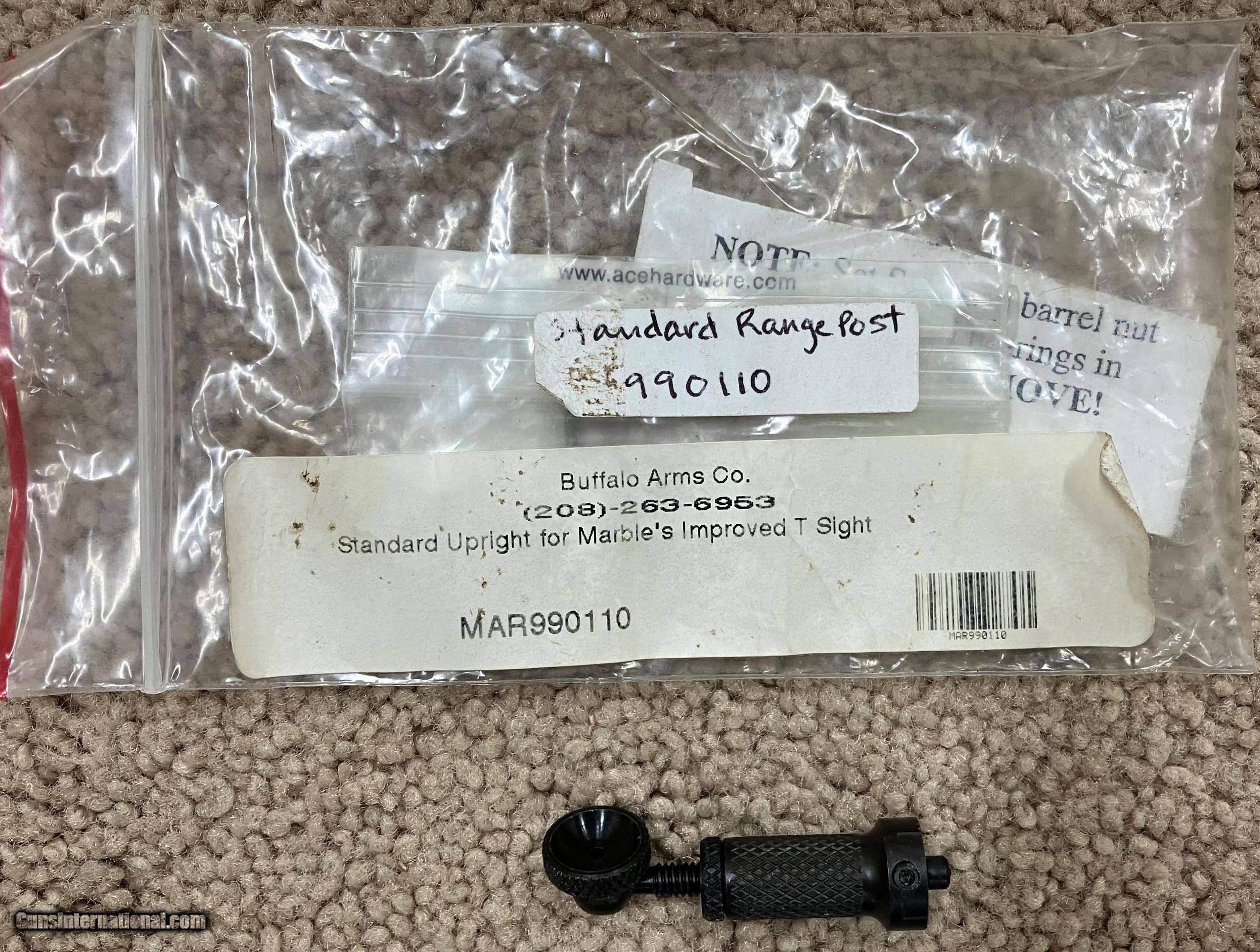 Description: Marbles Improved Peep Tang Sight Base # 991011, screw holes 1.95" center-to-center, new, open box, never mounted. Marbles Standard Upright for Improved Sight, # 990110, new, open package, never mounted. Marbles Screw Set # 995031. Marbles lists Sight Base # 991011 to fit the following Manufacturers/Models: Colt Lightning Small Frame, Colt Lightning CAS Shoot; Henry .22 LR; Henry 22Mag; Henry H004; Henry H004M; Remington Models 1, 2, & 5; Remington RB1 (current production); Uberti Rolling Block. No return once the sight component(s) has been mounted. Shipping $10 Lower 48. Price: $90.00 Contact Seller |