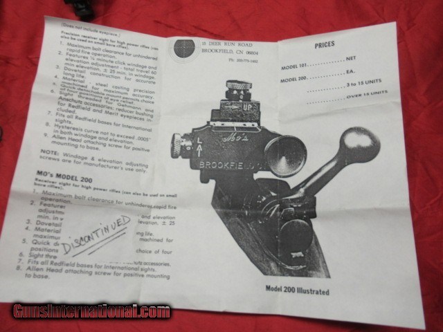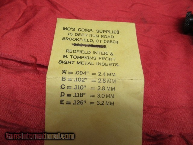 Description: Looks new, Comes with four inserts for front sight, FRONT SIGHT IS NOT INCLUDED, Buyer pays 20.00 shipping Pa residents add 6% sales tax, Price is for check or money order, CC add 3% SOLD |