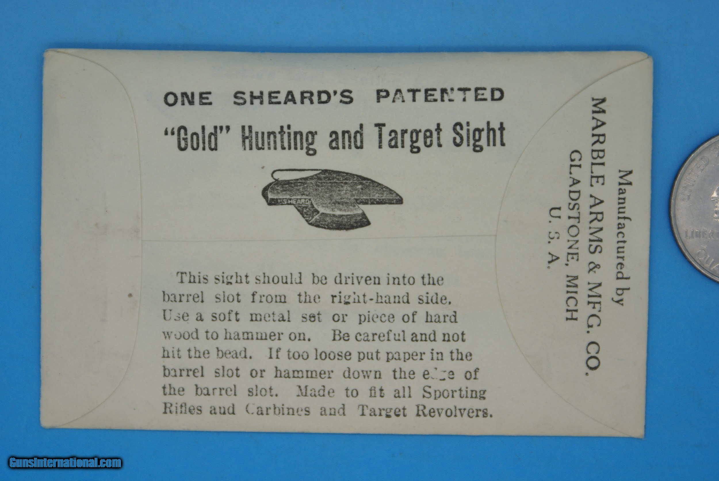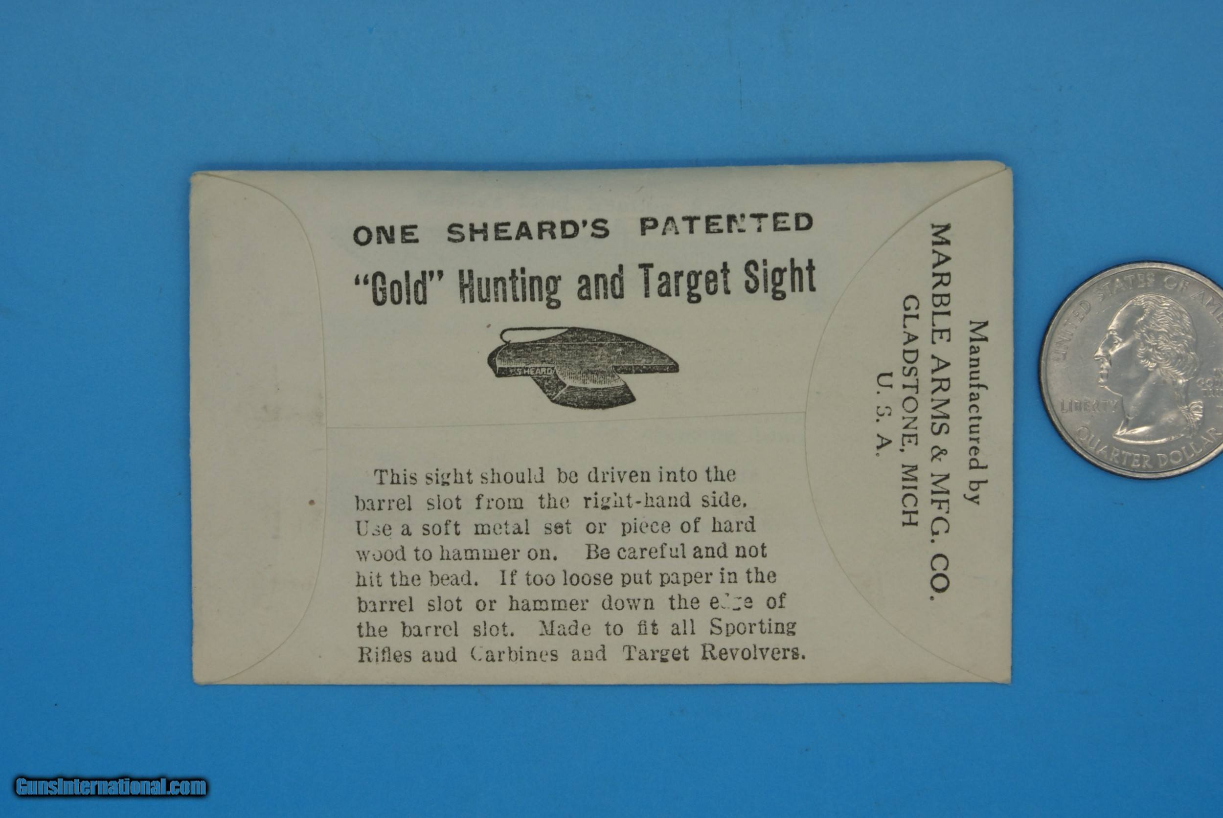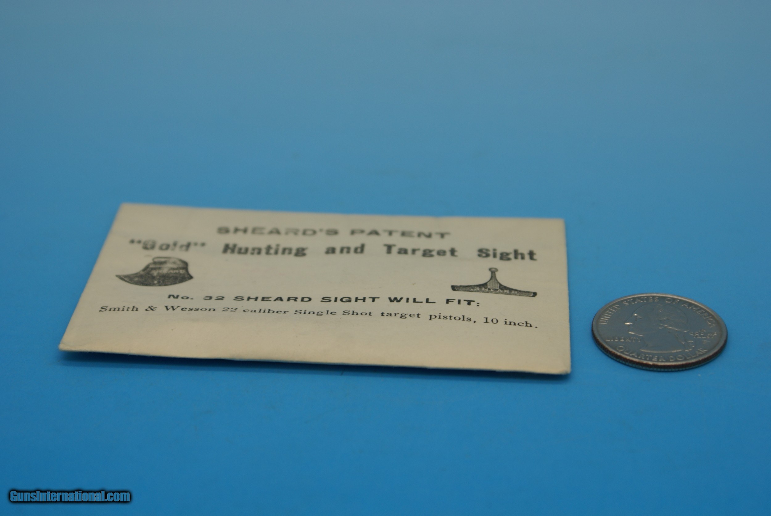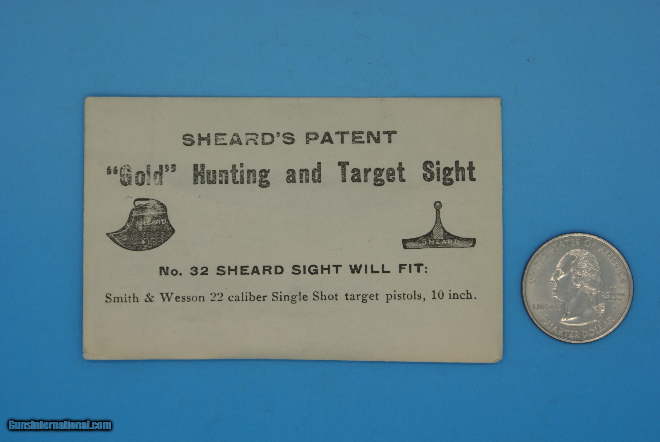 No. 32 SHEARD'S PAT "GOLD" HUNTING & TARGET S&W .22 CALIBER PISTOL SIGHT VINTAGE