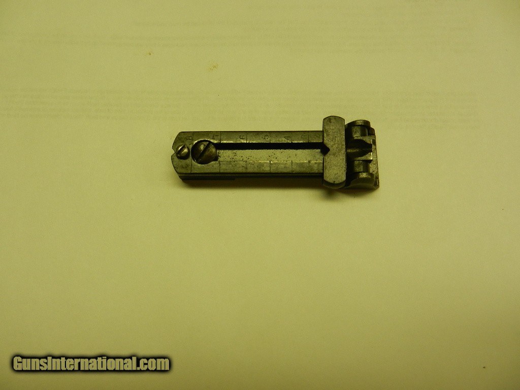 Description: Original Sharps Rear musket sight. Complete sight with the dovetail piece. These are longer than those used on the Sharps Saddle Ring Carbines. Distance from center of the dovetail to the center of the screw hole is 1 5/8". Sight came of an original Sharps 1878 musket. Money order or cashier's check + $6.00 shipping. Call 814-724-5006 with any questions etc., land line so no texts. SOLD |
