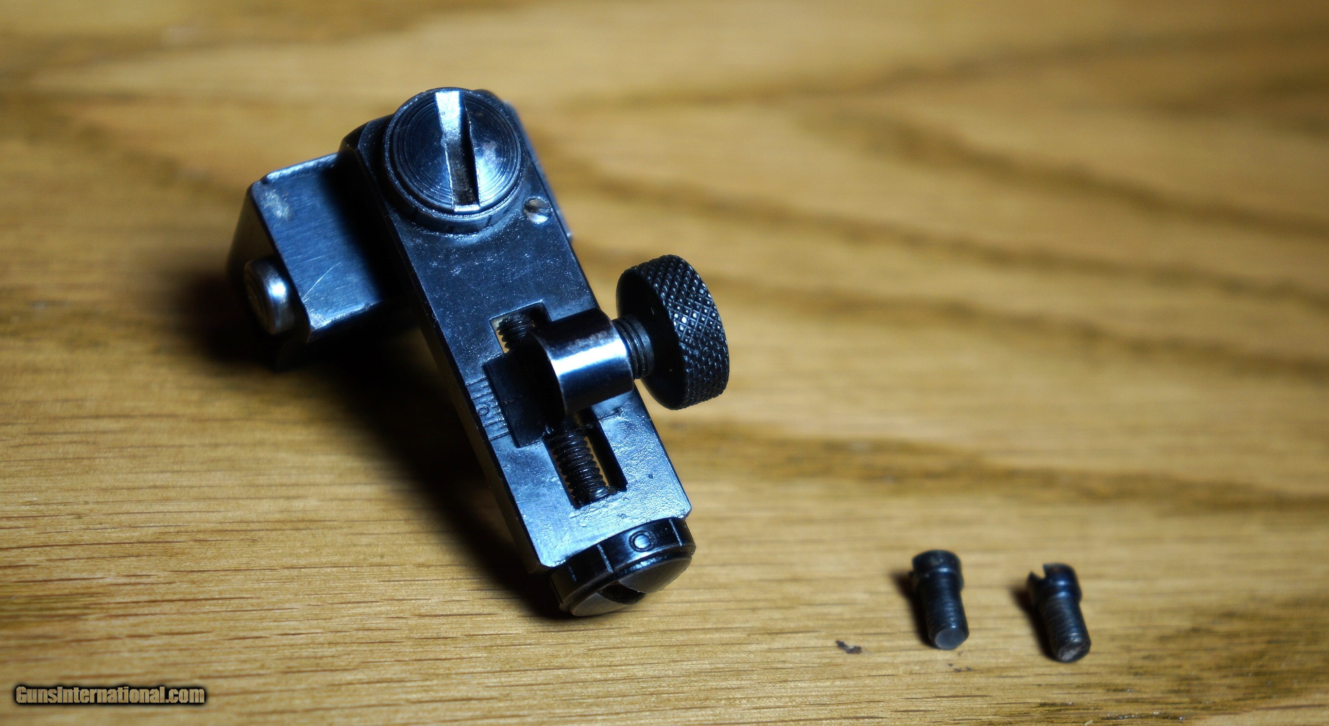 Description: In 1963 this Redfield receiver sight was removed from a FN made Mauser rifle when the rifle was upgraded with the installation of a rifle scope. The sight has been in storage ever since. It is a Redfield 80 series receiver sight. It features hunter style coin slotted adjustment knobs, ¼ minute click windage and elevation adjustments. In addition, 80 series receiver sights were equipped with a quick removable windage staff (also called a slide). The slide is released with a small push button located on the sight’s mounting block. See photo #10. This button is frozen (seized) in place. It does not engage nor retract from its current position. Both the elevation and the windage adjustment knobs freely turn in both directions as they should. The sight is fully functional with the button in the stuck position. My guess is this stuck quick removable windage feature after sitting for many years may need a thorough cleaning and oiling to put it back in service. Perhaps just sitting a few days in a grease cutting safe solvent would free things up. I believe most shooters when their rifle is sighted in do not wish to do much “off and on again” of the sight’s slide. In all other aspects the sight is in good workable condition. There are a few shiny spots which can be seen in the photos. The two original mounting screws are included. The sight was designed to fit 93, 94, 95, 96 and 98 Mauser receivers. The price is $100.00 and includes delivery. SOLD |
