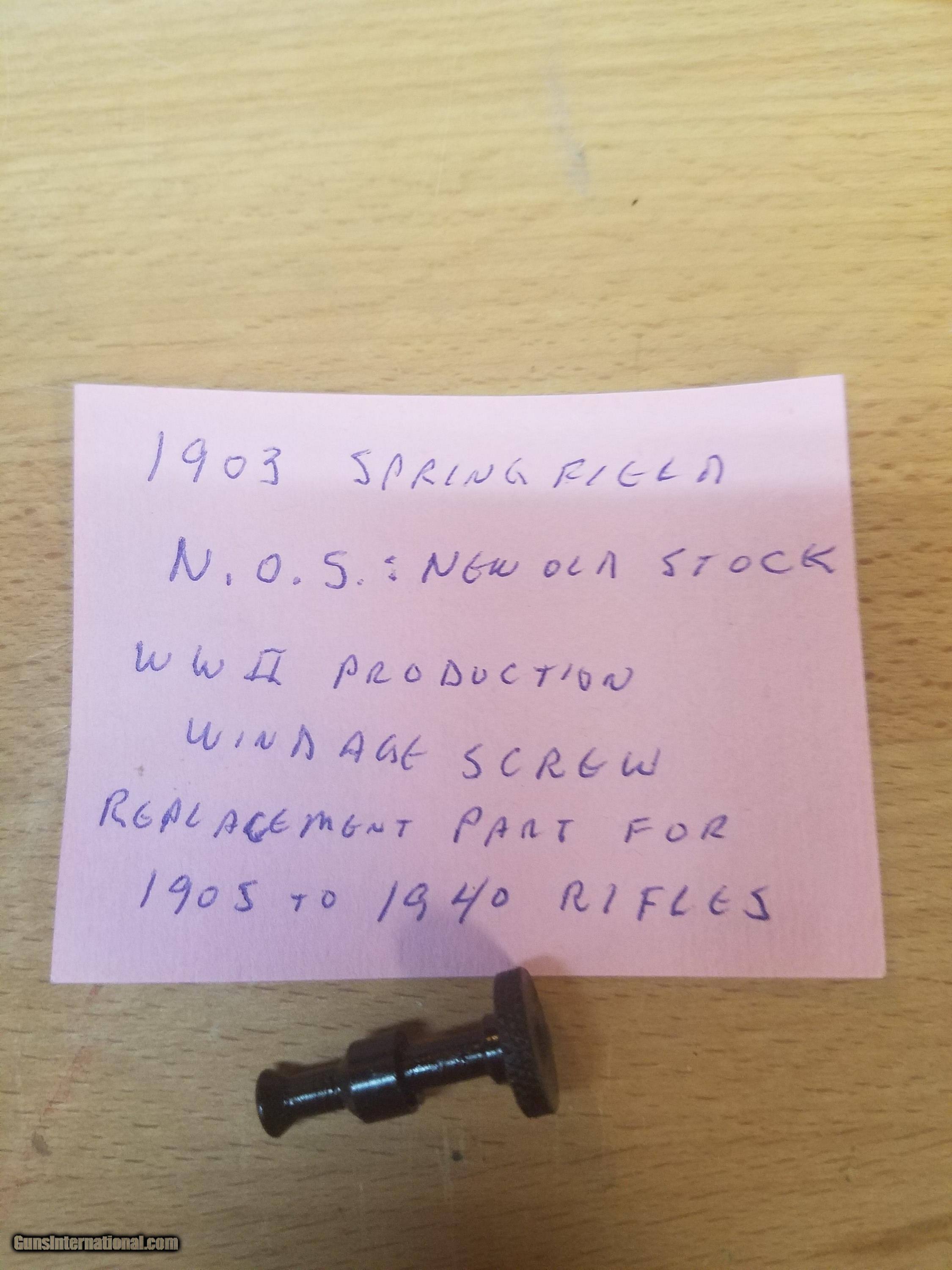Description: 1903 Springfield National Match Ladder Sight New Old Stock $170 "used" springfield NM windage screw $20 New old stock springfield WW11 production windage screw $20 Shipping $6 SOLD |