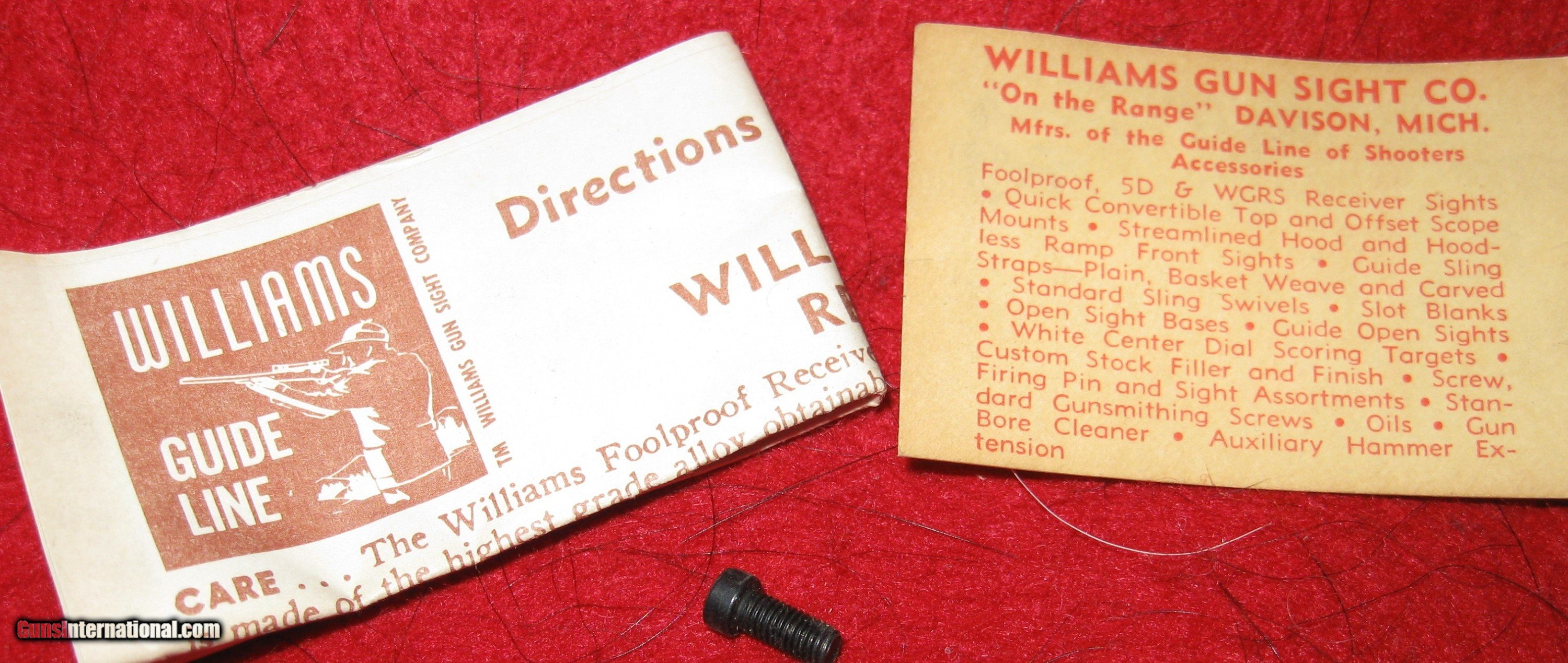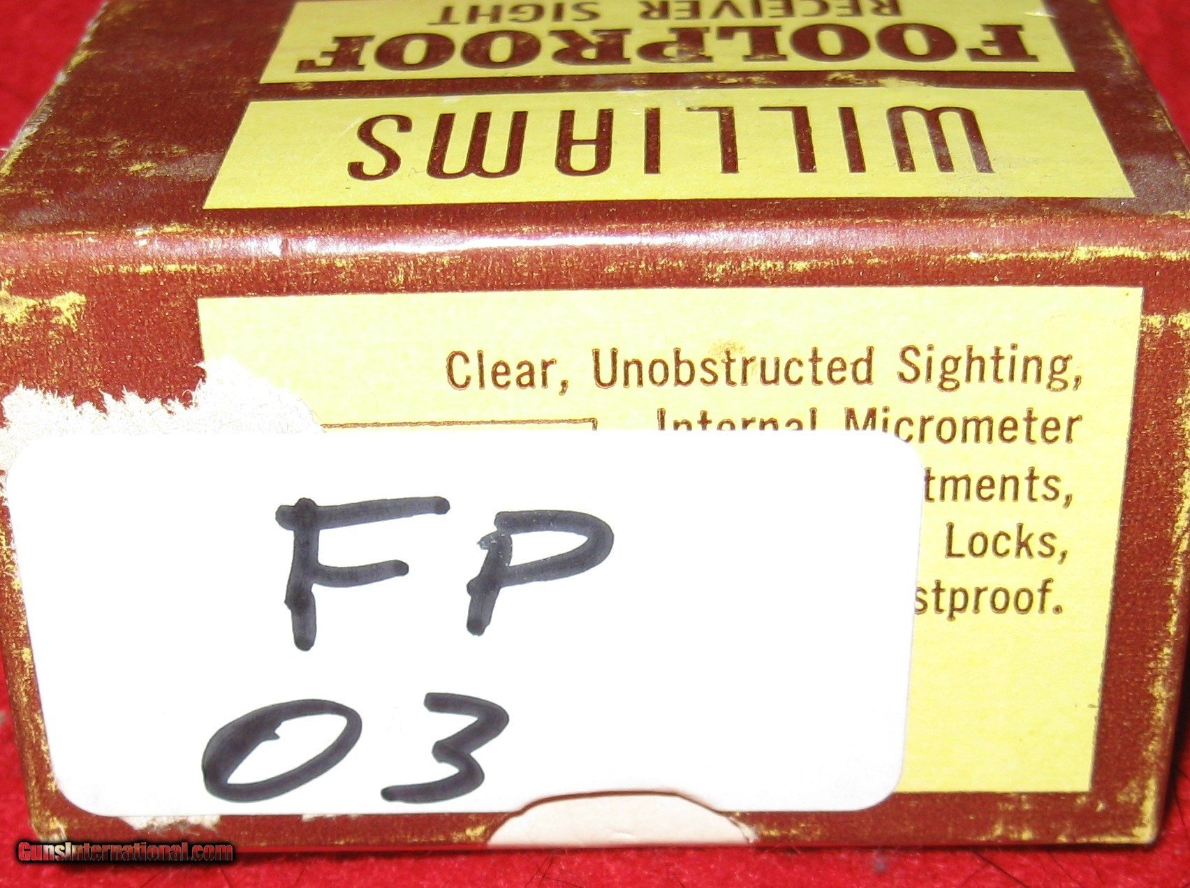 Description: THIS WILLIAMS FOOLPROOF SIGHT IS MARKED FP-03. IT IS IN IT'S ORIGINAL BOX WITH PAPERWORK. SHIPS USPS PRIORITY DIRECT. SOLD |