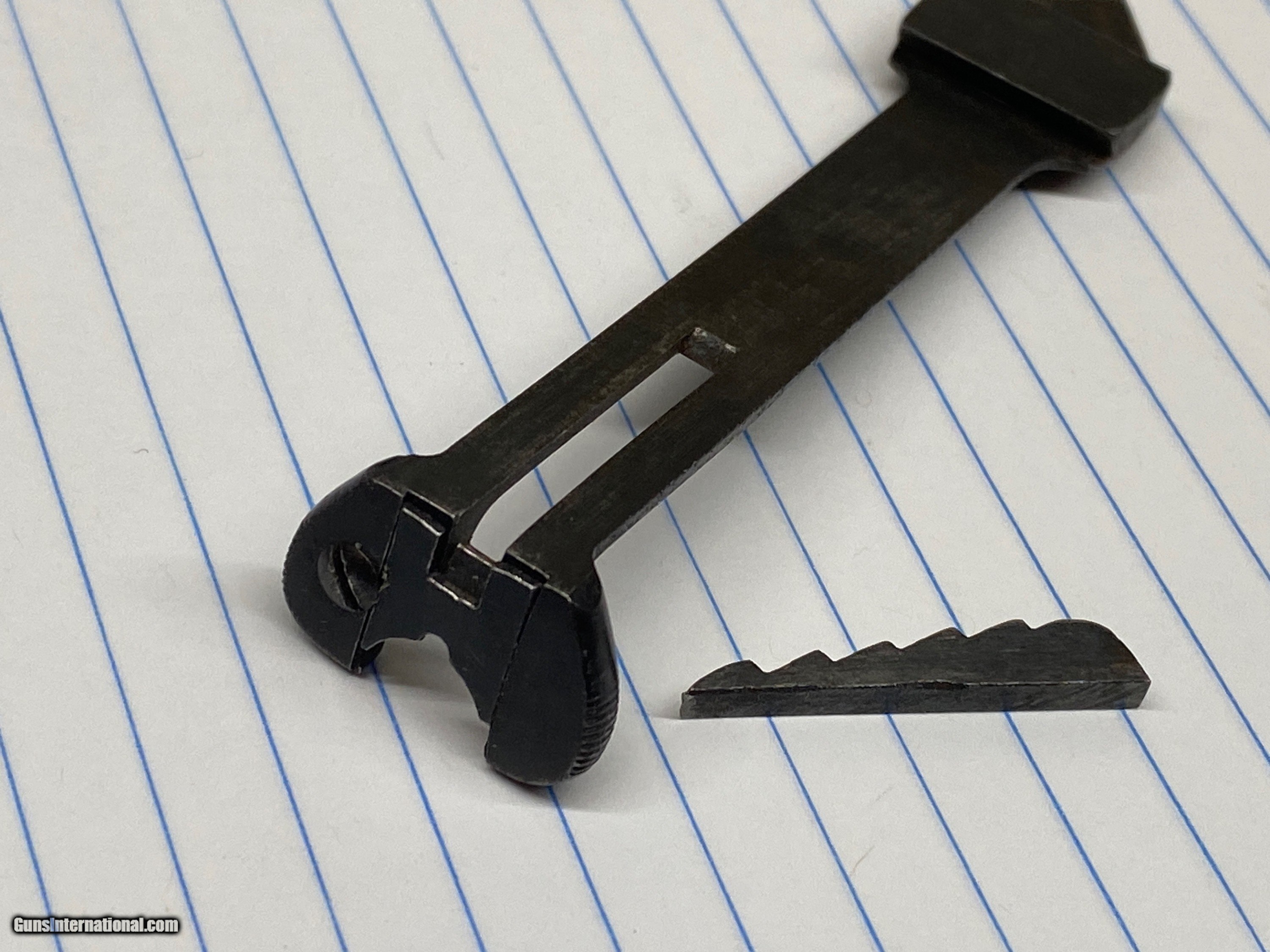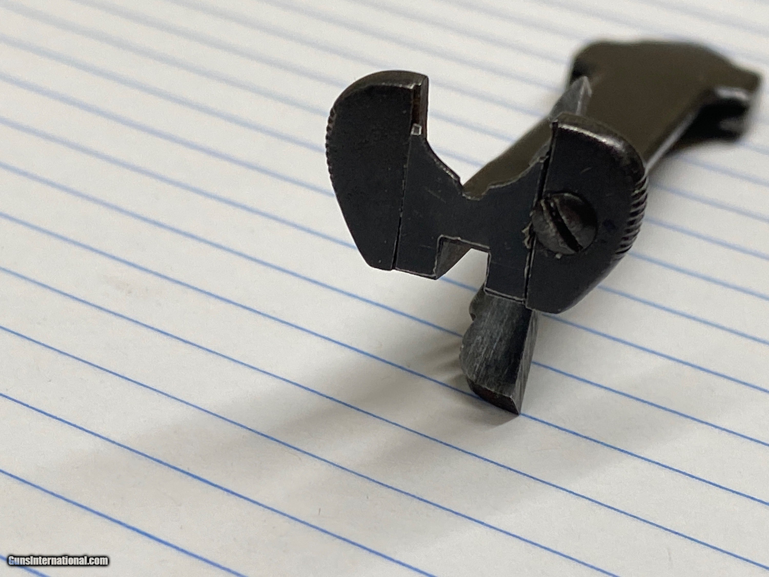Description: SOLD. Very Early antique, Pre 64 rear sight with searated edge and correct elevator. Found on pre 1900 models 1885 single shots, 1886, 1892, and early 1894s. 9.50 shipping, check or money order. SOLD |