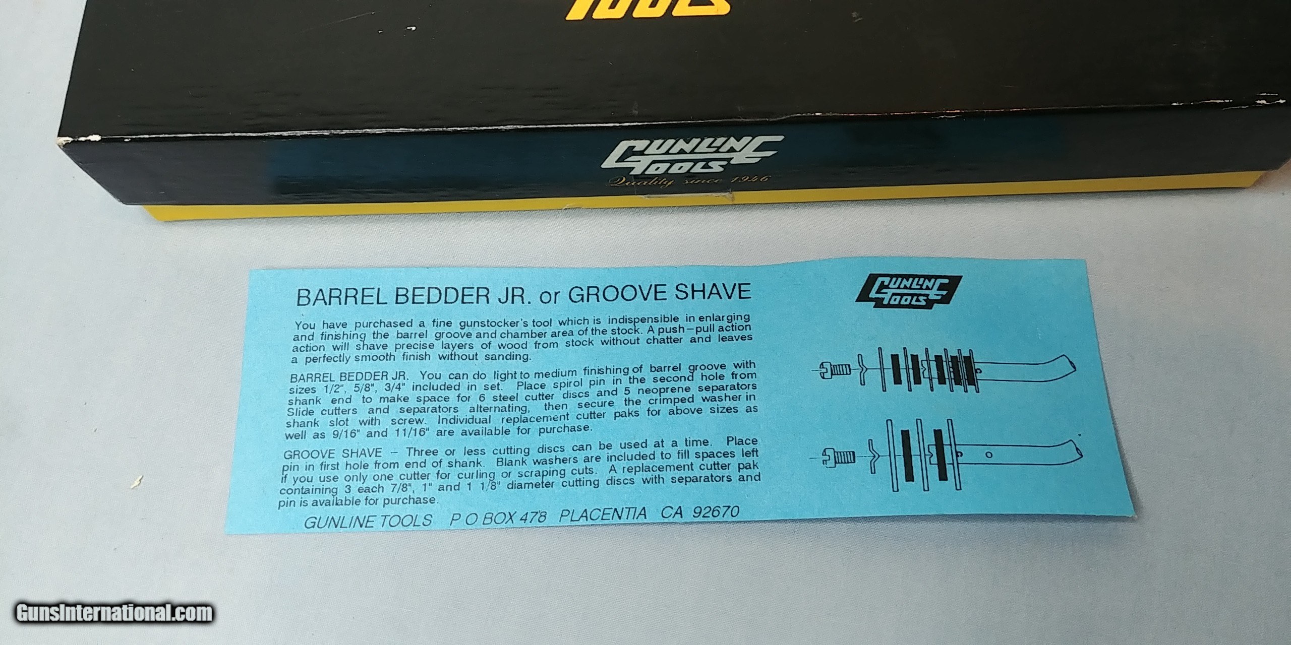 Description: Gunline Tools Barrel Bedder Jr Groove Shave with 11 extra Cutters and 9 extra washers. Tool itself looks new. I think some of the cutters have been used. SOLD |