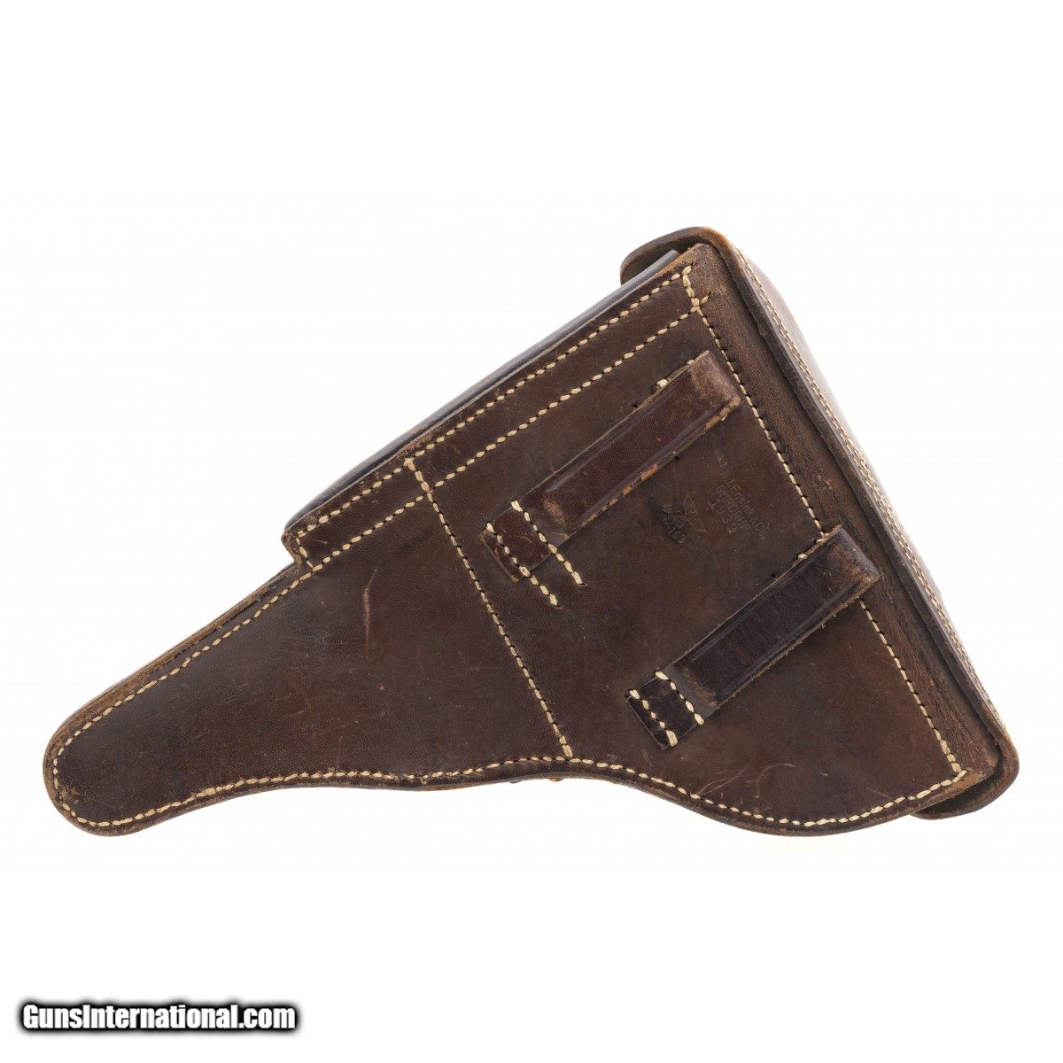 WWII Brown Luger Holster dated 1939 by G.J. Ensink&Co. WaA169. Missing steel button on tool pouch. Everythig else is intact.