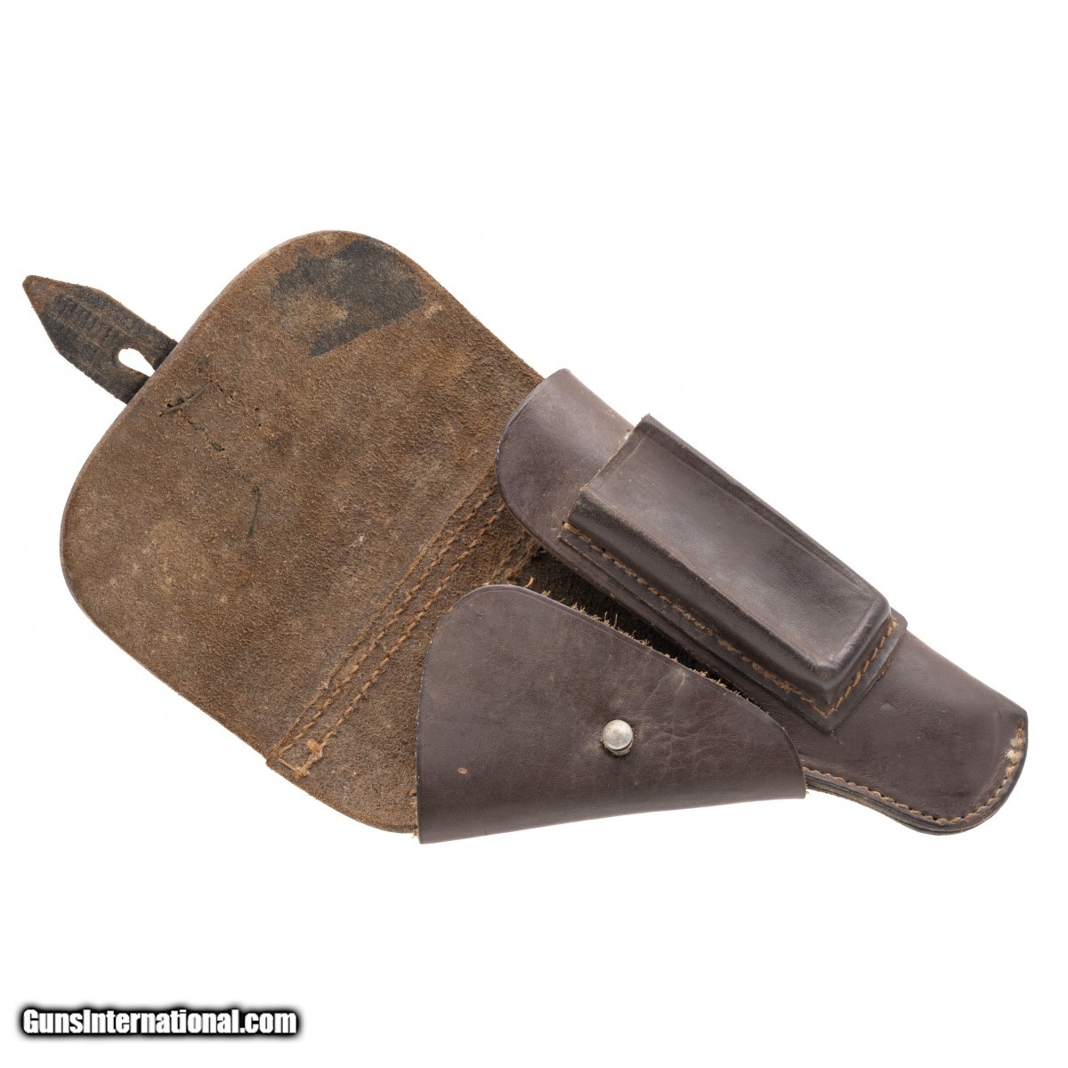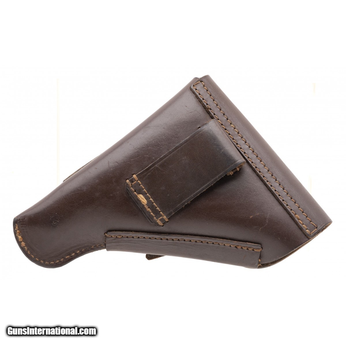 Description: " Unmarked leather flap holster for the Mauser Model 1934 pistol in used but very good condition. SOLD |