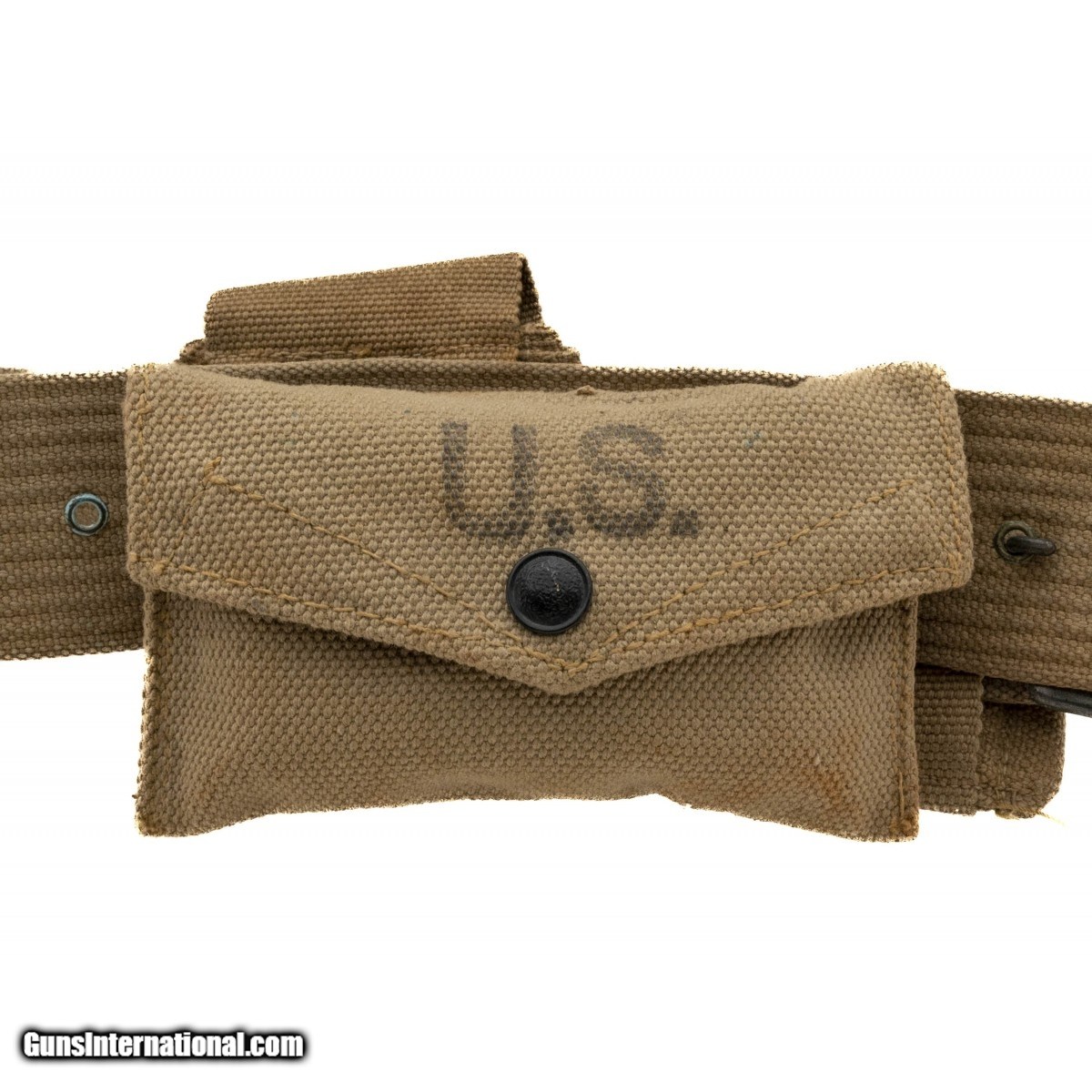 Description: " US Military Marked First Aid pouch on Pistol Belt With Two Ammo Pouches. In Good Condition. SOLD |
