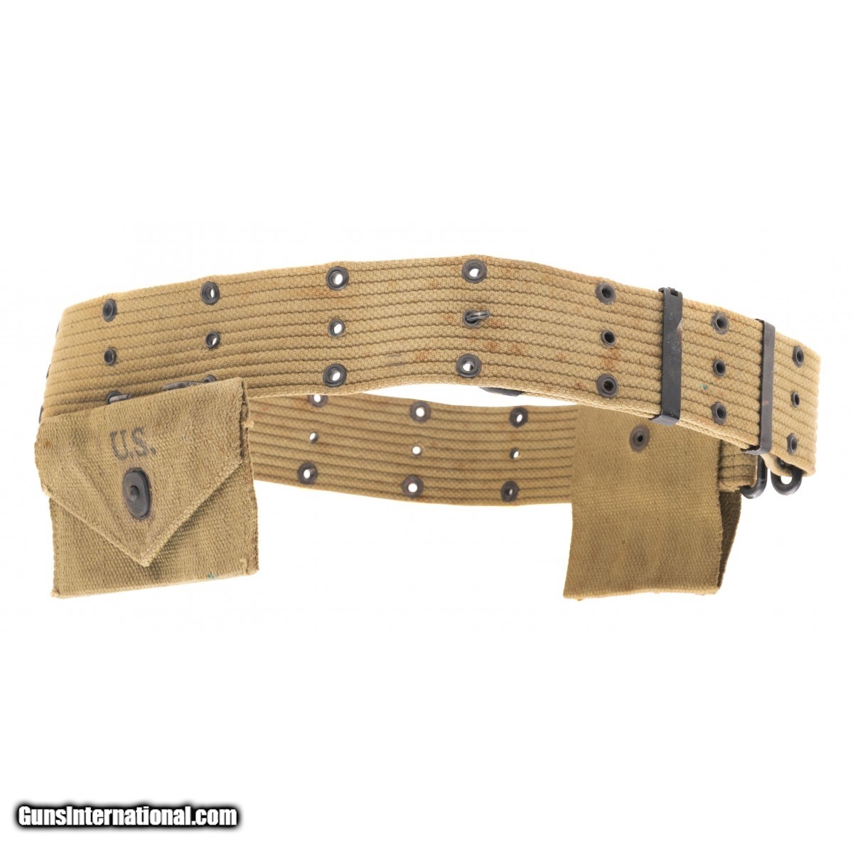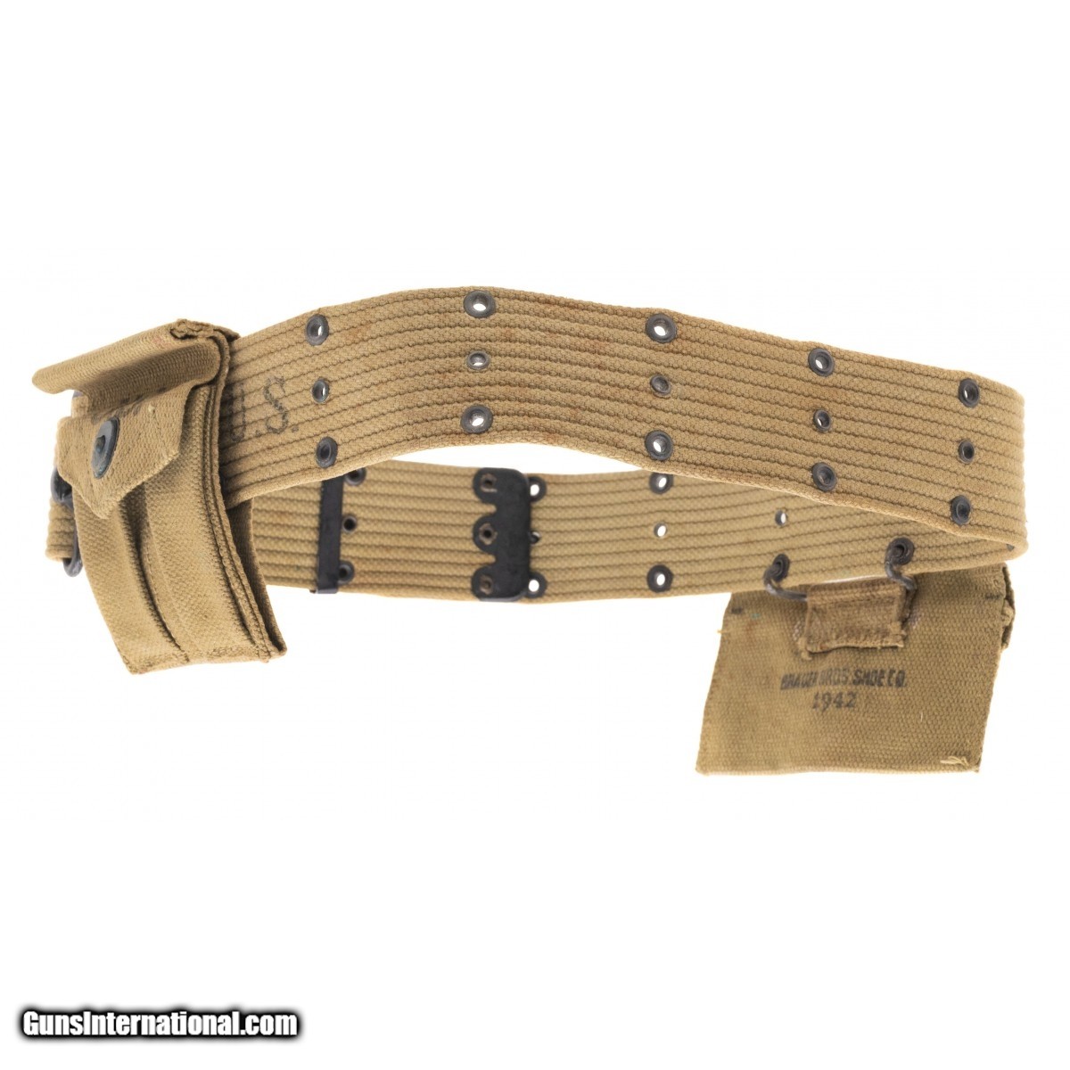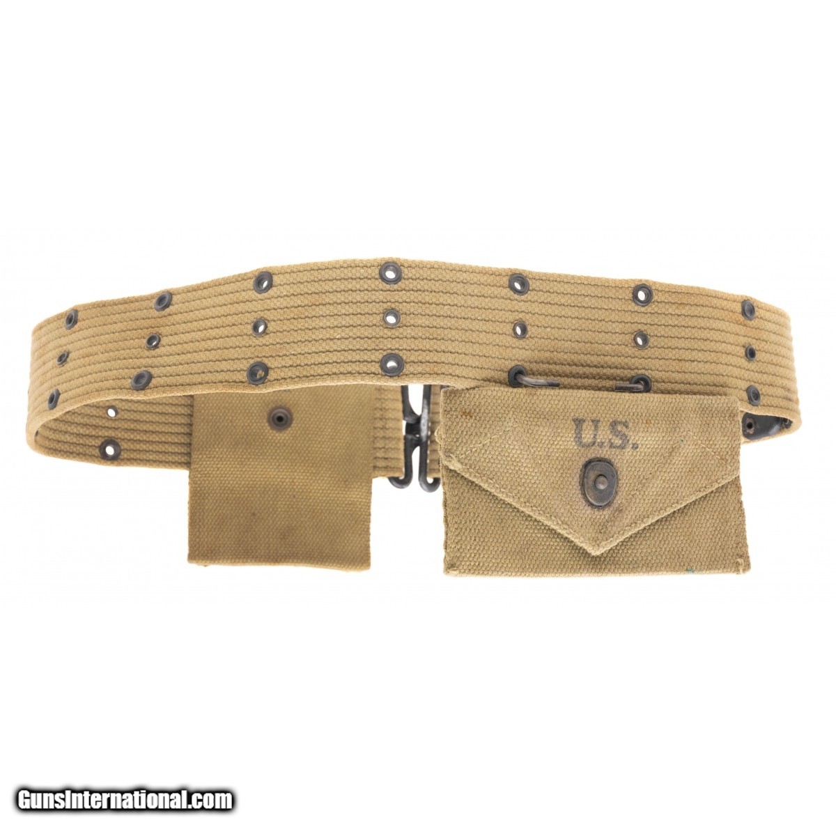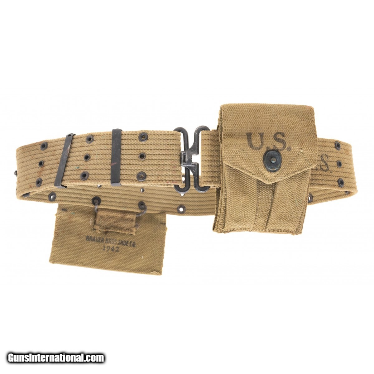 Description: " US markedpistol belt with 1911 mag pouch and 1942 dated bandage pouch. SOLD |