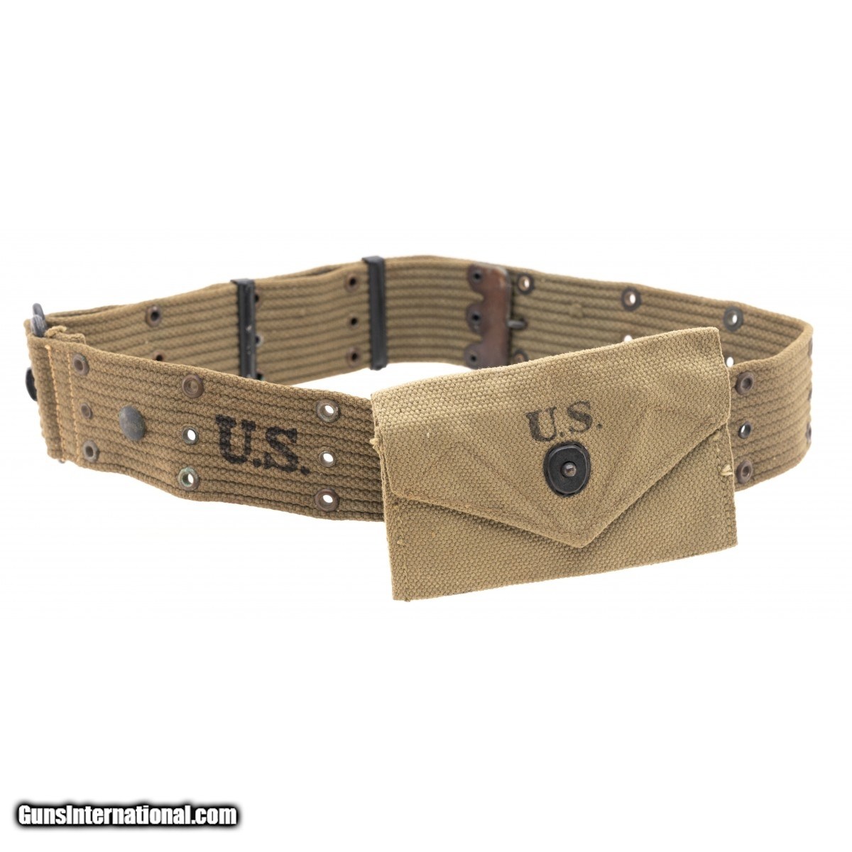 Description: " USPistol Belt dated 1945 and a First Aid pouch marked Boyt 43 in good condition. SOLD |