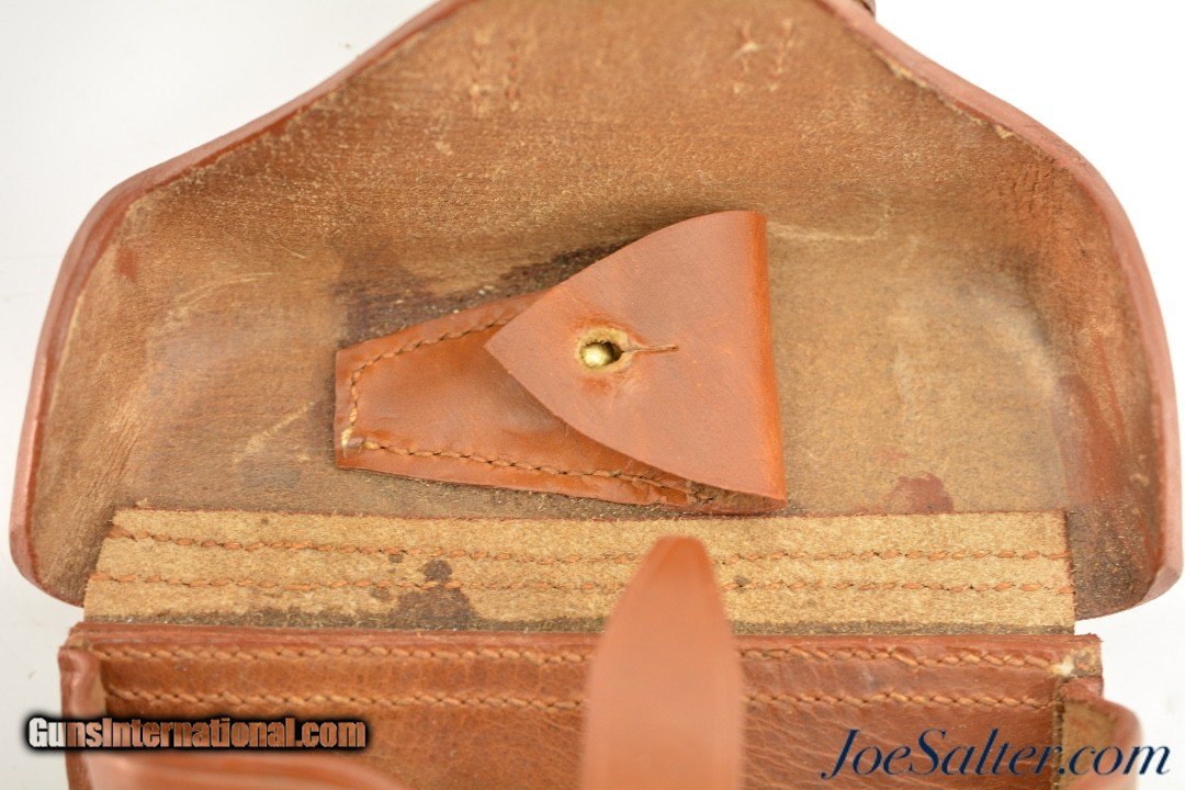 Description: This is a nice 1917 Luger leather Artillery Holster Reproduction. Heavy leather with tight stitching and brass hardware. This holster comes with a cleaning rod and P08 Luger Pistol Loading & Stripping Tool.; SOLD |