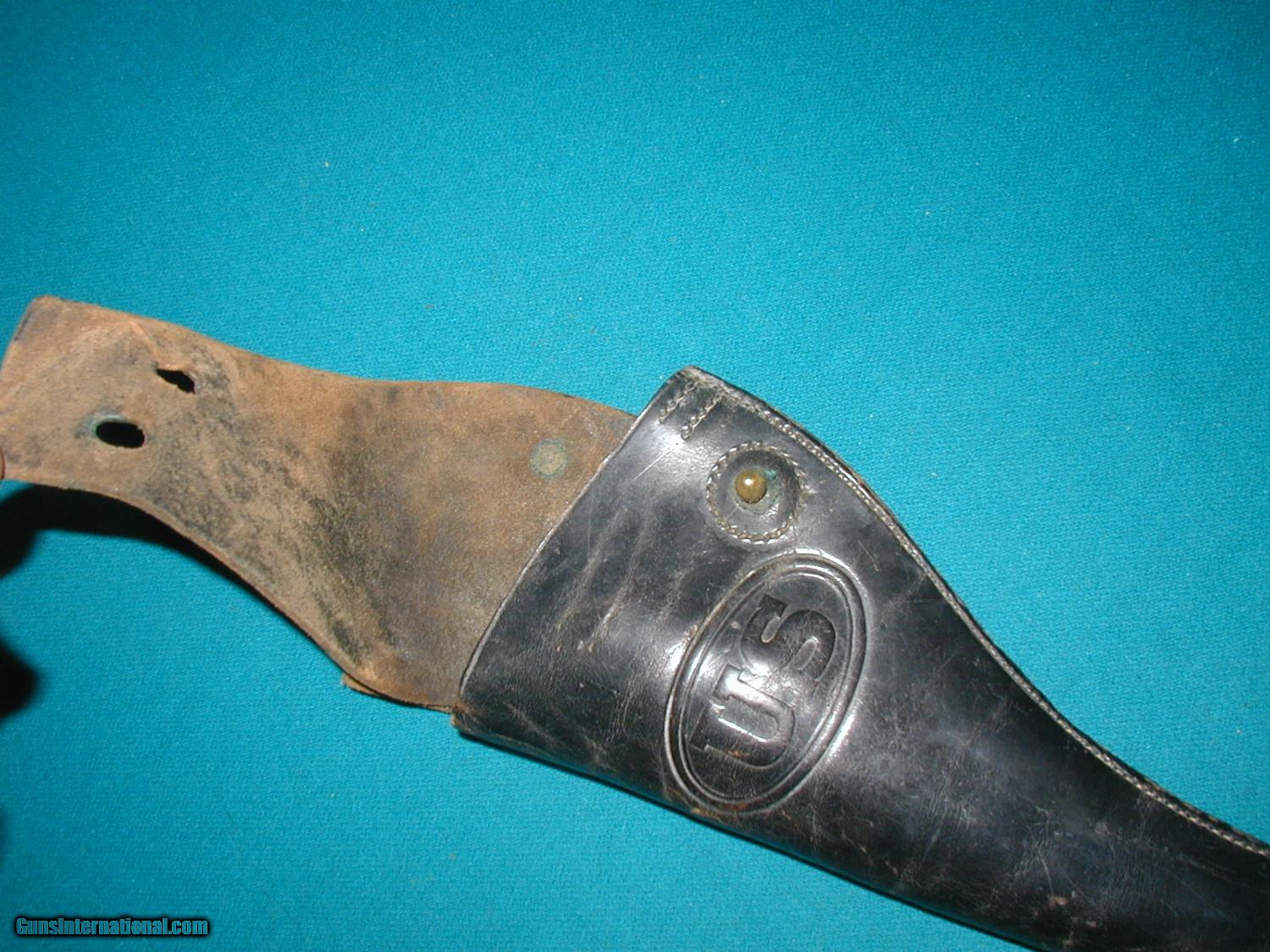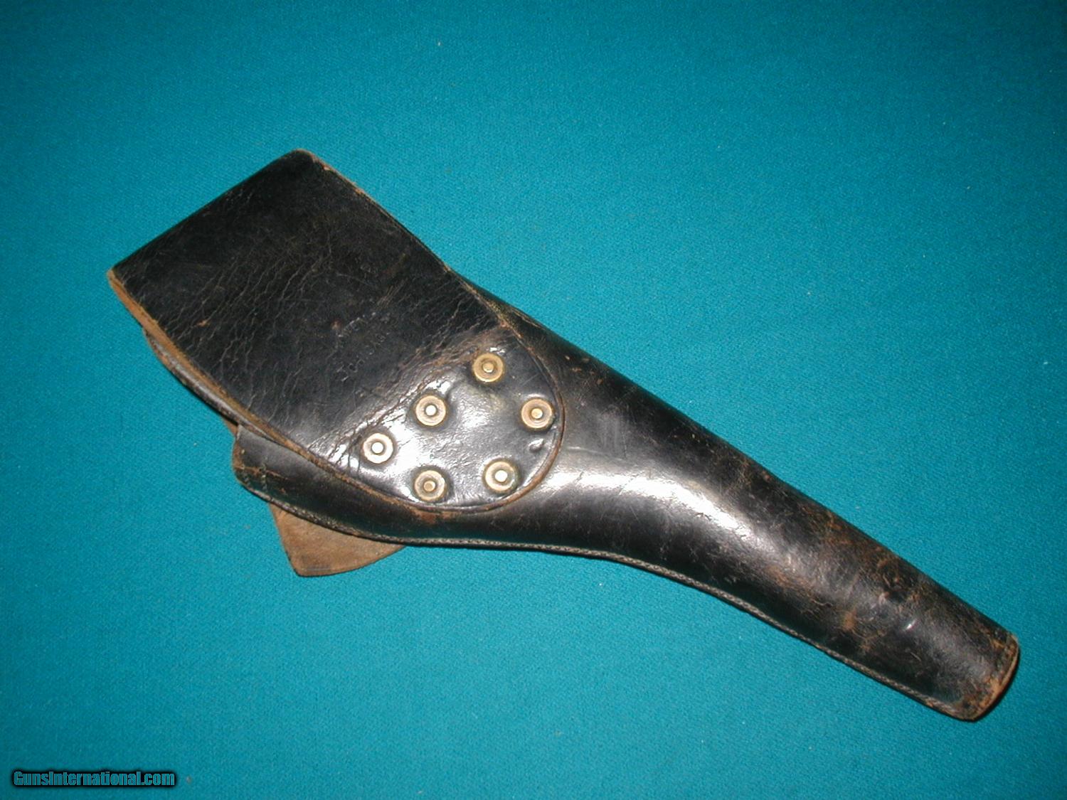Description: sold pending funds......THIS IS A NICE ORIGINAL U.S. CAVALRY HOLSTER FOR MILITARY COLT SAA'S...MODEL 1881 WITH EXCELLENT SOLID LEATHER, NO RERPAIRS ALTERATIONS,OR STAIN ETC...NICELY MARKED ON BACK WITH CHICAGO MAKER...GUN FITS PERFECTLY AS THERE WAS NO SHRINKAGE ...HARD TO FIND BETTER. SOLD |