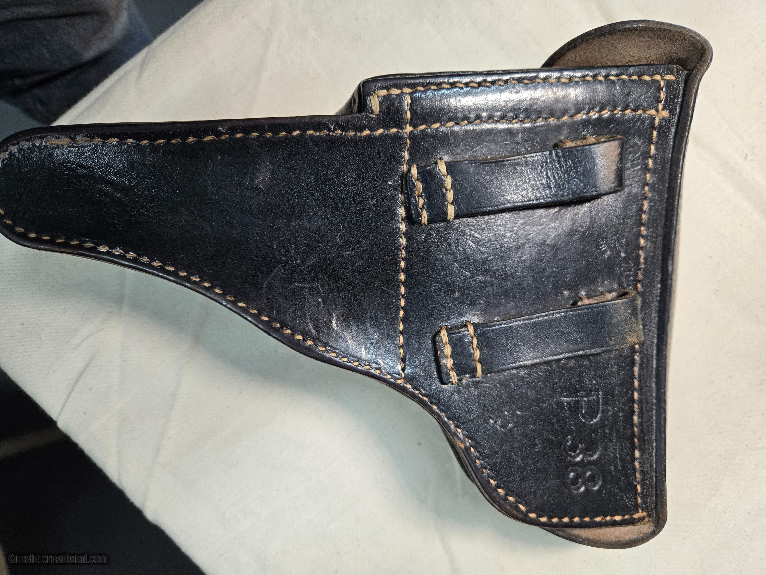 Description: Up for sale an original CWW 1942 P38 Holster with Nazi eagle proof. Overall very nice condition with some scuffing on top corners. Excellent stitching. $350.00 plus $20.00 shipping. Extra insurance $1.25 per 100. Feel free to contact me with any questions. SOLD |