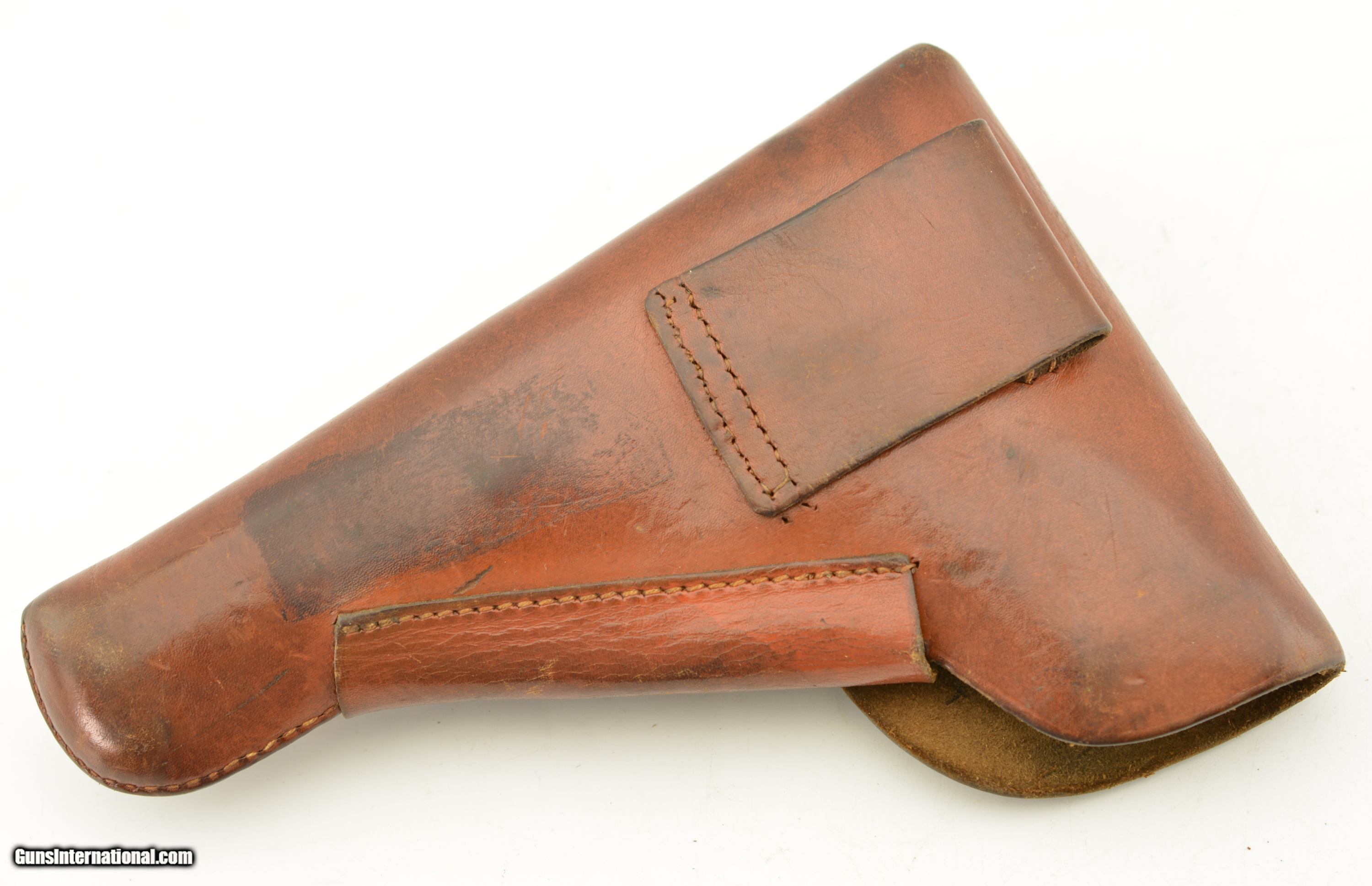 Description: This is an excellent condition WWII German Hi-Power Holster RH in Brown. The leather is supple and the stitching is tight and intact, there are obvious signs of use but no big scratches or scrapes. This example is unmarked but correct in every way. SOLD Manufacturer: German Model: Holster |