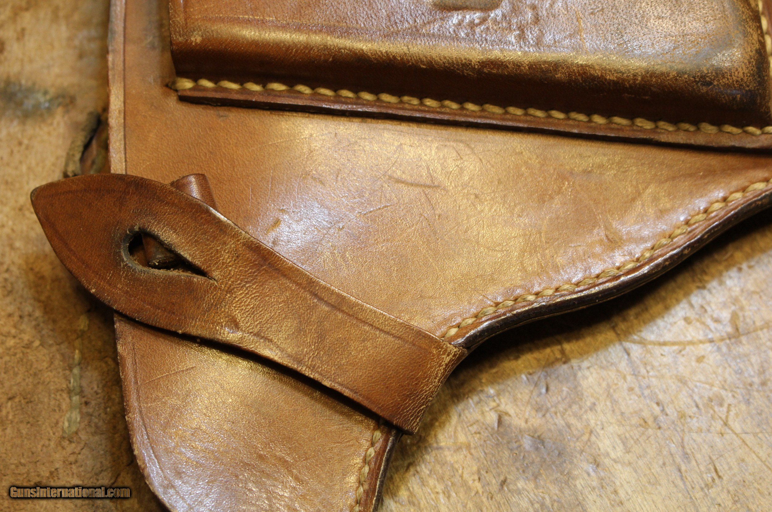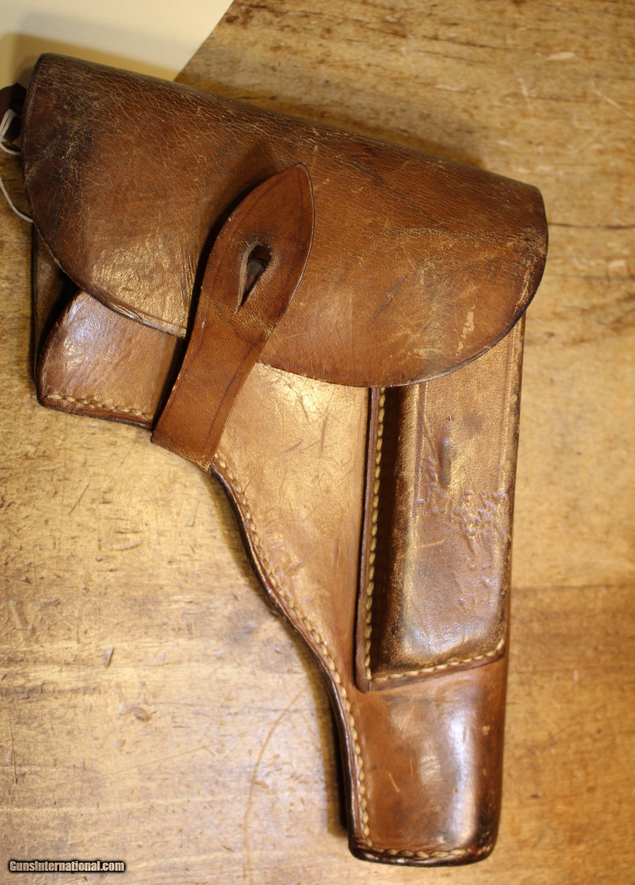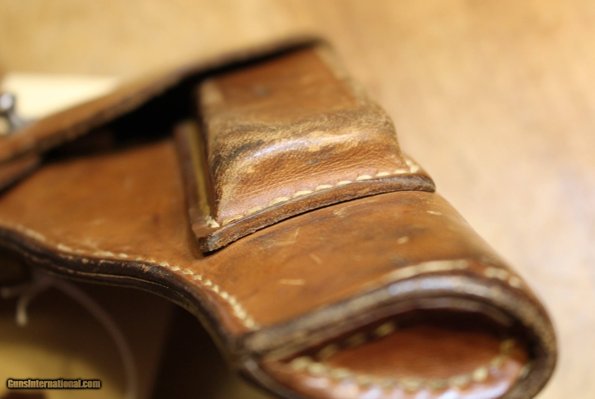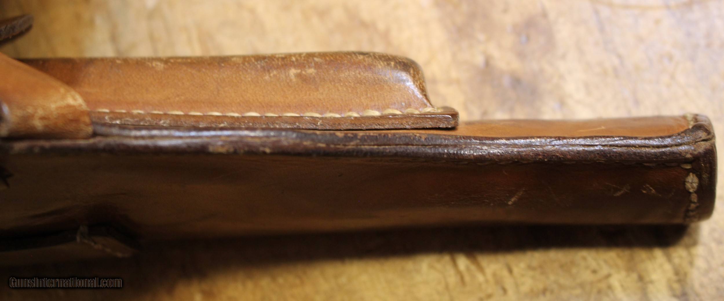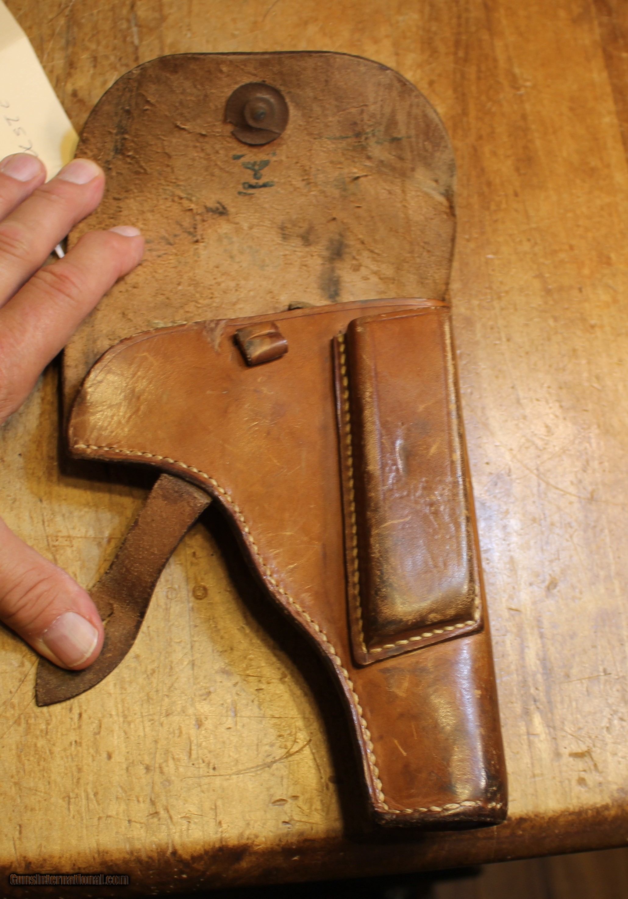 Description: German WW II Polish "Radom" Leather Holster. My military holster knowledge especially vintage is less than ZERO. We did all kinds of internet searchs and did all kinds of picture comparisons on this item on other sites. We may be way off on what you see. But what you see is exactly what you get. So look close. There are enough pictures for you to make a decision. NOTE: Look close at the pictures as the item you see is the one you get. We have many more Wartime World War 2 (WWII) militaria and will list it as time permits. This came from the estate of one of 5 (five) FFL/SOT Gun Smith, Gun Store. The particular estate was an avid collector of Garands and components. This is from the collection or was inventory. There will be countless other listings from this inventory over the next 4 to 5 years. We are selling for the each of the estate/stores. This is NOT a liquidation. There are no lists and will be no lists. Please check our other listings for more items Please also check our Webpage and or Facebook page at P&T Partners Shipping is $12.50 for Priority Mail and this is with a signature at your end. Personal checks accepted, we do not hold until clear for parts. Postal Money orders also accepted, Credit card by PHONE only and there is 3.5% for use of the credit card. SOLD |