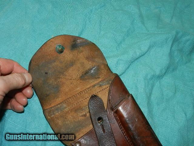 Description: A clean but well used German WWII military holster for a MAUSER Hsc, Walther PP, CZ 27, and other .This fine holster seems to have wear on the inside of the flap from a pistol hammer like a Walther PP. This cowhide is supple and stitching is complete. We don’t have asite .I prefer money orders or a check. Item ships when funds come in. If you can only pay with a card let me know. I’m sorry I don’t list my phone number, did that for 30 days, never again.. I can’t talk on the phone all day…who will ship the guns? I’m just one person, and it’s very busy here! I do a brisk volume! I hope you like my wide selection of unusual guns, knives and gun parts. Shipping price determined by zip code. I try to keep the prices affordable, which means I make less money than most dealers. You won’t get altitude sickness with my prices! I consistently have the best selection of older guns If you attempt to buy, you must still contact us for details, buying doesn't end the sale, it just sends an email telling us you want to buy this gun. A phone call won’t secure a sale! Not home many times, the first buyer by email buys the gun !Thissite does not close down a sale when you do a BUY! I can get six buy it nows in an hour, first buyer to email gets the guns, others are in second place! Best to send another email . Sometimes not home to get calls. Some guns are required shipment to a gun dealer near you for a transfer to you when it arrives. With the widest selection of older guns at great prices, We don’t have a store, and sell on the internet only. SOLD |