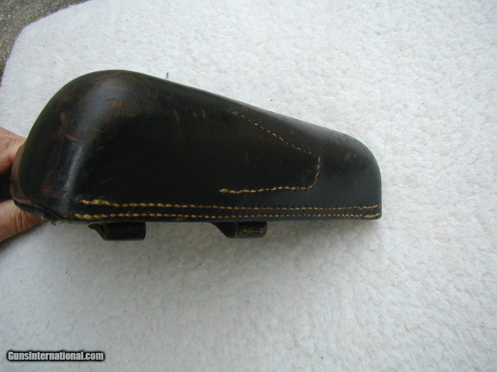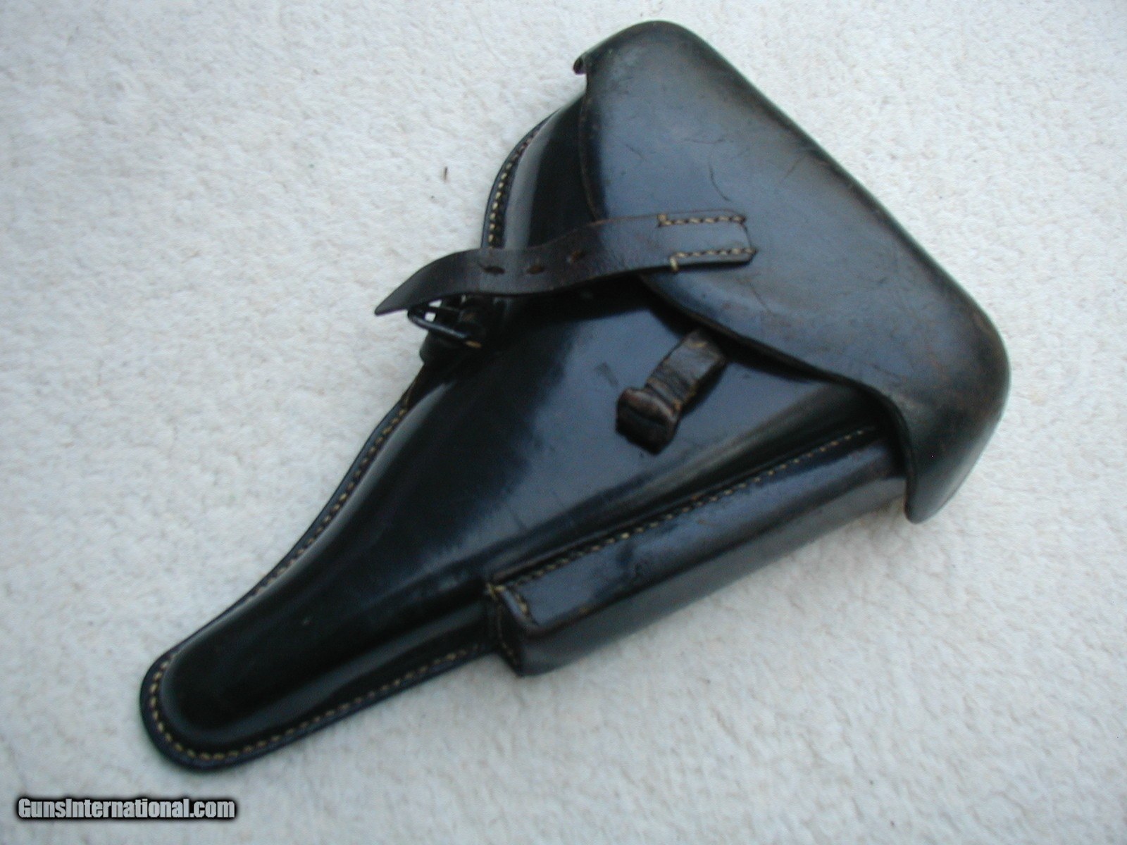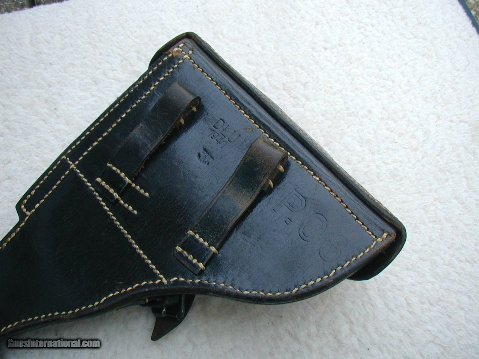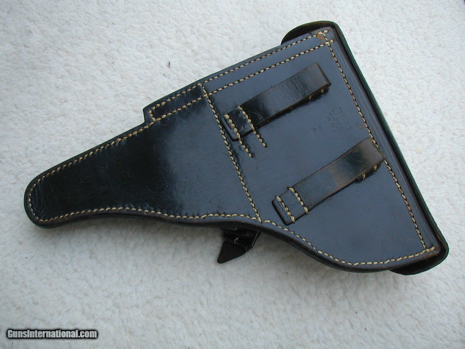 Description: THIS IS A REAL NICE HIGH CONDITION 1941 LUGER HOLSTER...ONLY THE FLAP SHOWS ANY REAL LIGHT HANDLING , AND THAT STILL IS IN EXCXELLENT CONDITION...THE BODY OF THE HOLSTER IS SOLID, SHINY AND WELL MARKED...INSIDE LOOKS NEAR NEW....NEVER POLSIHED OR TOUCHED UP.... SOLD |