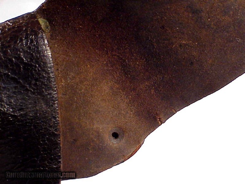 Description: Col. P.V. Hagner Modified Holster of 1875, pattern swivel holster for Colt Single Action .45 Cal. The holster has a U.S. marking on the flap, crazing to leather, all stitching intact. See U.S. MILITARY HOLSTERS By Ed Scott Meadows - Page 98. SOLD Handgun Caliber: .45 Colt |