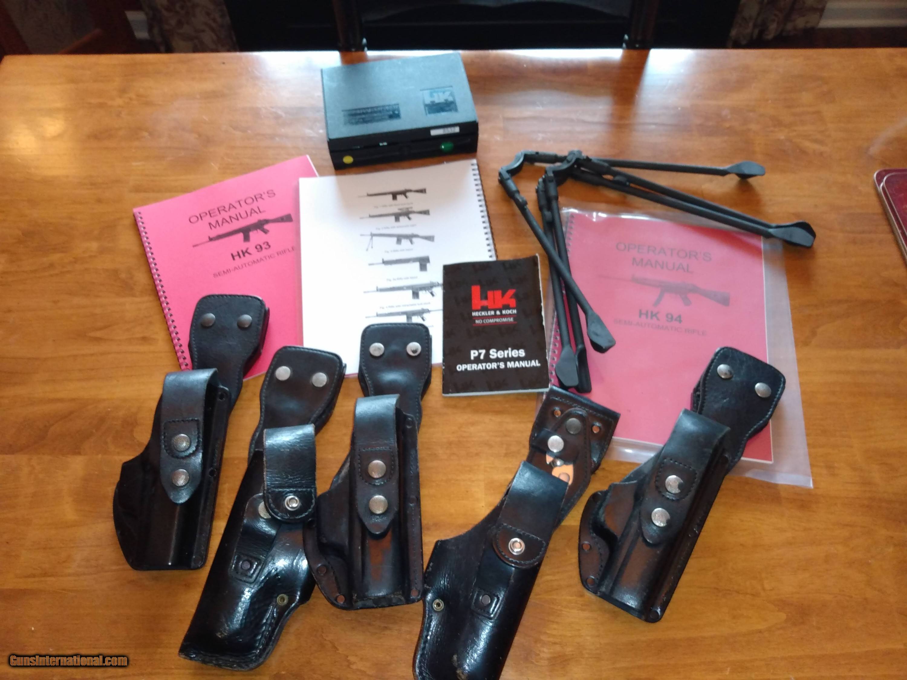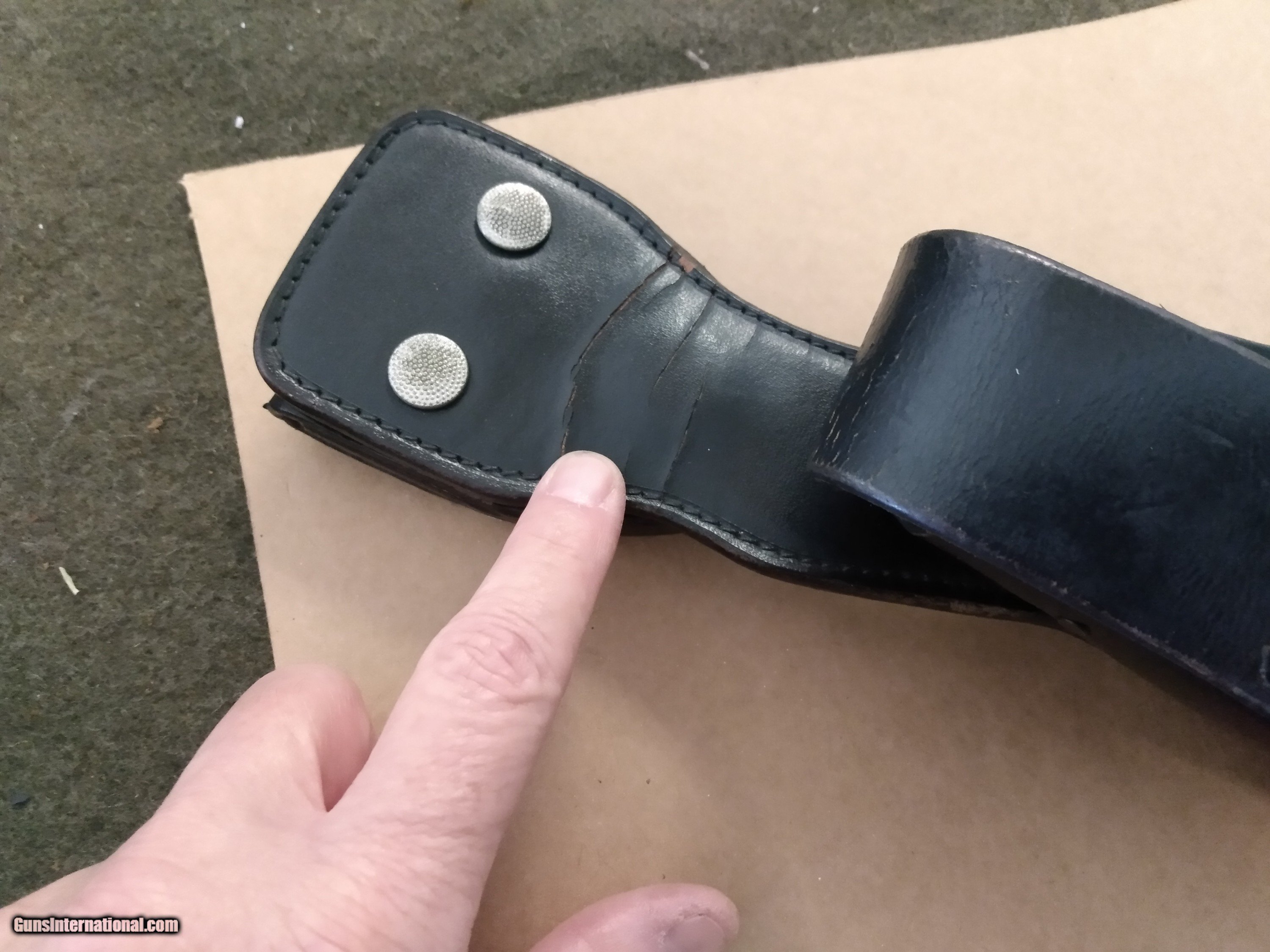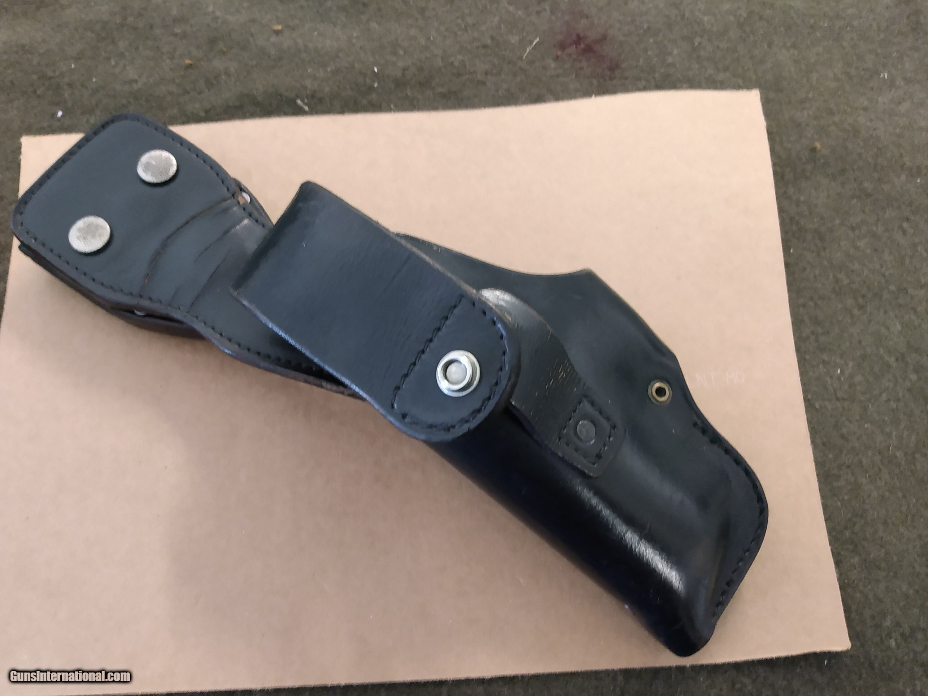 Description: MY LAST ONE!!! Impossible to find Left-handed German Police HK P7 holster made mid to late 1980's. Can fit other pistols. See pics Some small cracks in the leather.. see pics carefully before This is perhaps one of the ONLY Police issued (GERMAN) holsters that will fit ALL of the P7 9mm series of holsters. All the other ones (I have seen) are only for the European style PSP/P7 with the bottom mag release. When the US P7/M8 was released, it was quite well received and they were hard to keep in stock. There are very slight differences between the original P7 and the US P7/M8. - The main difference is the trigger guard is a bit taller than the German P7. In other words, if you have a M8 and try to fit it into a German P7 holster.. It will not fit.. because of the guard height (only a few millimeters) but it is enough to not fit. The holster up for today has a large enough space to fit the M8 or even the M13. A HK P7/M10 40 caliber will not fit.. it is too big. This will fit other smaller 9mm or 380 pistols. Take a good look at the diagram. If yours is bigger on any angle.. IT WILL NOT FIT... so pls dont bid. Here is a German Police officer (HOTTIE) wearing a similar holster! Price: $75.00 Contact Seller |
