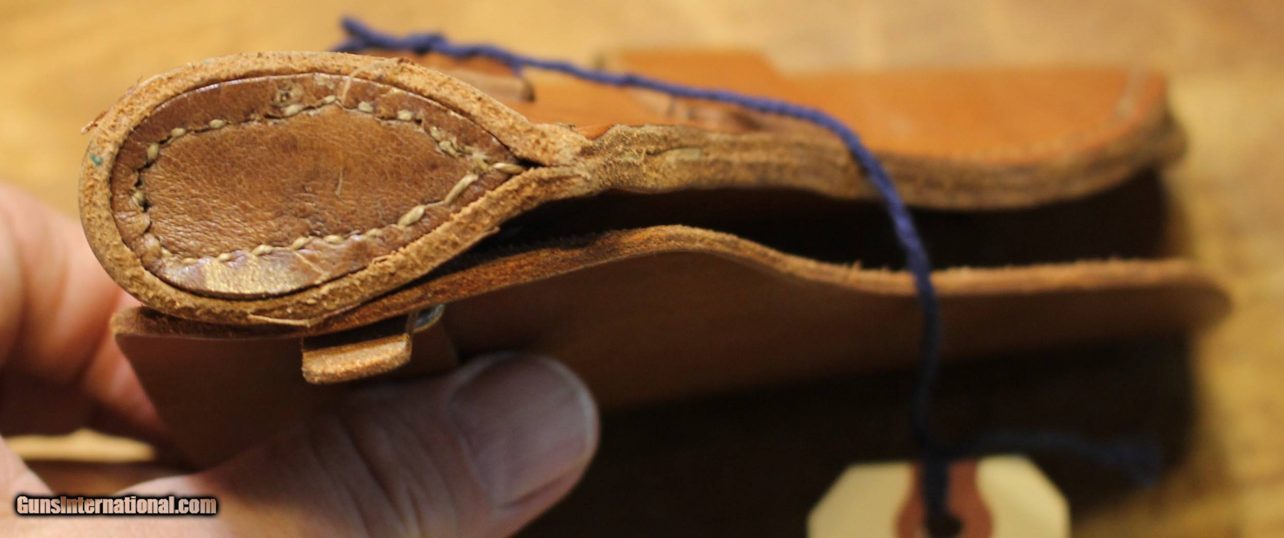 Description: MAB model D French Holster (ORIGINAL) with a 1935-S Magazine. This is an excellent condition holster for a French MAB model D automatic pistol. Made of beautiful blond leather without any cracking or crazing. All stitching is tight This is a WWII Era French MAB Model D Leather Holster. The MAB model D was first introduced in the mid 1930's and was widely by French the military, police and security agencies. This holster has an unusual letter "S" ink stamp under the flap. The roundal property stamp maybe wartime or a post war (Cold War) reissued mark. The magazine looks completely unused at all. From what I can see on other internet searches it matches as close as we can. My military holster knowledge especially vintage is less than ZERO. We did all kinds of internet searchs and did all kinds of picture comparisons on this item on other sites. We may be way off on what you see. But what you see is exactly what you get. So look close. There are enough pictures for you to make a decision. NOTE: Look close at the pictures as the item you see is the one you get. We have many more Wartime World War 2 (WWII) militaria and will list it as time permits. This came from the estate of one of 5 (five) FFL/SOT Gun Smith, Gun Store. The particular estate was an avid collector of Garands and components. This is from the collection or was inventory. There will be countless other listings from this inventory over the next 4 to 5 years. We are selling for the each of the estate/stores. This is NOT a liquidation. There are no lists and will be no lists. Please check our other listings for more items Please also check our Webpage and or Facebook page at P&T Partners Shipping is $12.50 for Priority Mail and this is with a signature at your end. Personal checks accepted, we do not hold until clear for parts. Postal Money orders also accepted, Credit card by PHONE only and there is 3.5% for use of the credit card. SOLD |