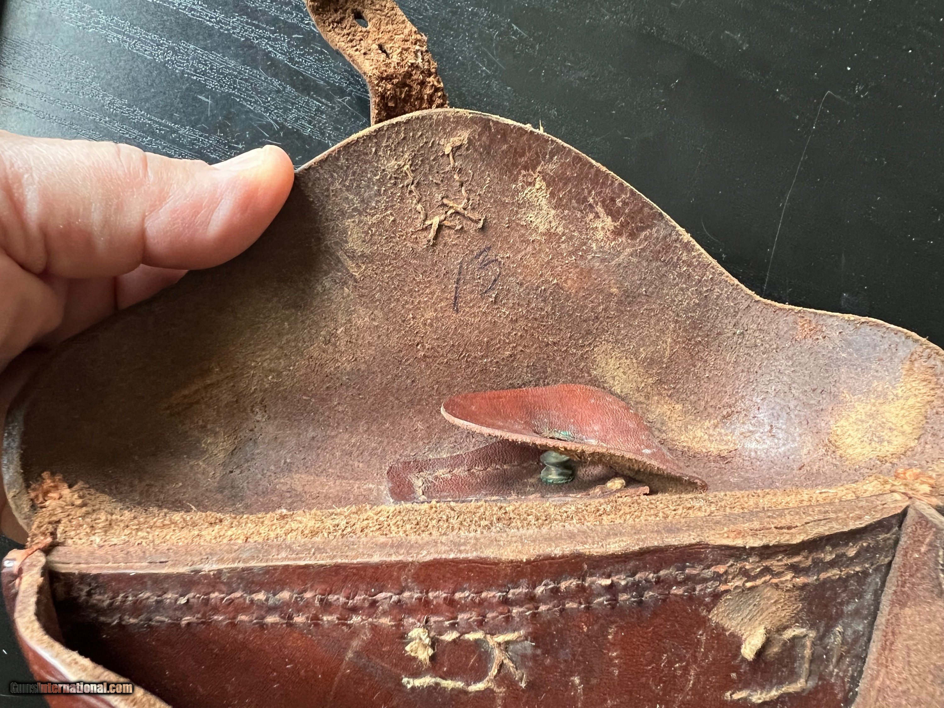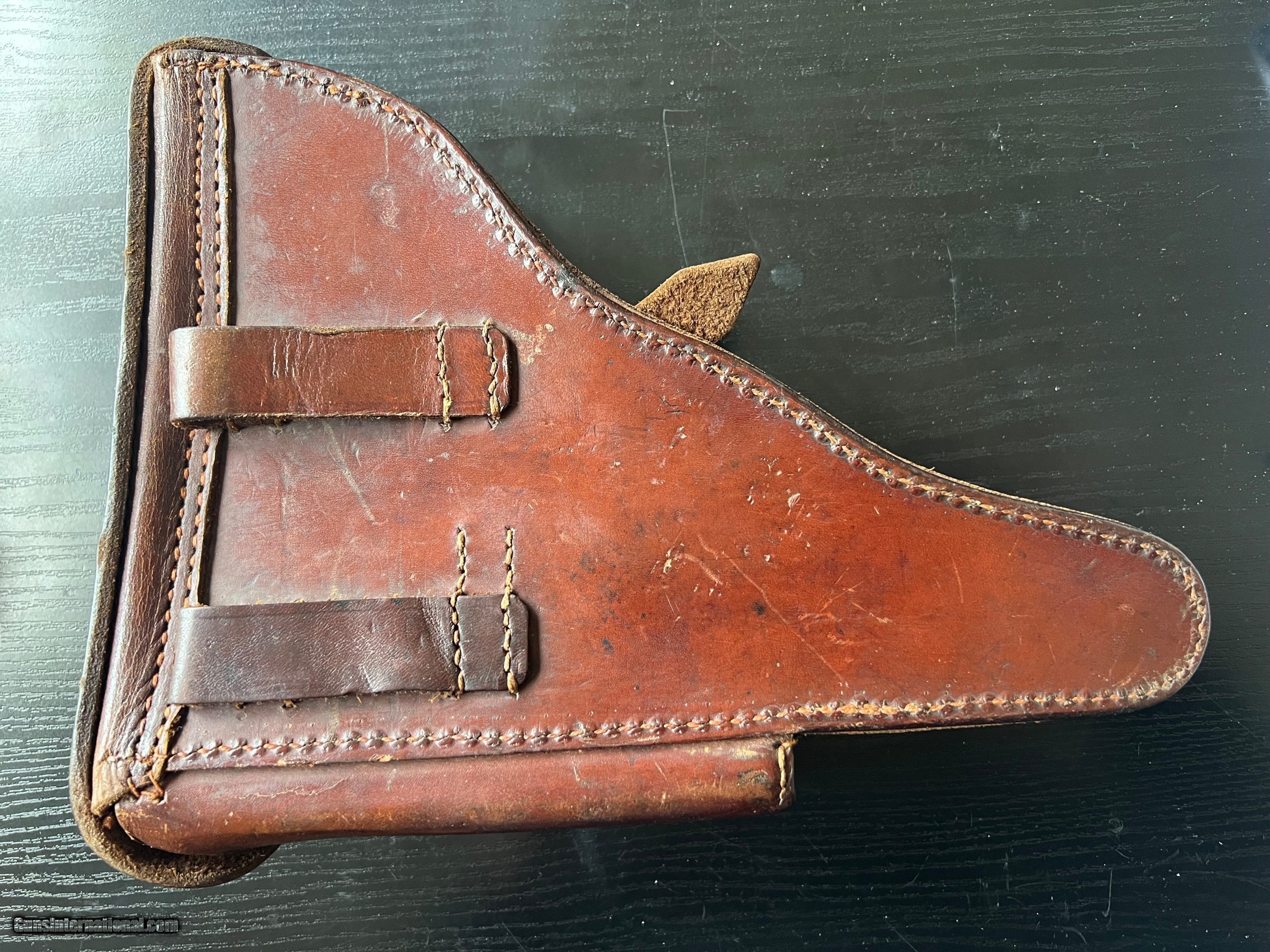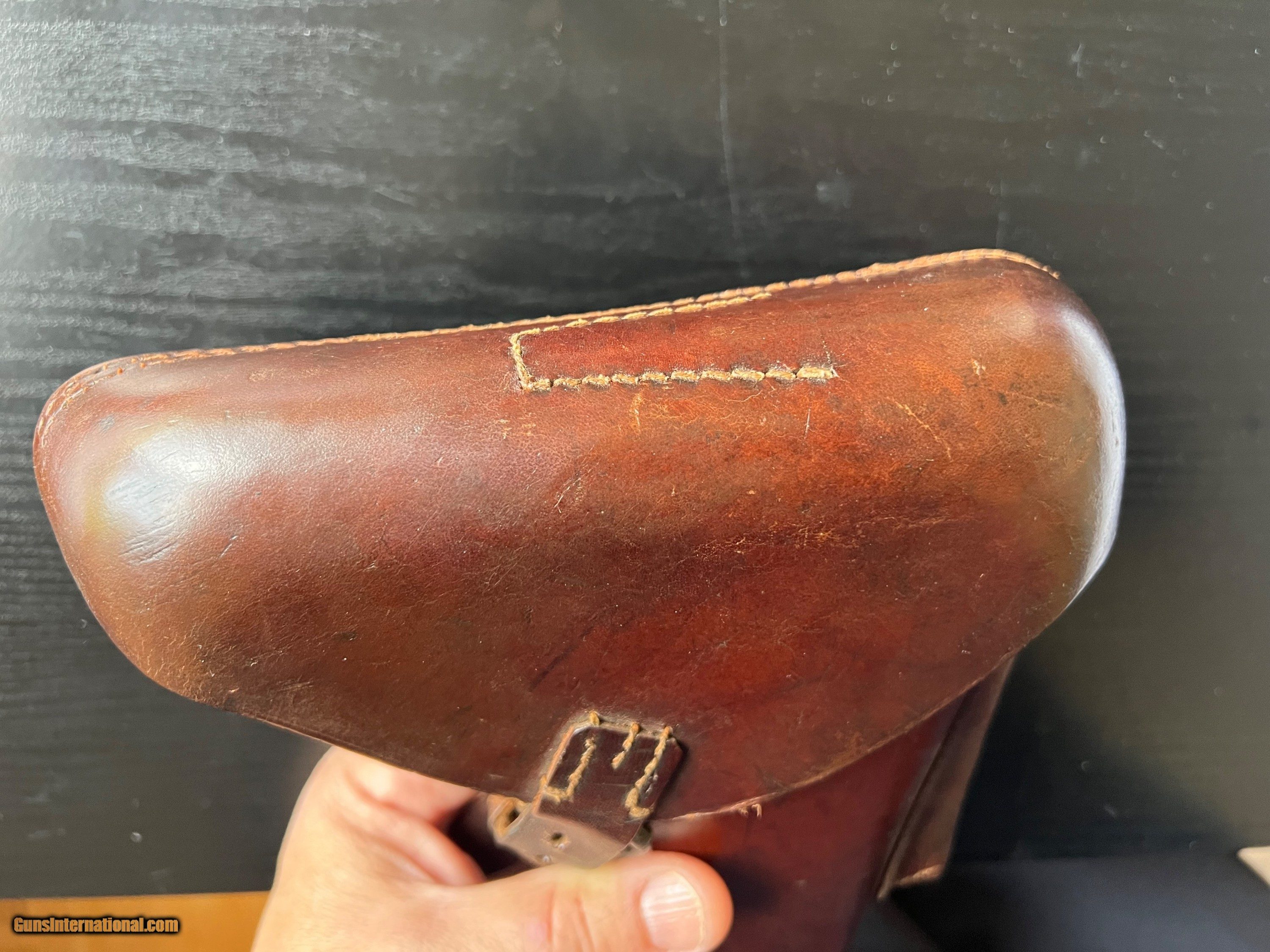 Description: On hold.. This is a fantastic example of an early pre-WWI Luger holster with beautiful brown leather, perfect stitching and no defects. The holster is completely unmarked and was either produced before 1910 or was a private purchase by a German imperial officer. Great holster for an early pre-WWI or WWI Luger. 3-day inspection. $25 shipping in Conus. SOLD |
