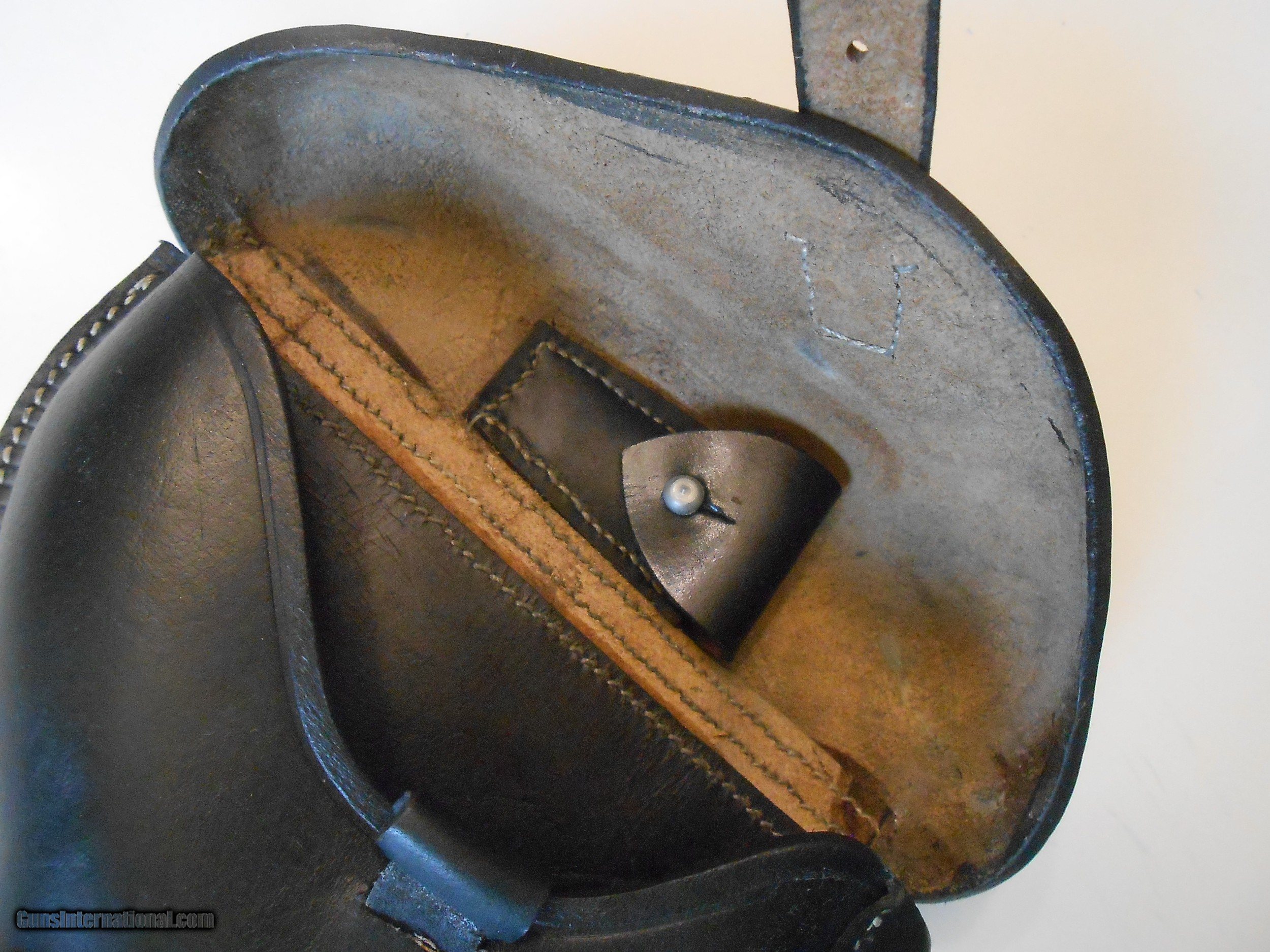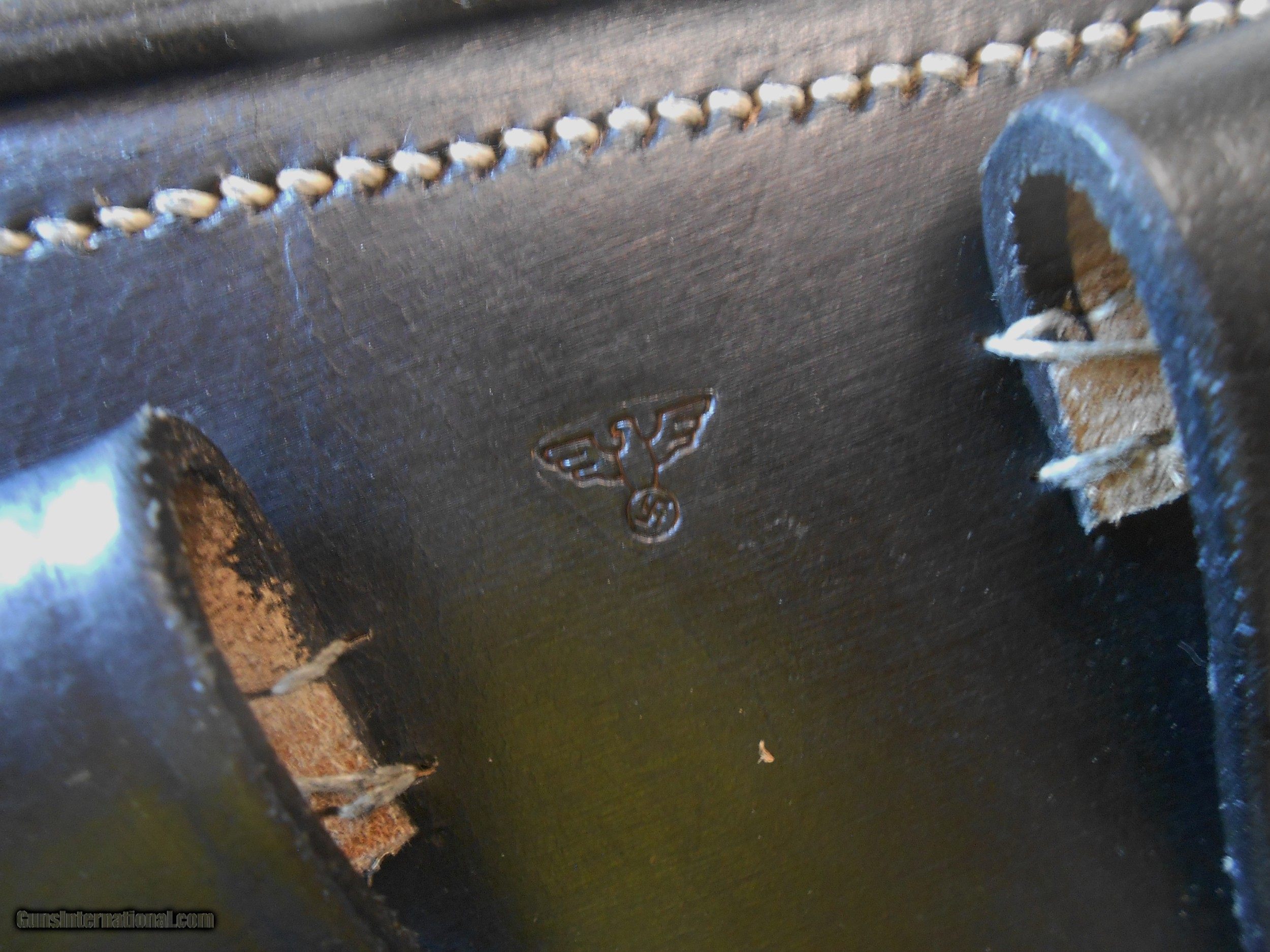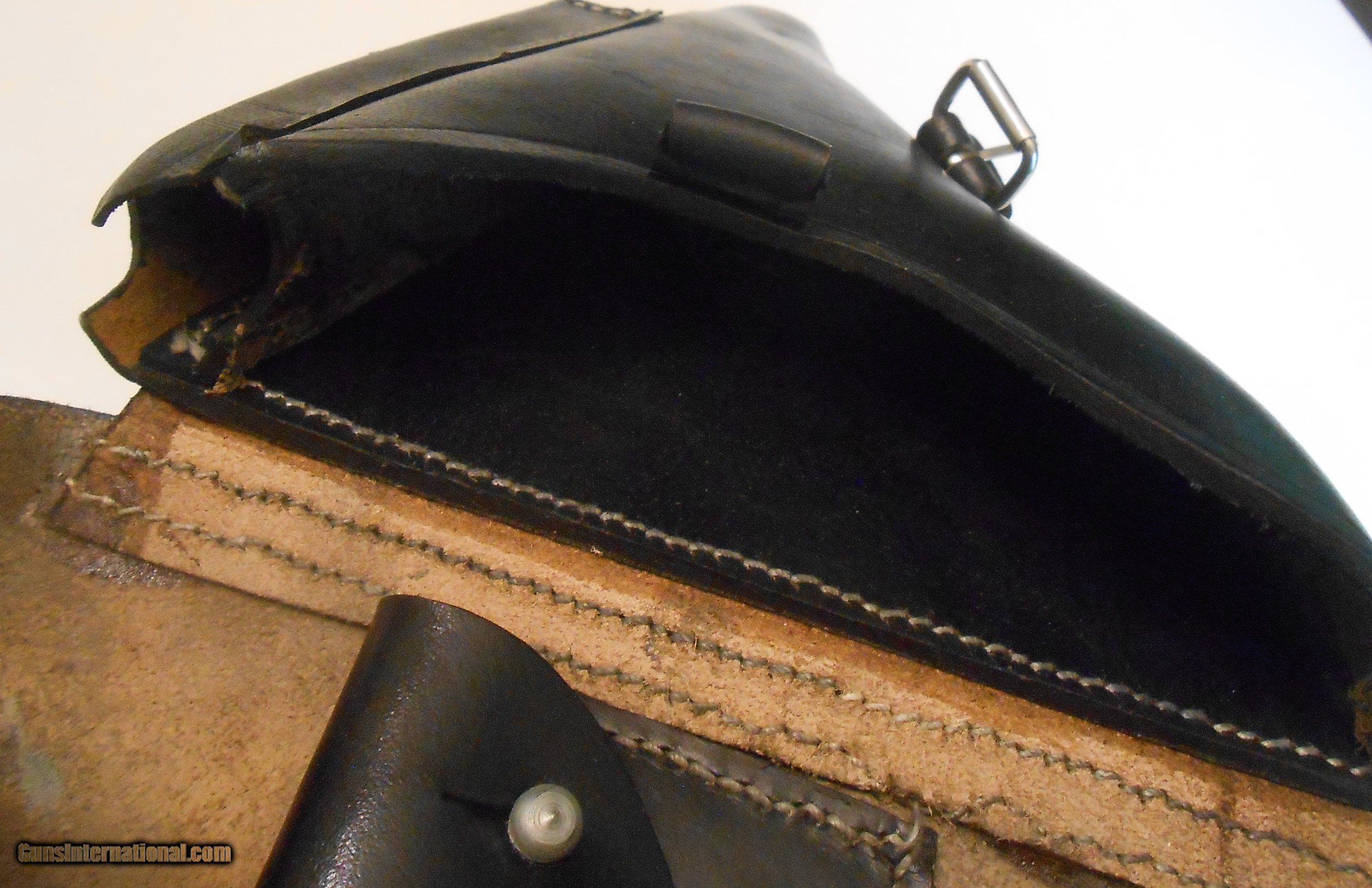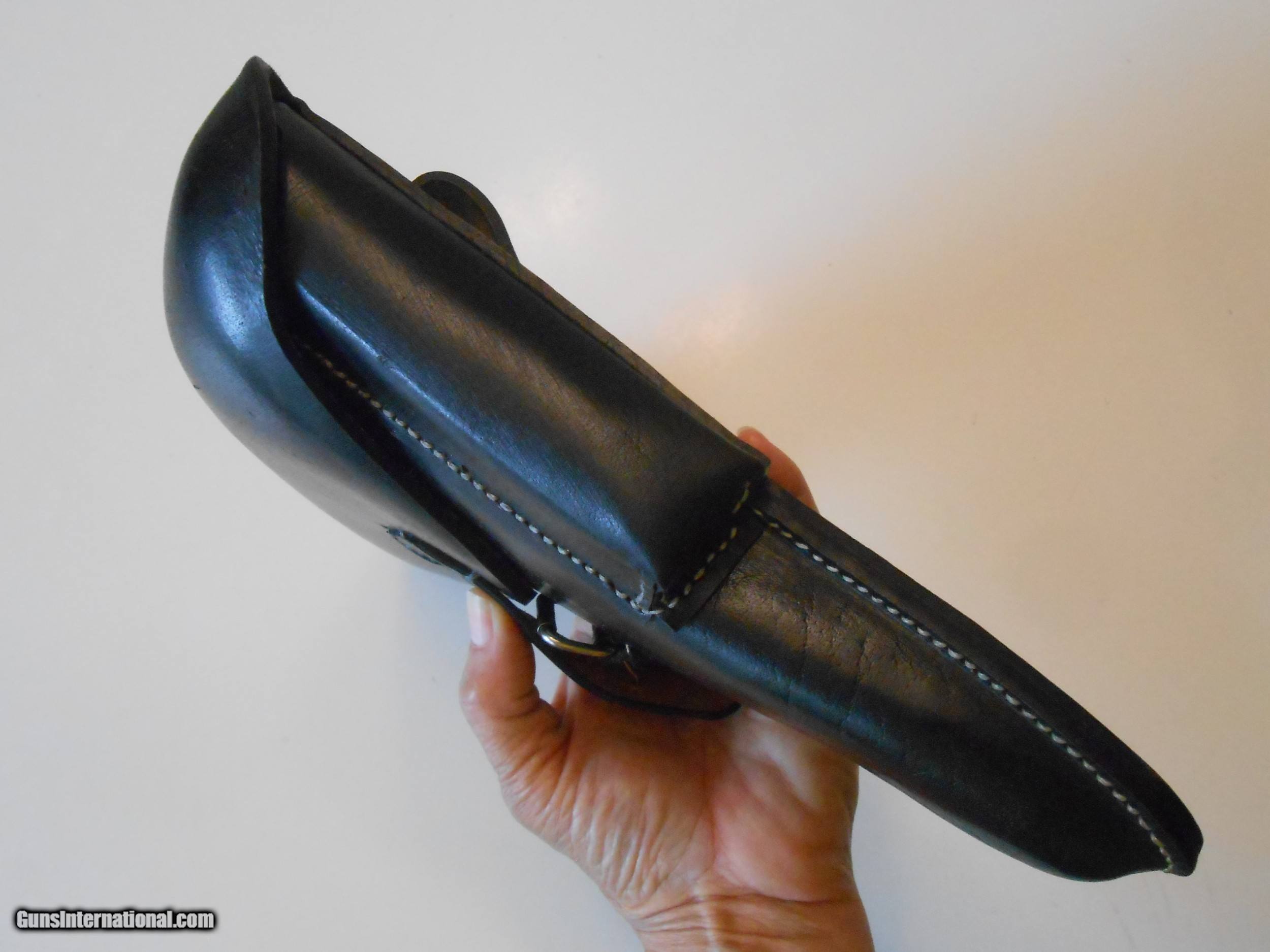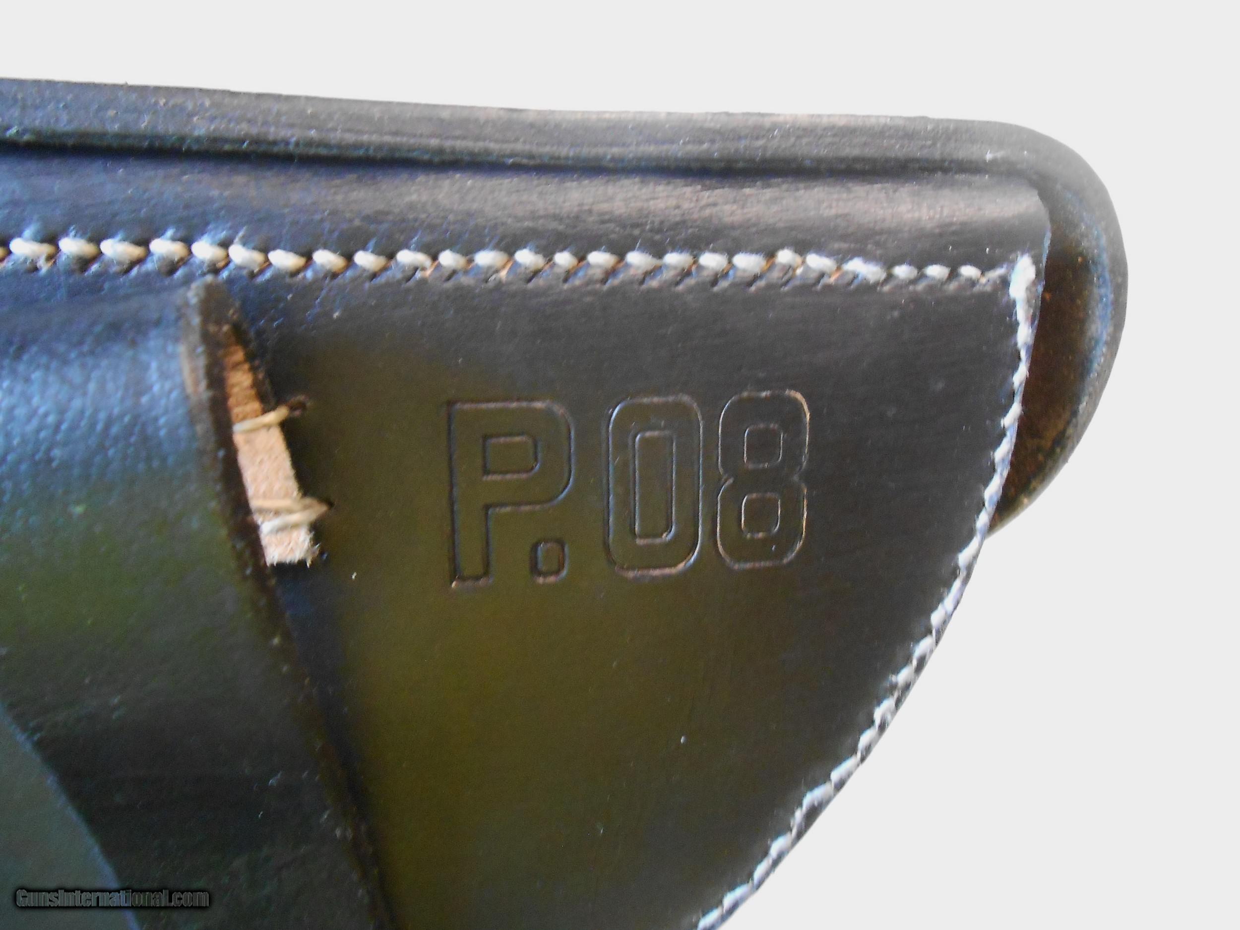 Description: THIS IS A REPRODUTION HOLSTER Thick, stiff, black leather with contrasting white stitching No scratches or scrapes Has one small dent on front (see last photo) All connections sturdy and tight Purchased second-hand, but appears to be unused. Marked on back with large P.08 and Nazi logo No maker's name For sale only in the USA Price includes shipping via USPS Priority Mail I can only accept PayPal After contact, I will email a PayPal invoice I will ship same day as payment I will email a picture of you package and your tracking number Thank you! SOLD |