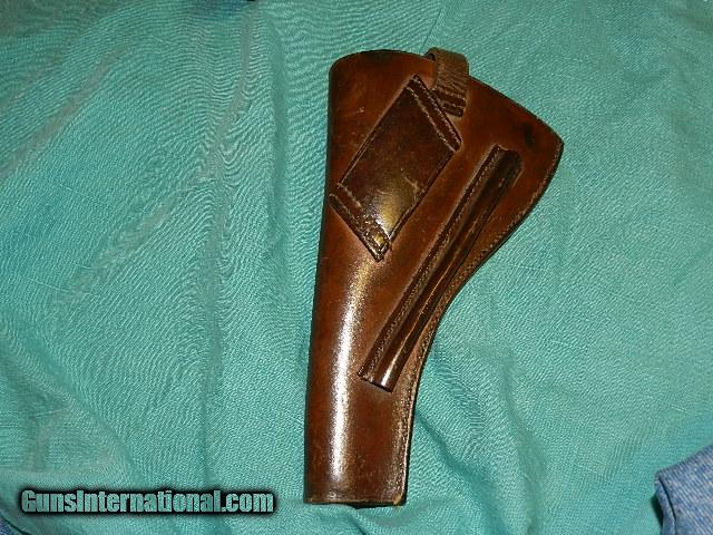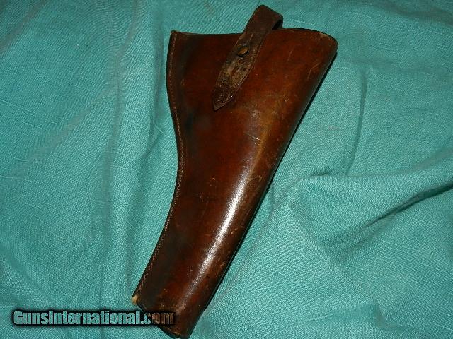 Description: Original issue holster of supple leather in brown color, with markings on the front strap. Some wear around the strap closure.Stitching very tight.The widest selection of older guns at great prices.We don’t have asite .I prefer money orders or a check. Item ships when funds come in. If you can only pay with a card let me know. I’m sorry I don’t list my phone number, did that for 30 days, never again.. I can’t talk on the phone all day…who will ship the guns? I’m just one person, and it’s very bust here! I do a brisk volume! I hope you like my wide selection of unusual guns, knives and gun parts. Shipping price determined by zip code. I try to keep the prices affordable, which means I make less money than most dealers. You won’t get altitude sickness with my prices! I consistently have the best selection of older guns If you BUY IT NOW you must still contact us for details buy it now doesn't end the sale, it just sends an email telling us you want to buy this gun. A phone call won’t secure a sale! Not home many times, the first buyer by email buys the gun !Thissite doesnot close down a sale when you do a BUY IT NOW like Ebay!I can get six buy it nows in an hour, first buyer to email gets the guns, others are in second place! Best to send another email . Sometimes not home to get calls. Some guns are required shipment to a gun dealer near you for a transfer to you when it arrives. With the widest selection of older guns at great prices, We don’t have a store, and sell on the internet only SOLD |