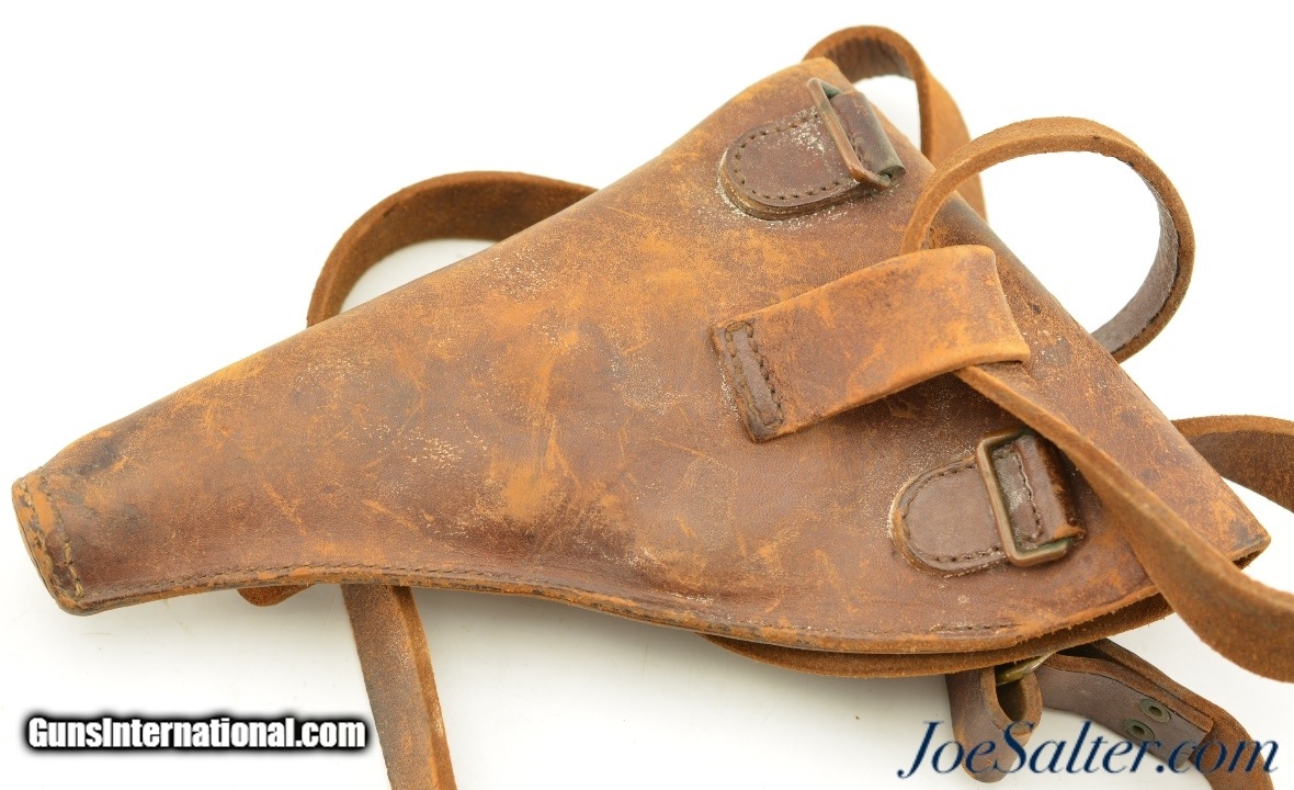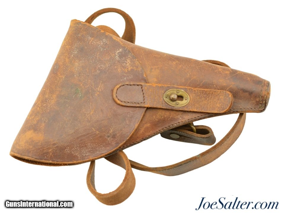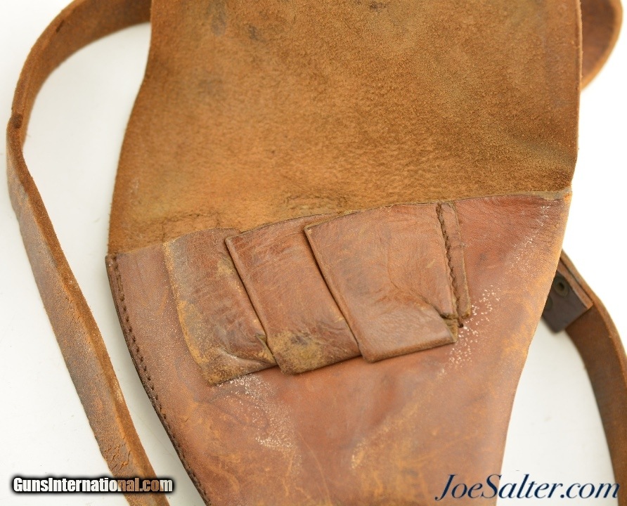 Description: This holster is in very good condition with tight stitching, original strap, nice hardware with a very light makers stamp. This hostler has seen lots of service but the quality leather has aged well.; SOLD |