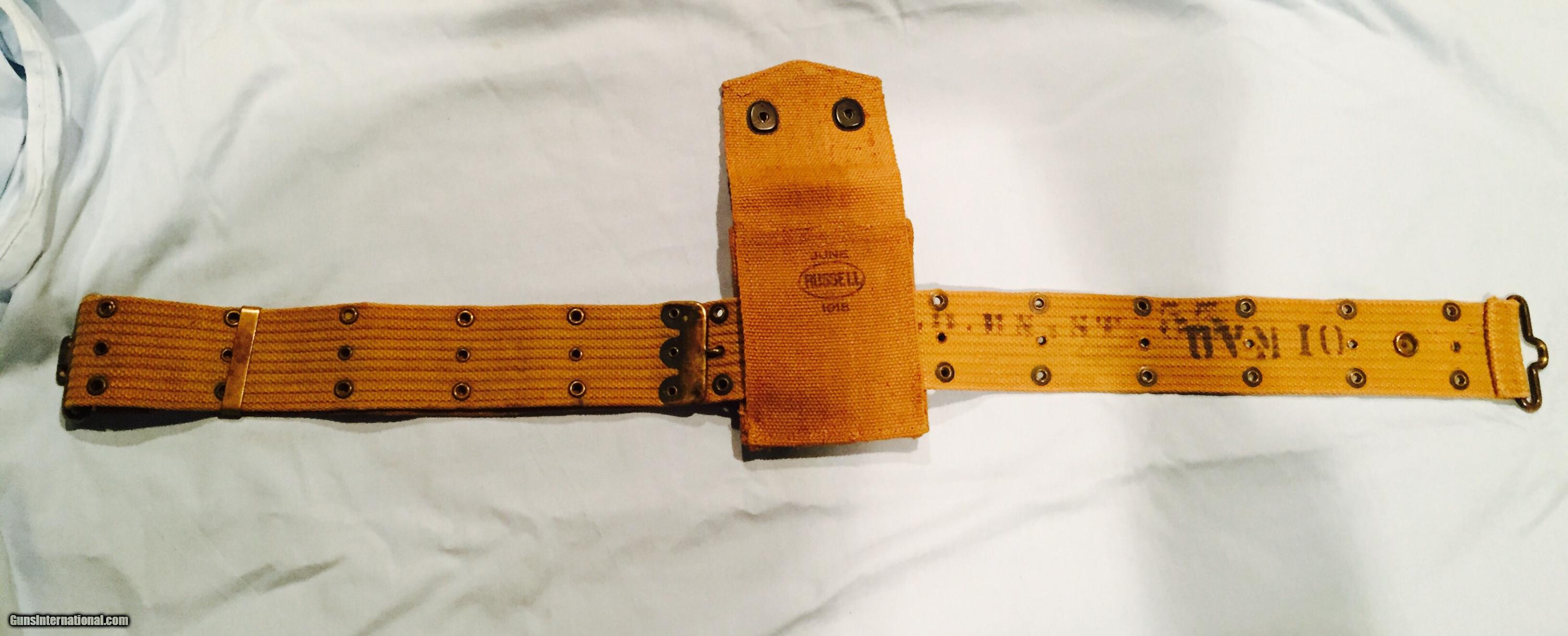 WWI Tan belt and 45 cal magazine pouch date June 1918-excellent