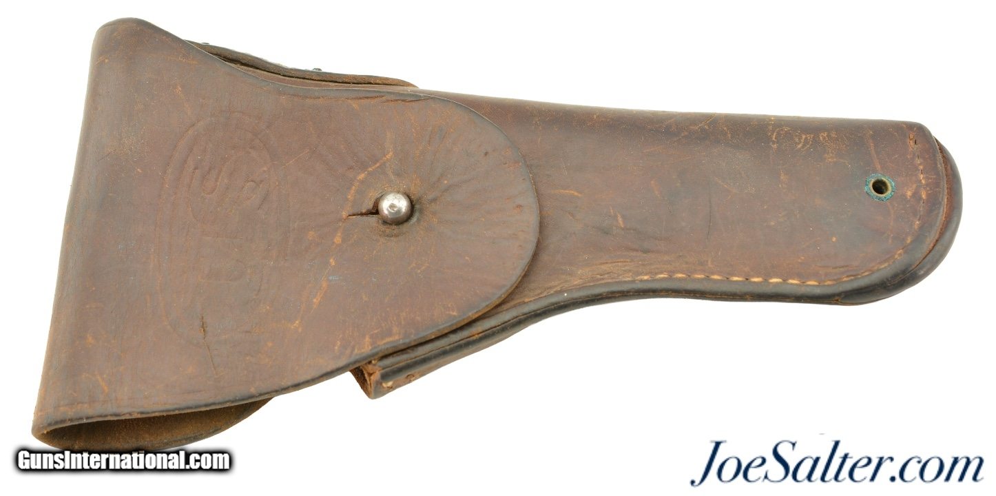 Description: This is a WWII USGI Colt 1911 .45 Holster made by Graton & Knight CO. Worcester Mass. The year is marked 1943 with "U.S. Graton & Knight Co. 1943" on the back. The holster is in good original condition with tight stitching and supple leather. Nice hardware with just a touch of verdigris, no belt hanger and embossed US on the front.; Price: $99.00 Contact Seller |