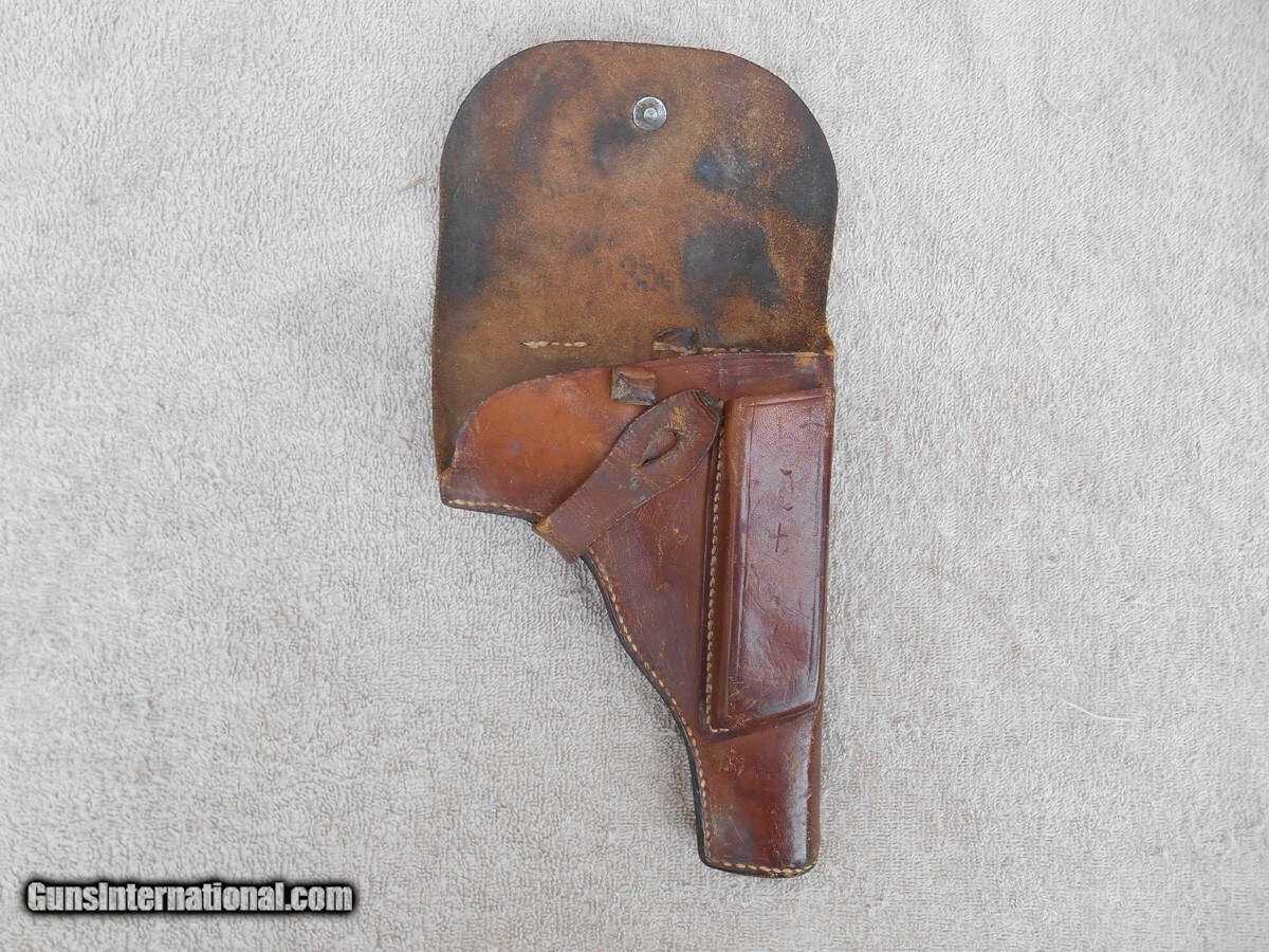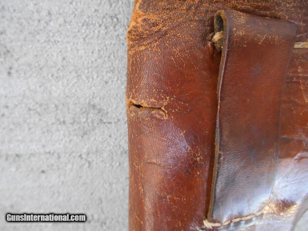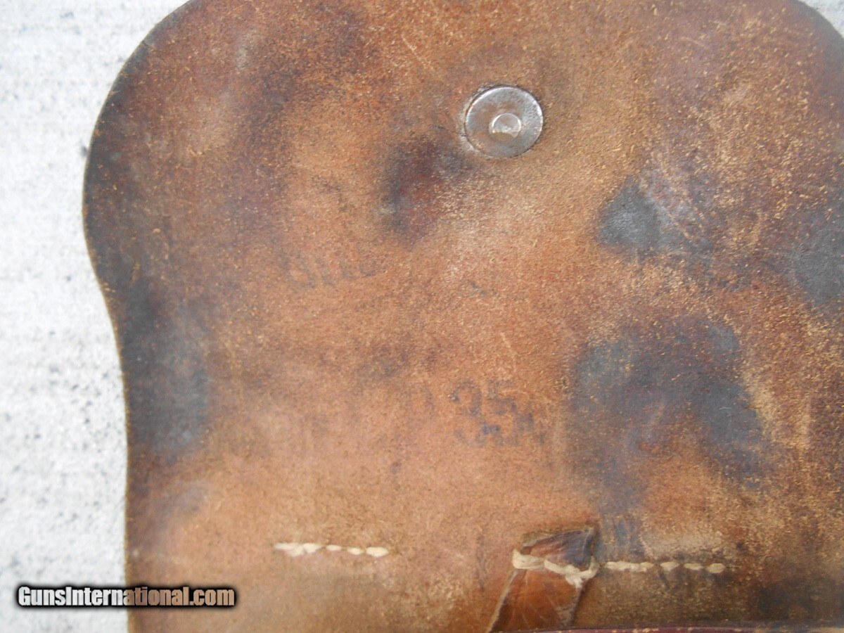 Description: The holster is in good but used condition, with only a 3/8 inch long split on the top of the spine to call damage. Only about 1,000 Radom pistols were made in Steyr, Austria, so this holster possibly carried one of those rare handguns. The stitching on the holster is still intact and tight, otherwise the wear is expected, including the markings on the inside of the flap that are barely visible, but enough to see the German model number of the pistol, P. 35(p), and the manufacturing plant code BNZ. Please view the photos, as they are an integral part of the description. Handgun Caliber: 9x19mm Parabellum (9mm Luger, 9x19mm NATO) Price: $295.00 Contact Seller |
