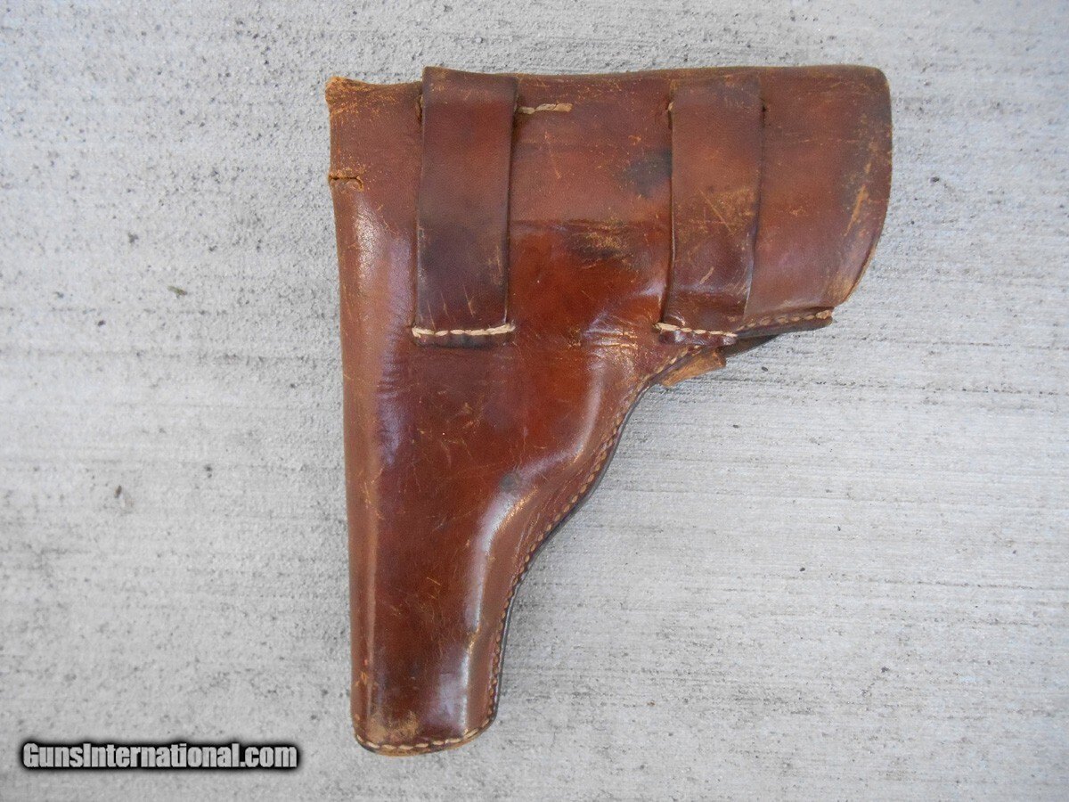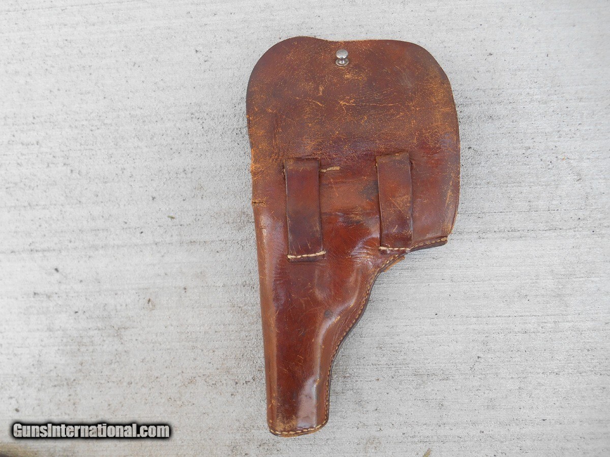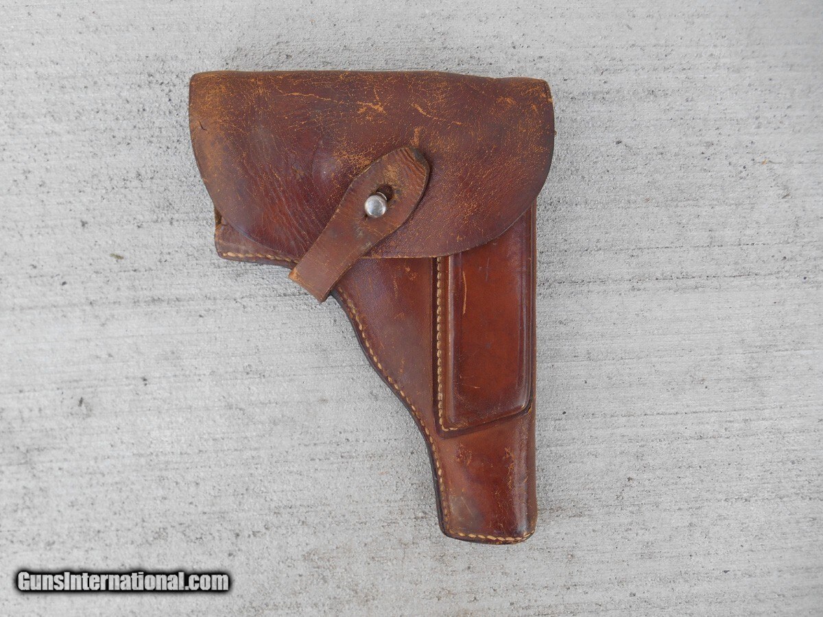 Description: The holster is in good but used condition, with only a 3/8 inch long split on the top of the spine to call damage. Only about 1,000 Radom pistols were made in Steyr, Austria, so this holster possibly carried one of those rare handguns. The stitching on the holster is still intact and tight, otherwise the wear is expected, including the markings on the inside of the flap that are barely visible, but enough to see the German model number of the pistol, P. 35(p), and the manufacturing plant code BNZ. Please view the photos, as they are an integral part of the description. Handgun Caliber: 9x19mm Parabellum (9mm Luger, 9x19mm NATO) Price: $295.00 Contact Seller |