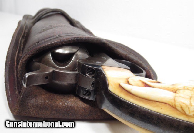 Description: Really Fine J.P. Lower, Denver Marked Double Loop Holster; Note: Mark Chatters or Double Stamped; Excellent Condition with No Repairs; (Revolver Not Included); antique, no FFL/C&R required for shipping; from my own personal collection; Long guns shipped by FedEx in a hard case $65; all other items shipped fully insured Priority Mail; - -Hand guns $30 -- Spurs $30-- Knives, Swords & Sabers $30—Grips $20 – Scopes $10; return policy: three days inspection from the date the item is received; full refund of shipping both ways ONLY IF THE ITEM IS MISREPRESENTED. SOLD |