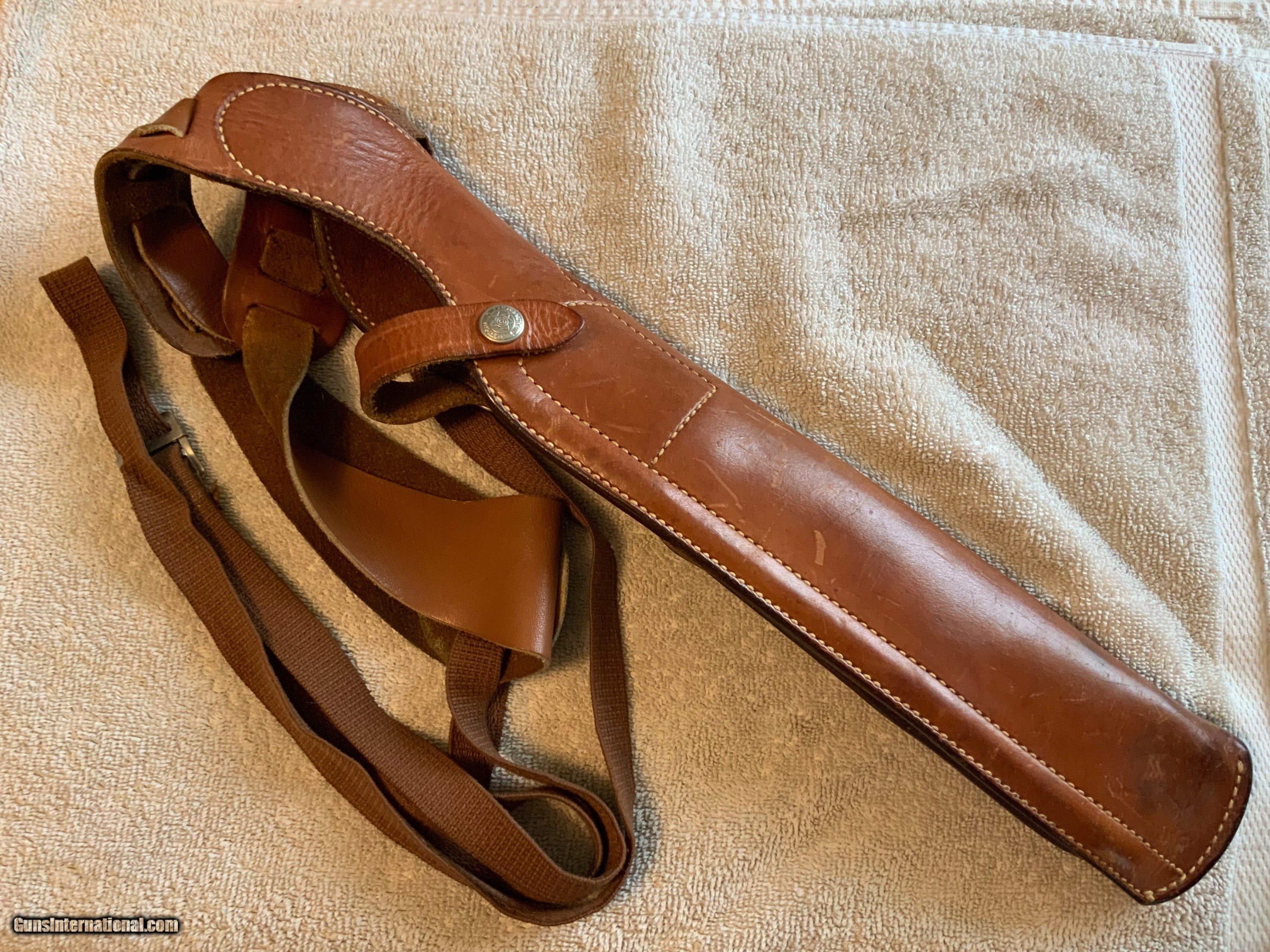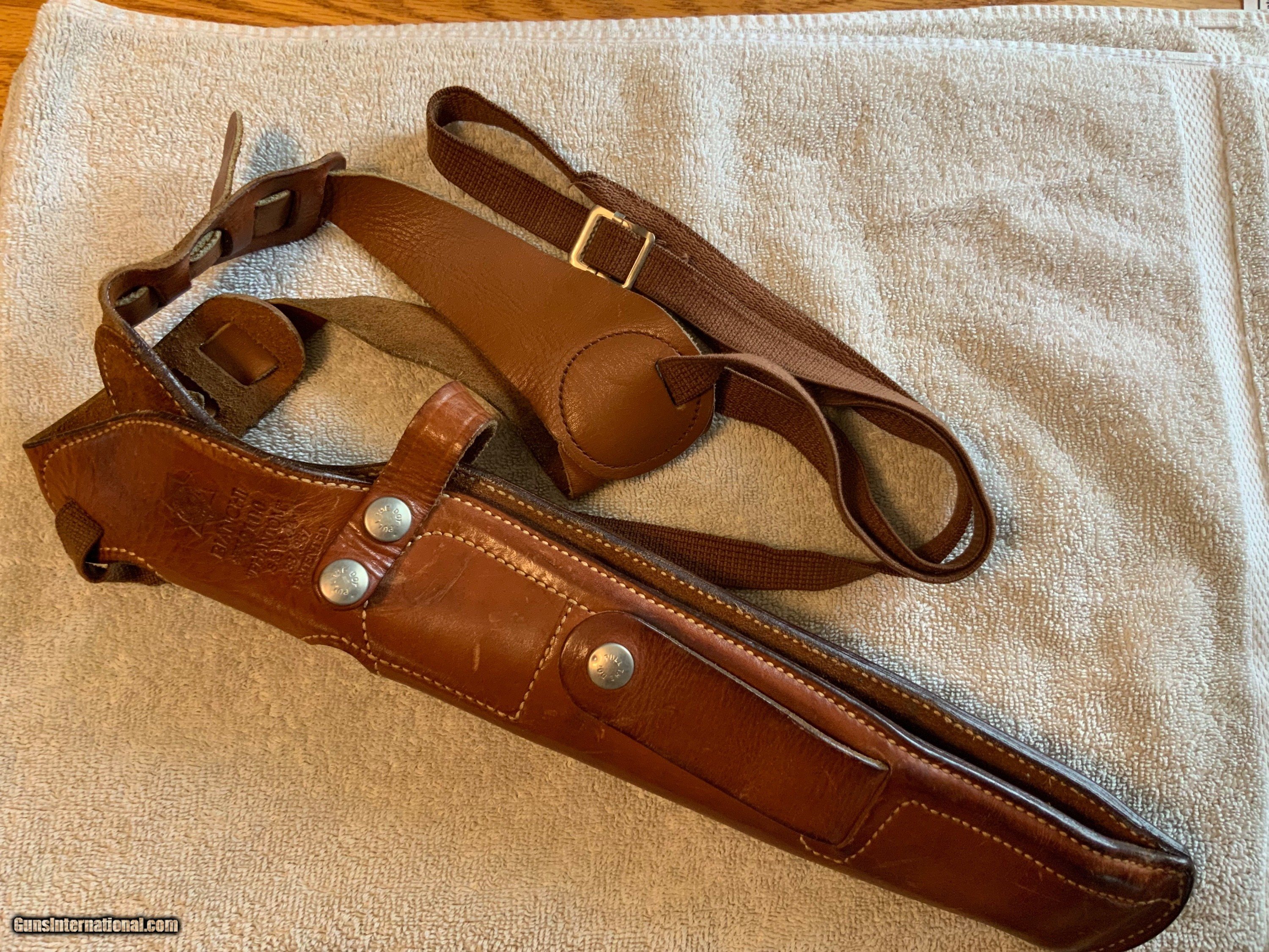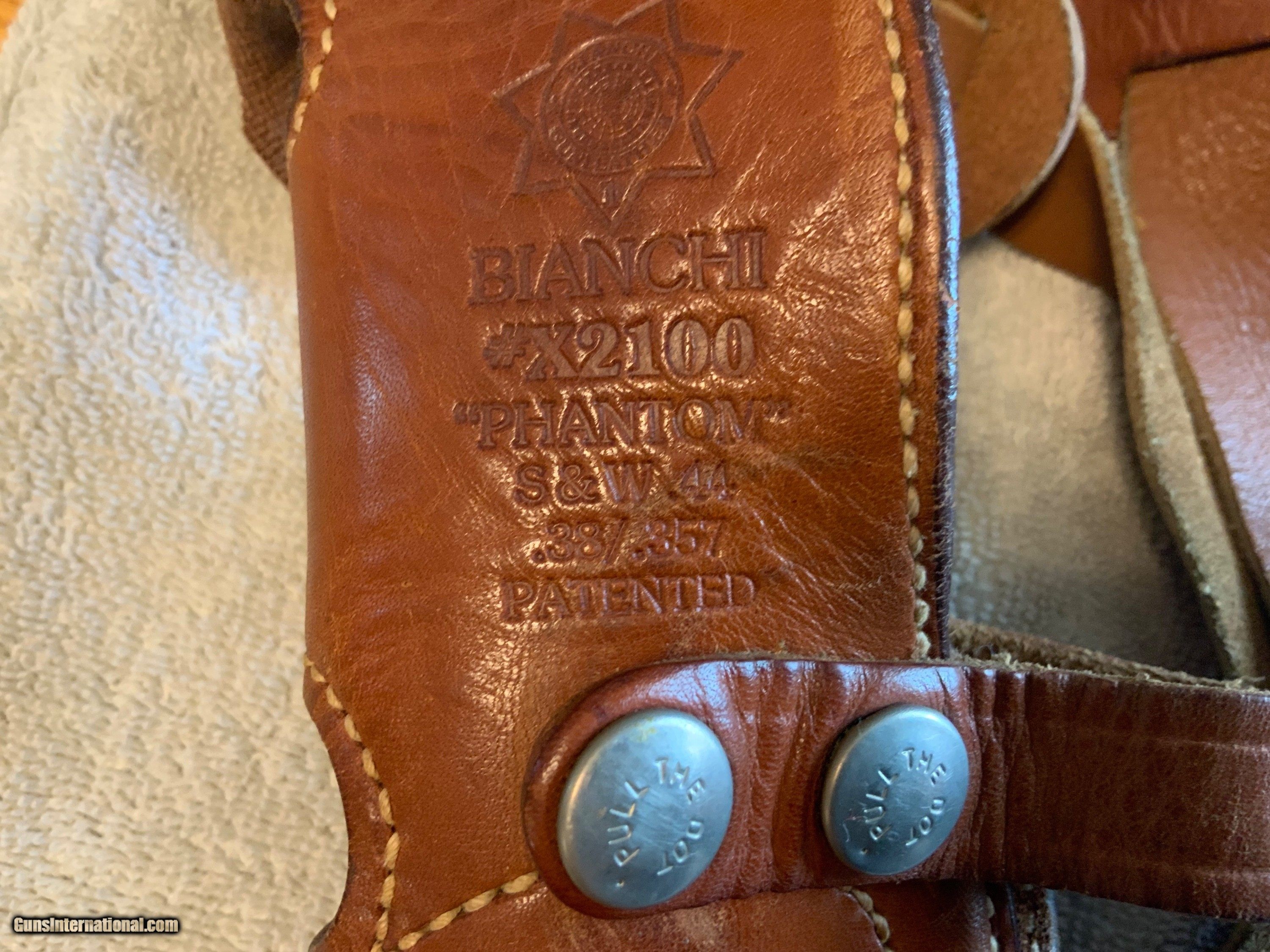 Description: BIANCHI-X2100 ''PHANTOM'' SHOULDER HOLSTER- FITS S&W 44,38/357-6-6 1/2'' -RIGHT HAND- SUEDE LINED TO PROTECT FINISH ON REVOLVER- ALL LEATHER-MINOR SCUFF MARKS- CLASSIC STYLE WITH WIDE SHOULDER SUPPORT- ALSO STRAP TO ATTACH TO BELT- $100 includes shipping Price: $100.00 Contact Seller |