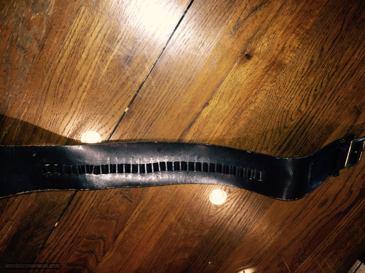 Description: Cowboy black leather belt and holster 46" 25 loop for large caliber cartiridges custom made SOLD |